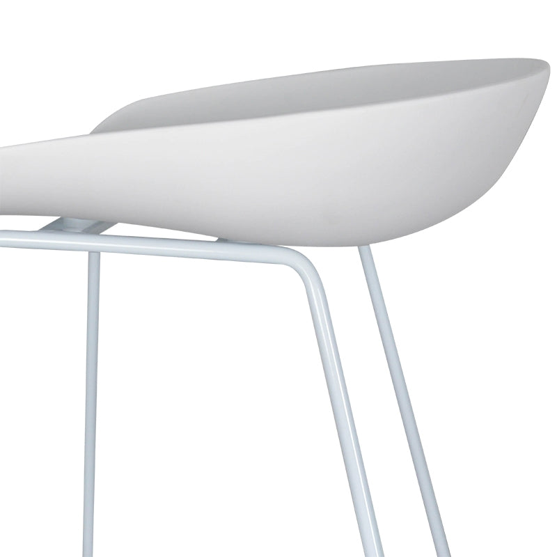Sit at your kitchen counter in comfort with the chic Bar Stool - White - White Metal Legs. It’s simple modern design will complement an array of contemporary interior styles with no clashing thanks to its monochromatic palette.Moulded seat in durable polypropylene constructionWhite galvanized steel frame and legs for lasting strength good-looksContoured seat with a slightly raised back for a comfortable seating experienceAdditional footrest to provide support from all anglesAll white colour scheme to match any interior style with easePlastic floor protectors to prevent scuffing and product damage43cm (W) x 35.5cm (D) x 74cm (H) Seat height : 65cm Base Width: 47cm Weight limit: 90kgsBox 1/1: 74cmx50cmx43cm, 9kg, 0.1591cbm