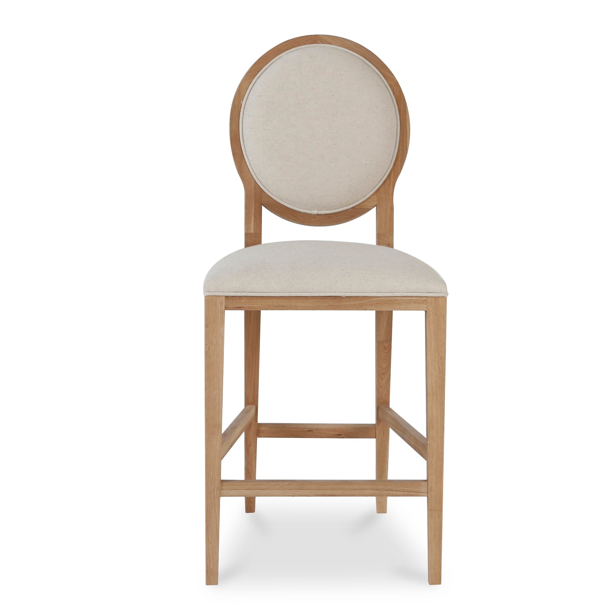 Classic is what 65cm Bar Stool - Light Beige is that transcends the space-time continuum and makes your home look elegant in every dimension.60% Linen and 40% Cotton blend Frame and legs made of timber oak Padded round back Square flared tapered legs Upholstered with Light Beige 100% Foam filling Soft medium seat firmness Weight capacity of 150kg Suitable for commercial use Product comes fully assembled49cm (W) x 58cm (D) x 113cm (H) Seat: 49cm (W) x 47cm (D) x 66cm (H) Leg Height: 57cmBox 1/1: 134cmx76cmx50cm, 19.9kg, 0.5092cbm