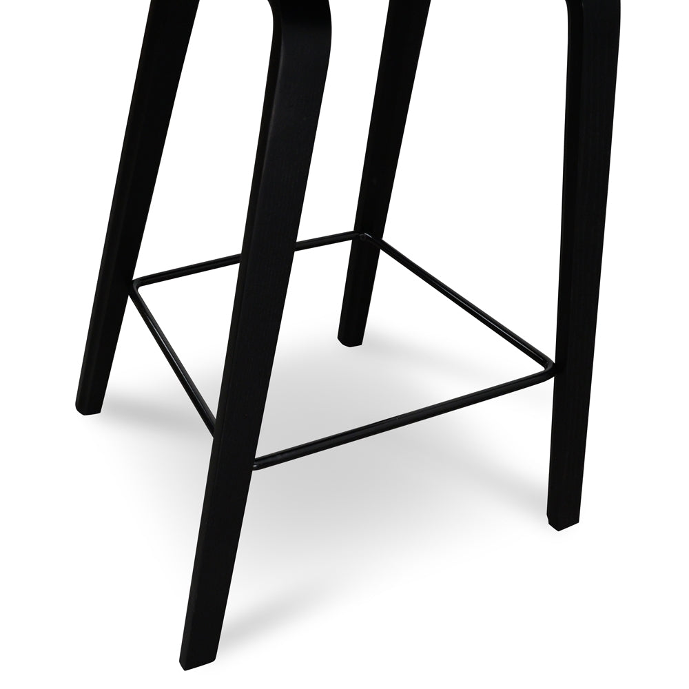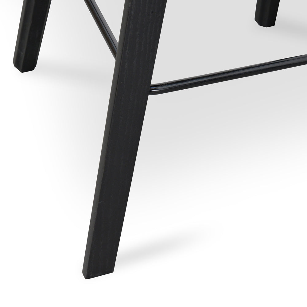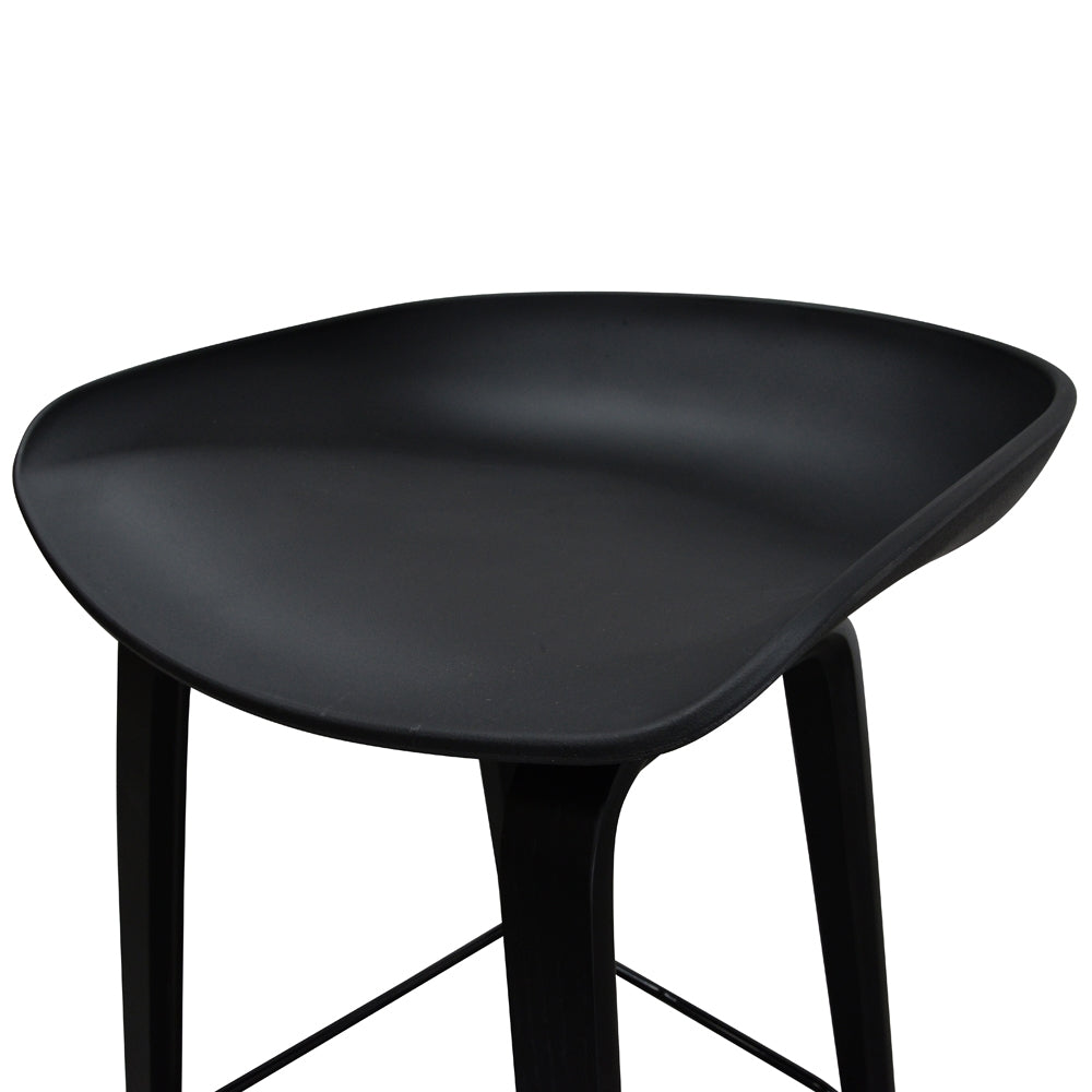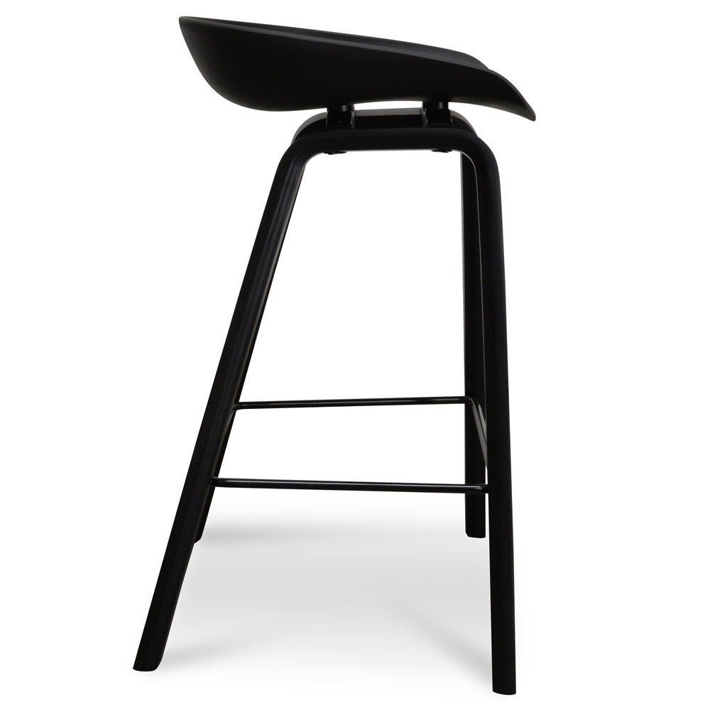65cm Bar Stool – Black Seat – Black Frame ticks all of the boxes for a stylish, versatile, and comfortable bar stool to complete the look of your contemporary dining counter.Solid wood base and legs in a black finish for lasting resilience and stabilityBlack contoured polypropylene seat with subtly raised back for comfortFour-sided metal footrest in a black powder coat finish for additional support from any angleSlightly angled profile to enhance a modern aestheticAll-black colour scheme to complement any interior Minor Assembly required to attach base. Add a touch of sophistication to your kitchen with our kitchen stools. Their practicality and modern aesthetics make them a functional and stylish addition.43cm (W) x 36m (D) x 73cm (H) Seat height: 65cmBox 1/1: 57cmx64cmx57cm, 9.6kg, 0.2079cbm
