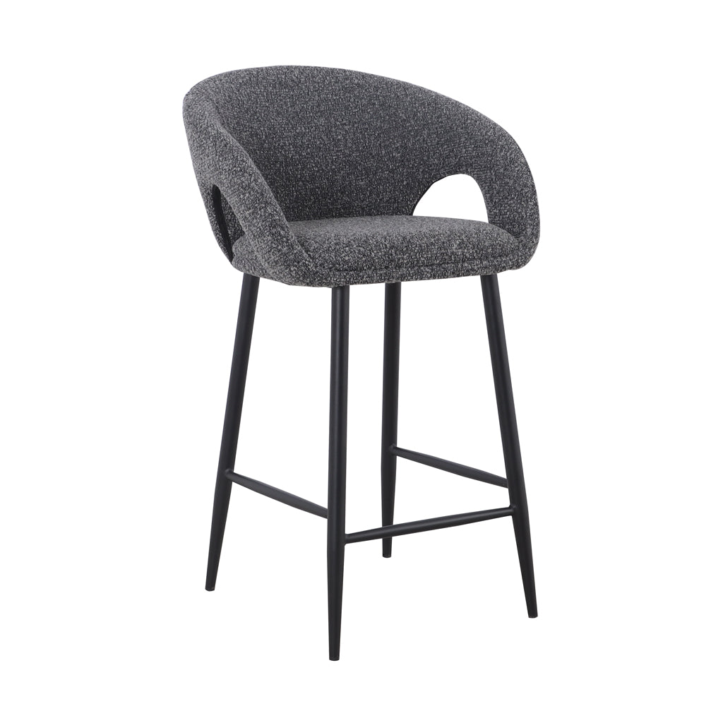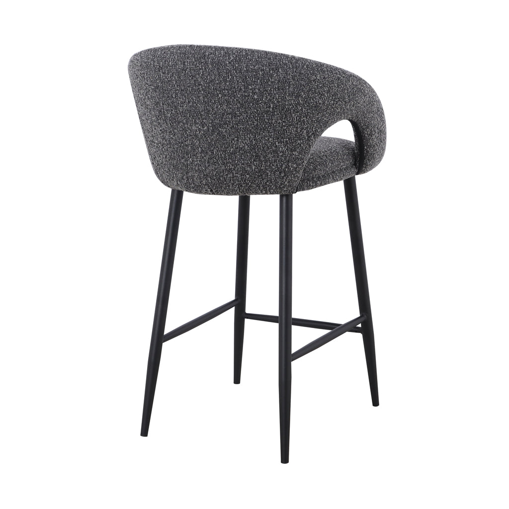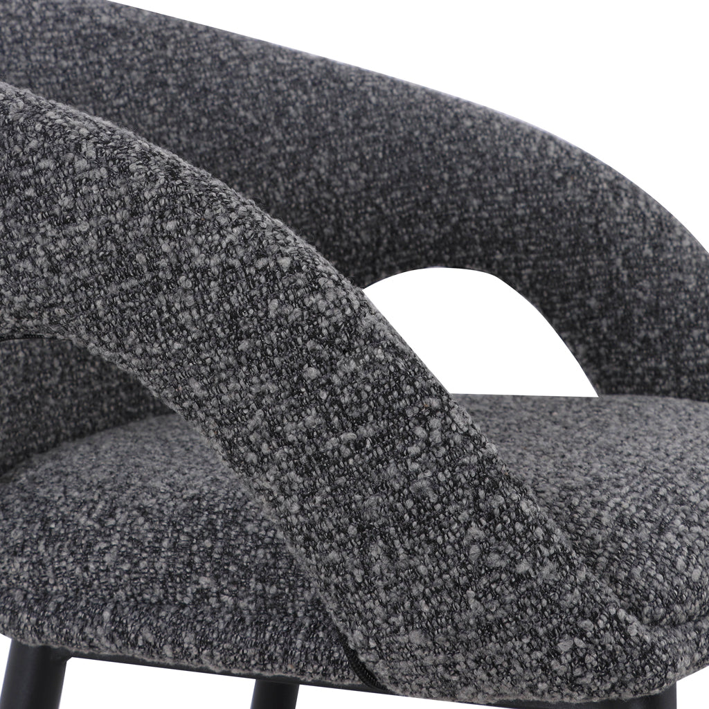 The 65cm Bar Stool in Anthracite Grey Boucle embodies refined elegance, showcasing a sleek design and luxurious upholstery.Anthracite Grey Boucle Polyester Upholstery Matte black metal frame and legs Foam-filled cushion Web suspension Curved backrest with breathable gaps Suitable for commercial use Weight Capacity: 150 kg Minor assembly required50cm (W) x 53cm (D) x 90cm (H) Seat: 40cm (W) x 41cm (D) x 65cm (H)