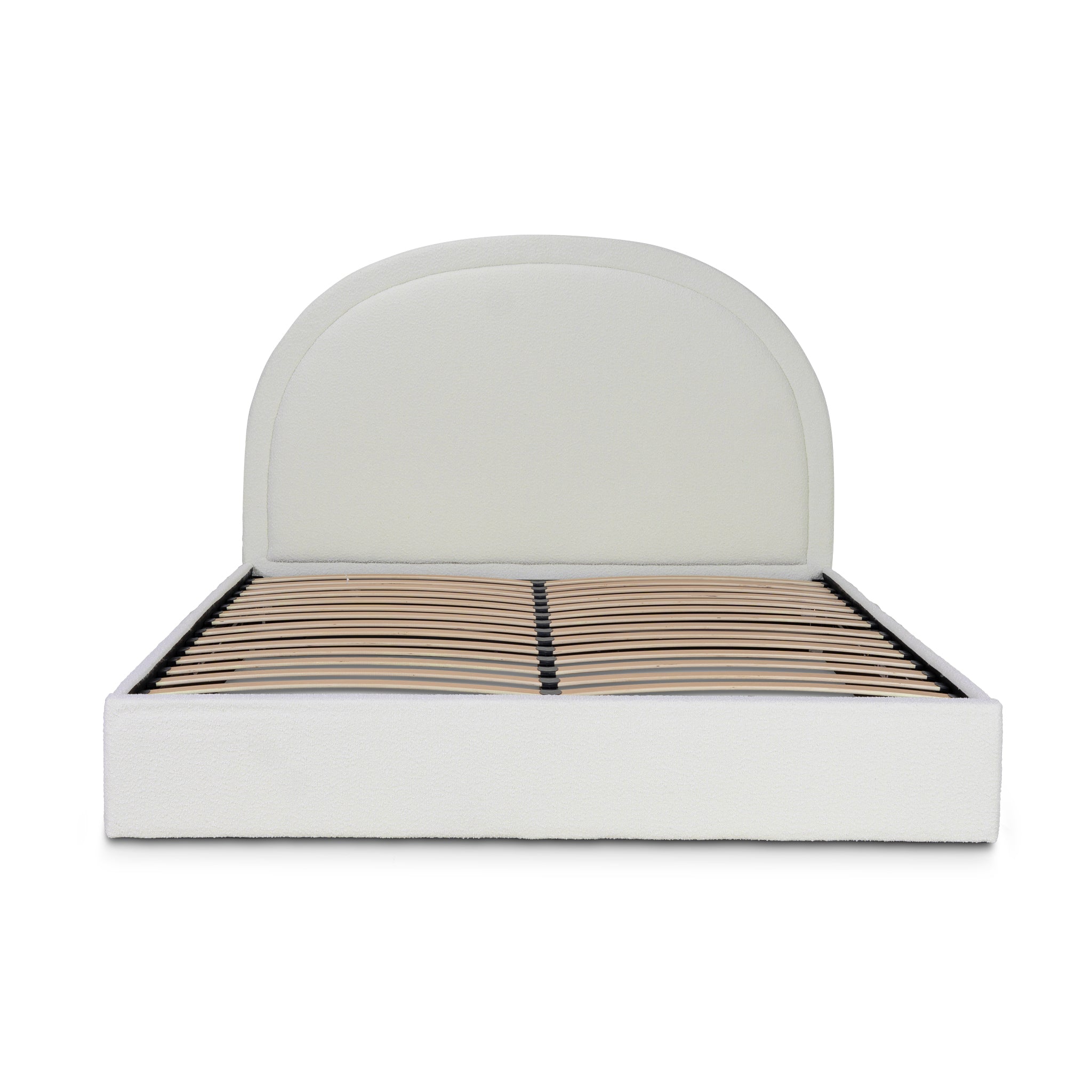 Immerse yourself in luxury with the Queen Bed Frame - Antique White Boucle with Storage.Antique White boucle polyester/acrylic upholsteryMDF constructionFoam filledBlack metal frame with timber slatsGas lift mechanism supports up to 50kgsAccommodates a Queen mattressWeight capacity: 350kgProduct comes flat packed and requires two-person assembly and a screwdriver Note: Please ensure your mattress is compatible with the provided slat construction of this bed frame.164cm (W) x 216cm (D) x 125cm (H) Bedhead: 164cm (W) x 10cm (D) x 134cm (H) Sideboard: 205cm (W) x 3cm (D) x 30cm (H)Box 1/2: 166cmx7cmx140cm, 27kg, 0.1627cbm Box 2/2: 210cmx18cmx32cm, 41kg, 0.1210cbm