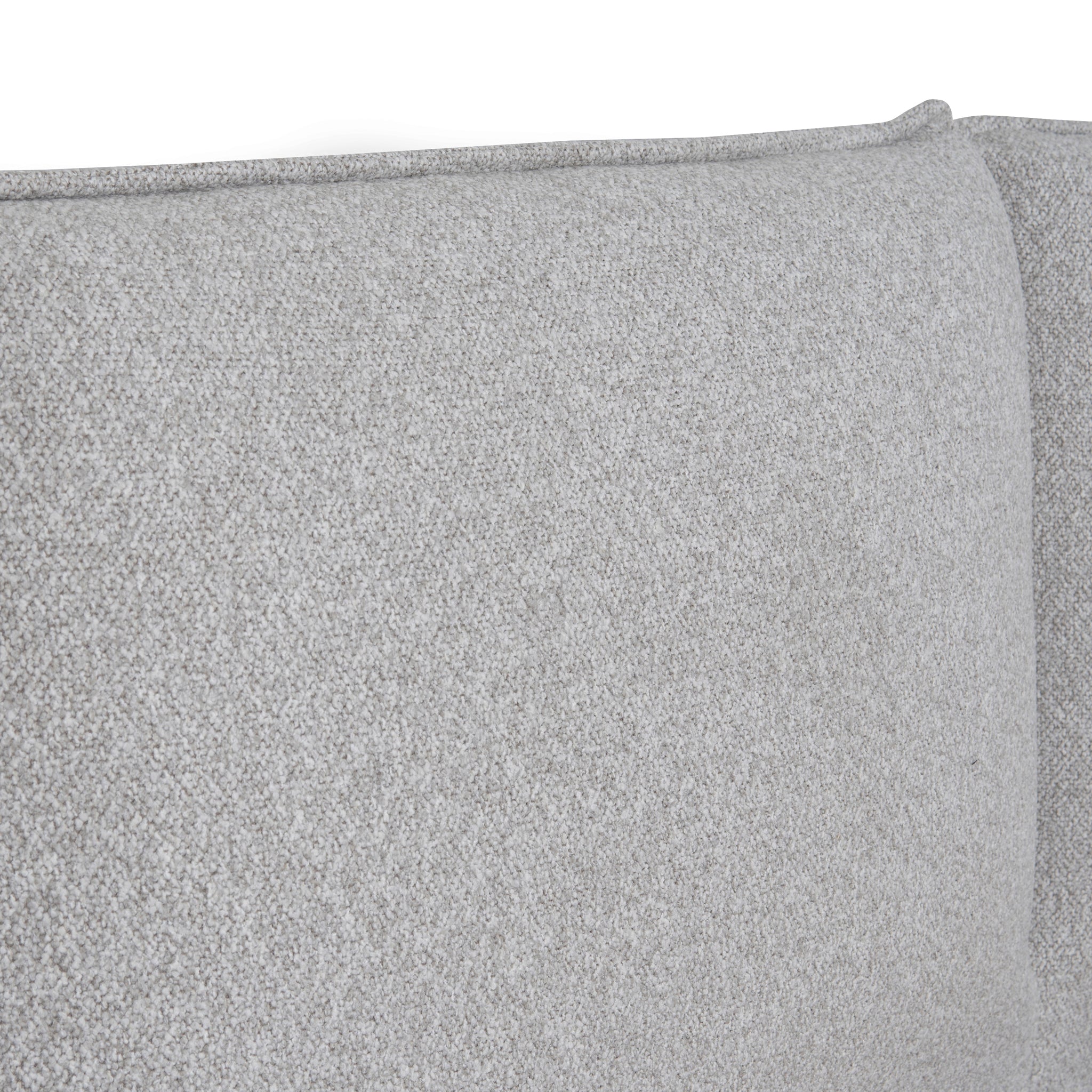 Introducing the Fabric King Bed Frame in Clay Grey a luxurious centerpiece for your bedroom.Clay Grey polyester upholsteryMDF constructionFoam filled headboardMetal frame with timber slatsBlack metal legsAccommodates a King mattressWeight capacity: 400kgProduct comes flat packed and requires two-person assembly and a screwdriver Note: Please ensure your mattress is compatible with the provided slat construction of this bed frame.208cm (W) x 232cm (D) x 97cm (H) Bedhead: 208cm (W) x 20cm (D) x 84cm (H) Sideboard: 205cm (W) x 6.5cm (D) x 16cm (H) Footboard: 208cm (W)x 6.5cm (D) x 16cm (H)Box 1/2: 211cmx20cmx96cm, 33kg, 0.405cbm Box 2/2: 235cmx24cmx25cm, 37kg, 0.141cbm