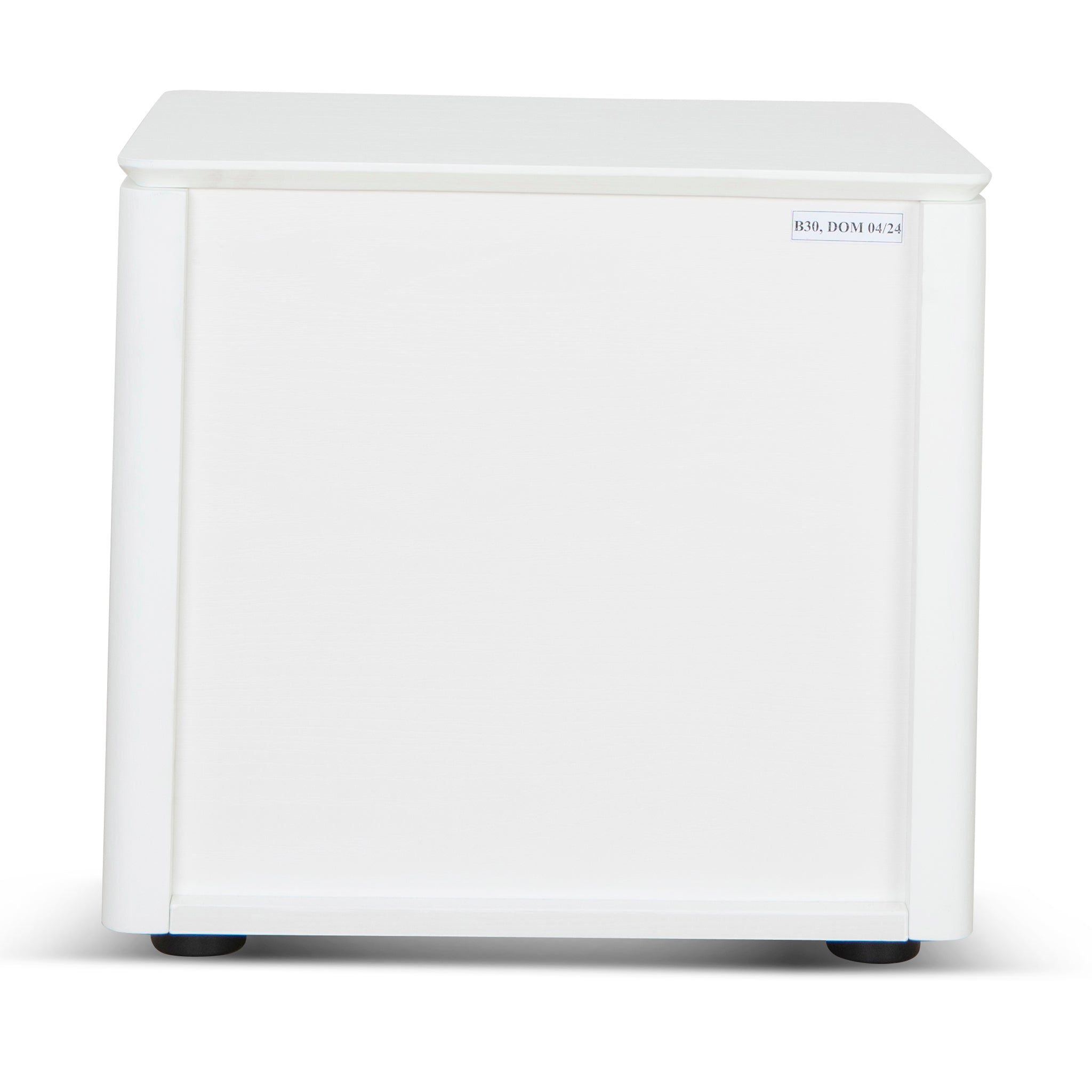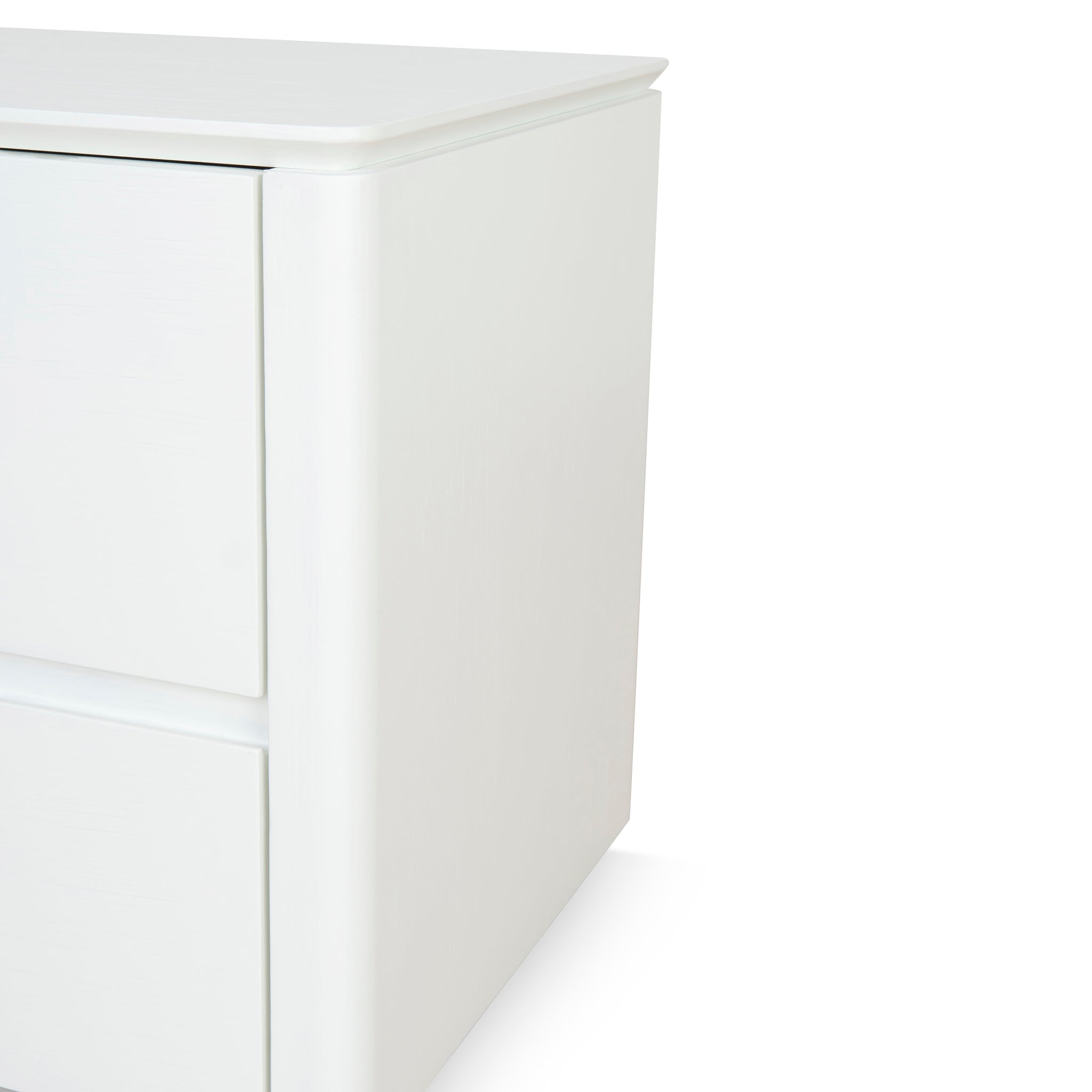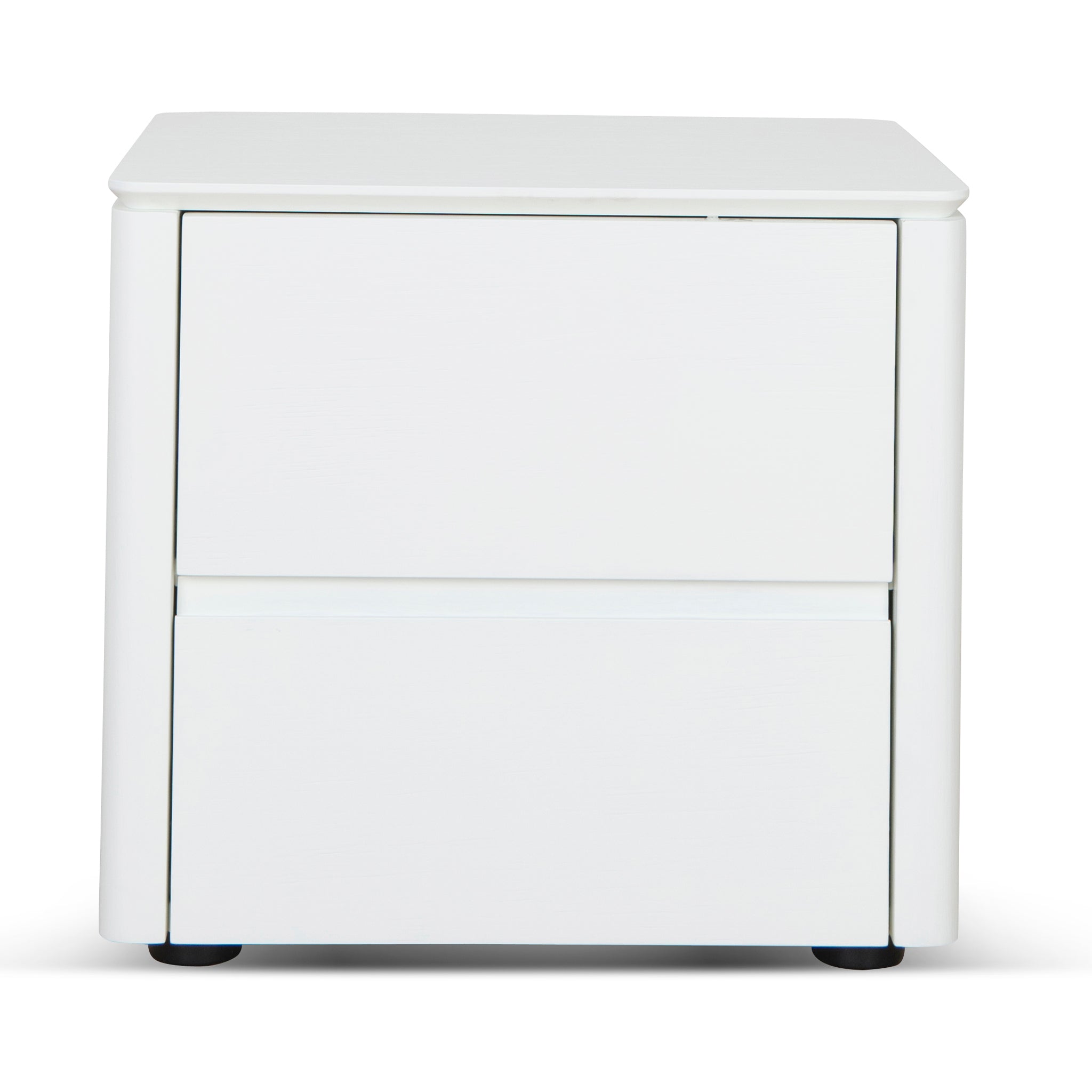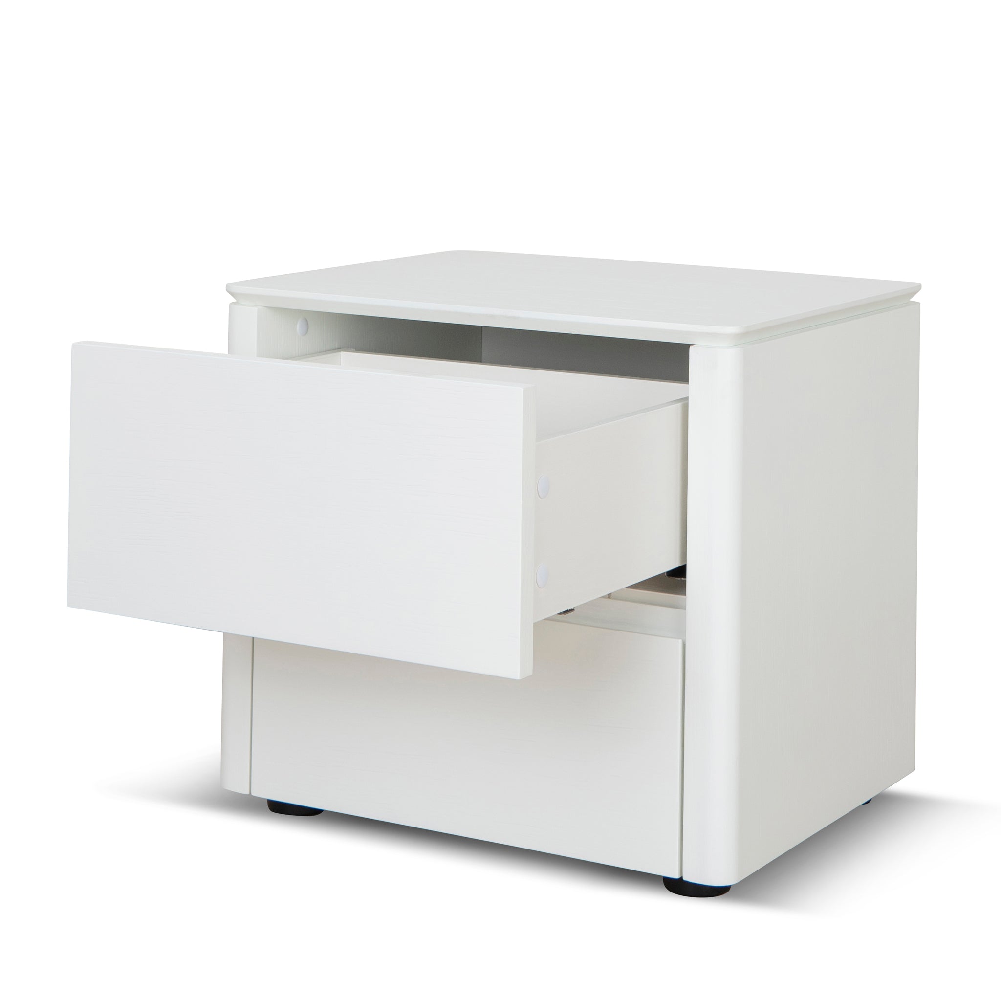 Experience the charm of the Bedside Table, designed to blend effortlessly with your sophisticated décor.Engineered wood with veneer White oak veneer finish Pull-to-open drawers Minimalistic design Enhances bedroom aesthetics Rounded corners Weight Capacity: 40 kg Minor assembly required50cm (W) x 39.5cm (D) x 46cm (H) Drawers: 37.6cm (W) x 32.8cm (D) x 8cm (H)Box 1/1: 56cmx46cmx51cm, 23kg, 0.1314cbm