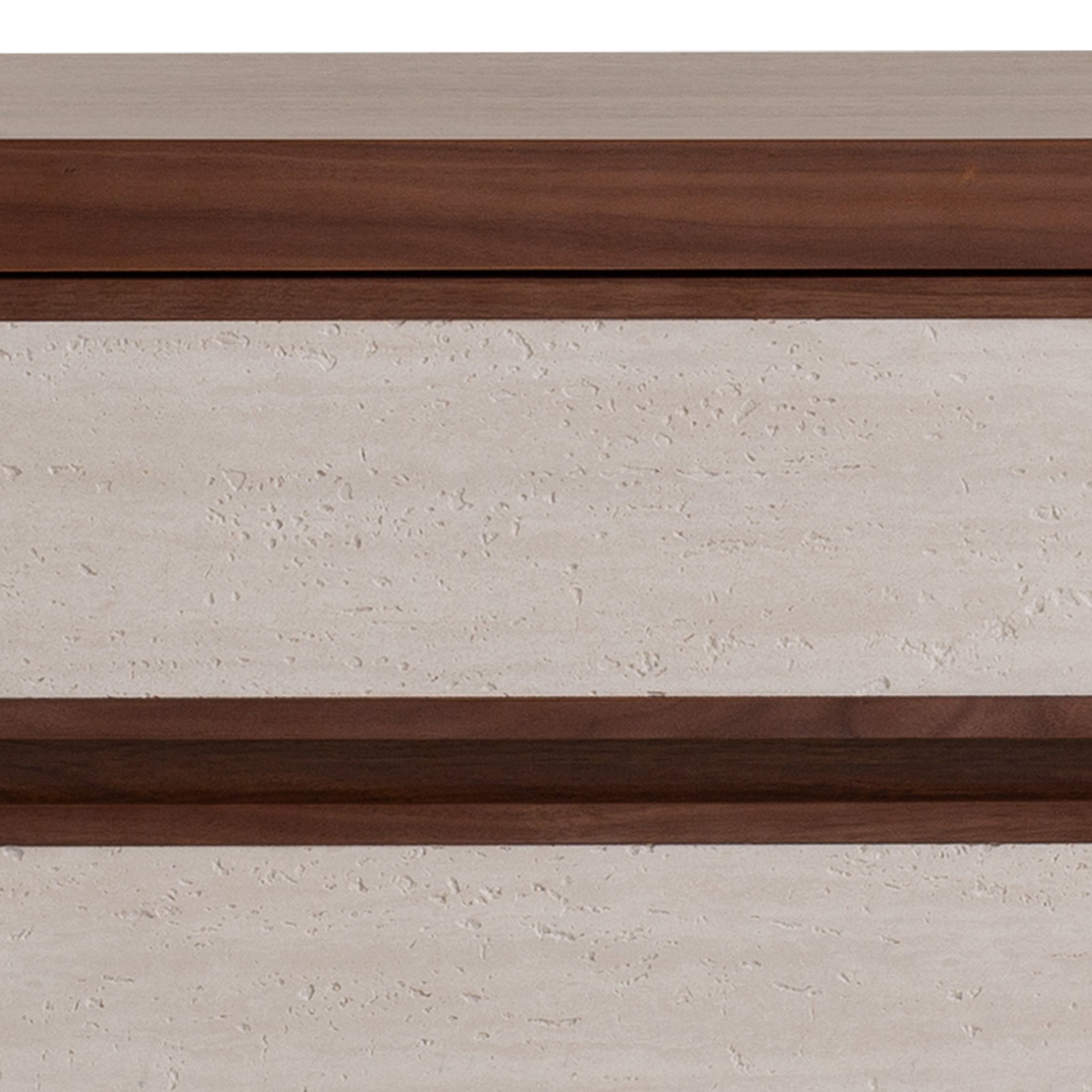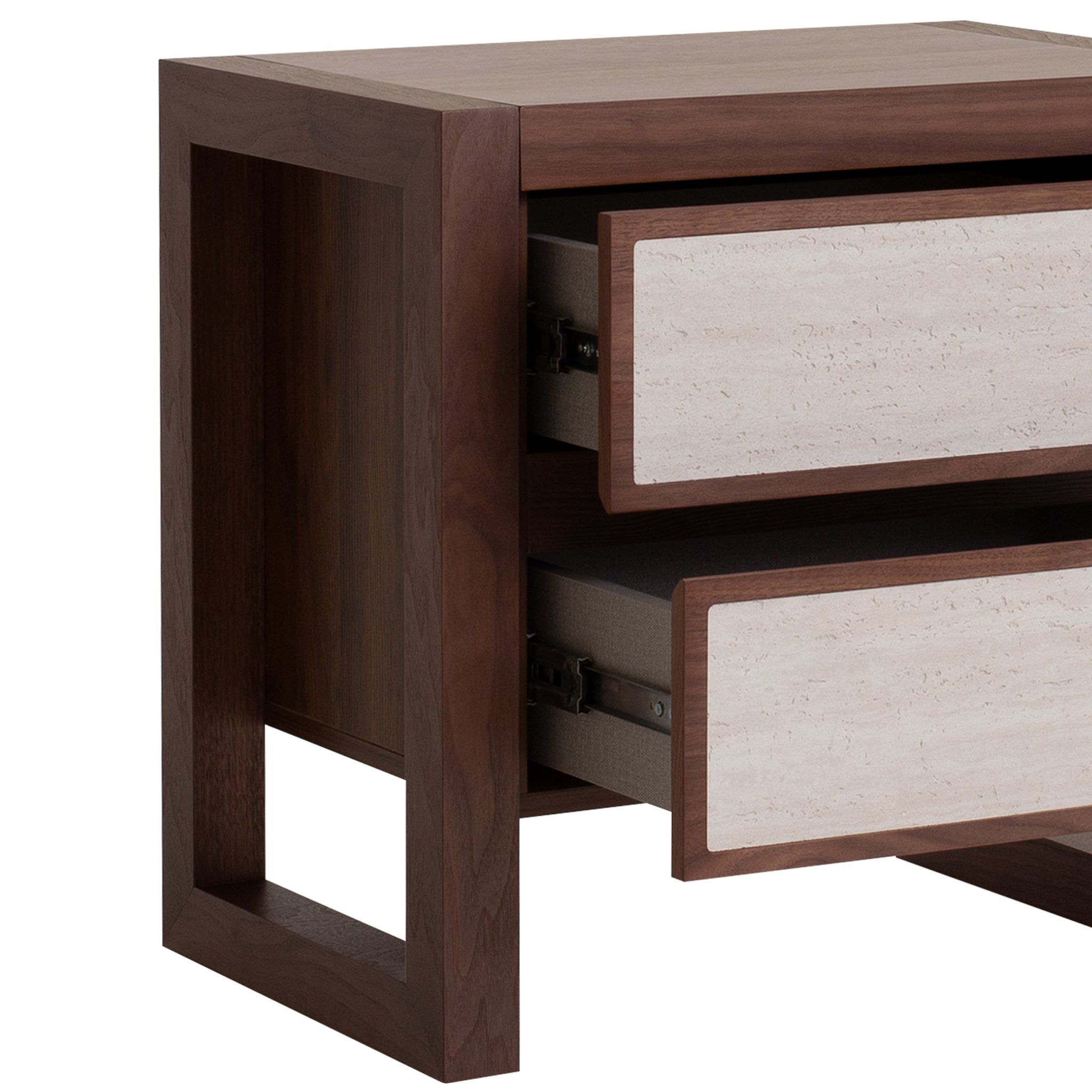 The Bedside Table's sophisticated design and high-quality materials make it an excellent addition to contemporary interiors.Engineered wood with flexible stone veneer tabletop Melamine-coated particleboard side and back panels Engineered wood legs with oak veneer finish Pull opening and push soft-close mechanism Contemporary design Striking contrast with flexible stone panels on drawer fronts Two drawers Weight Capacity: 50 kg Minor assembly required60cm (W) x 40cm (D) x 58.5cm (H) Cabinet: 60cm (W) x 40cm (D) x 43cm (H) Leg Height: 15.5cm Distance between legs: 50cm Drawer: 41cm (W) x 30.5cm (D) x 13cm (H)Box 1/1: 68cmx48cmx67cm, 27.4kg, 0.2187cbm