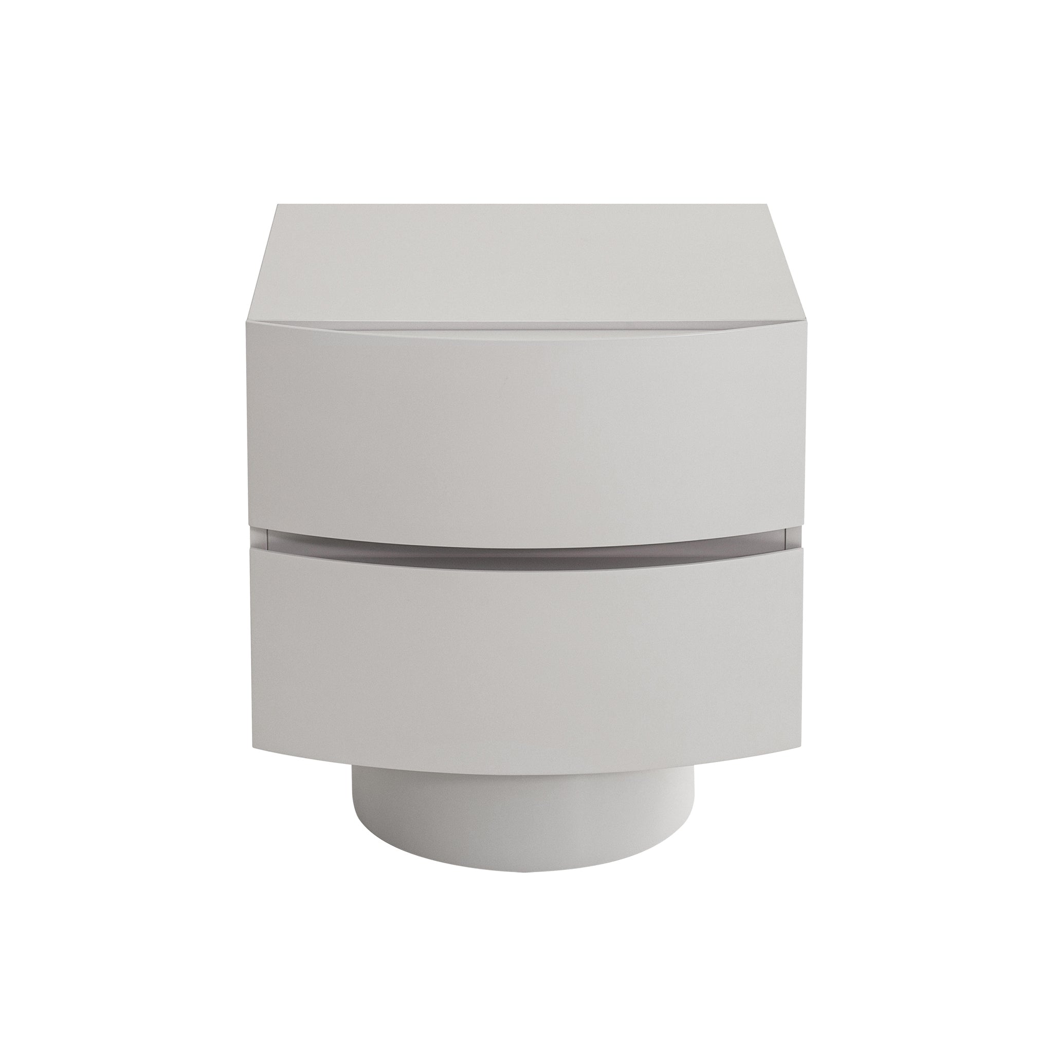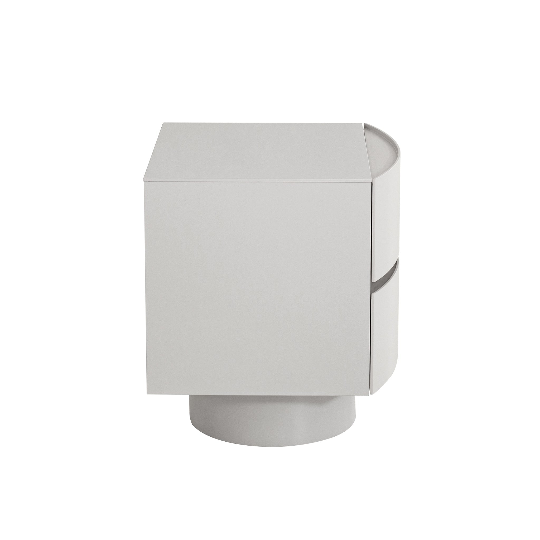 A bedside companion that’s as functional as it is sculptural, Bedside Table - Warm Grey is where utility meets modern art.Engineered wood with a durable melamine finish body Engineered wood with natural veneer legs and drawers Warm grey tone with PU coating Sculptural silhouette with curved drawer fronts Handle-free design Bold cylindrical pedestal-style base Seamless drawer grooves Two spacious drawers Weight Capacity: 30 kg Minor assembly required48cm (W) x 46.1cm (D) x 53.5cm (H) Internal Drawer: 42.1cm (W) x 33.5cm (D) x 11.8cm (H) Base: 32cm (W) x 13.2cm (H)Box 1/1: 55cmx52cmx60cm, 31.6kg, 0.1716cbm