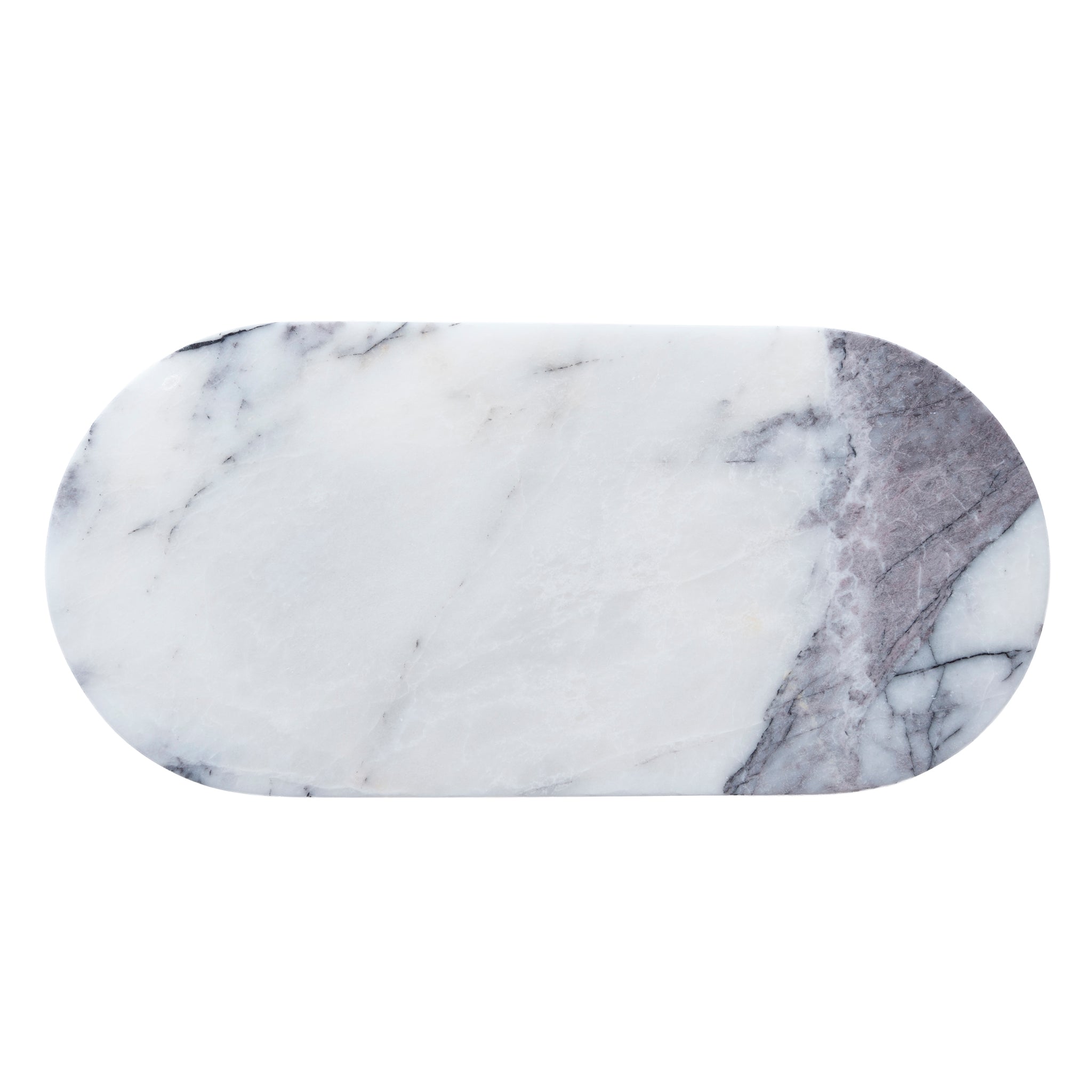 Whether placed on a dining table, coffee table, or console, the Natural Marble Tray - White brings a quiet luxury to any setting.Fragrant Plum Marble with subtle grey veining Smooth, low-texture surface Rounded oval shape Cylindrical marble legs Weighty and durable construction Ideal as a display tray for candles, vases, or sculptures Product comes fully assembled Note: Our marble and travertine decor pieces are natural stone that each has its own unique imperfections and characteristics. Any variations in colour, texture, polish, and pattern are not a fault and should be appreciated. Please note that polished marble and travertine are porous, so contact with liquids or hot beverages may cause the marble to mark. Make sure to wipe away any contact with food or drink immediately using water or a mild cleaner.Overall: 42cm (W) x 20cm (D) x 8cm (H)Box 1/1: 49cmx27cmx15.5cm, 7kg, 0.0205cbm