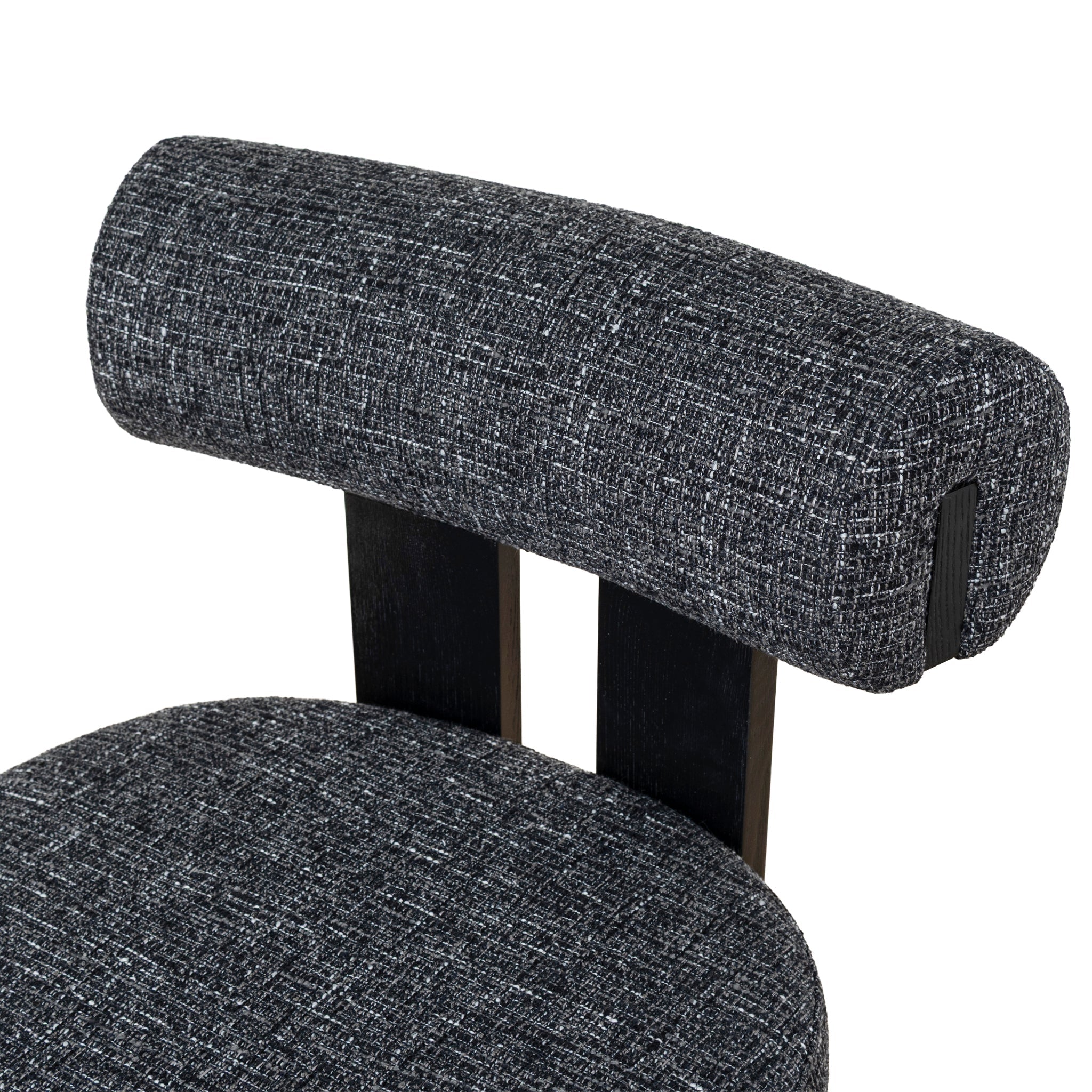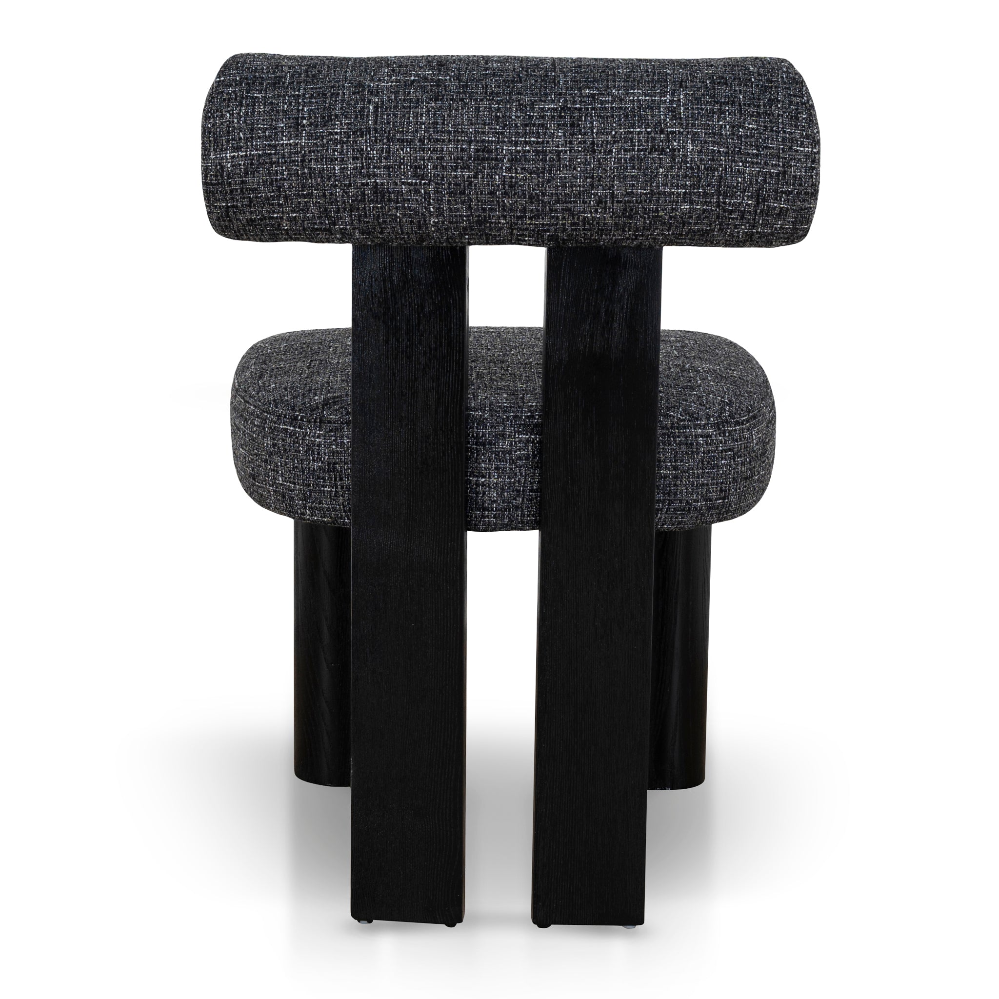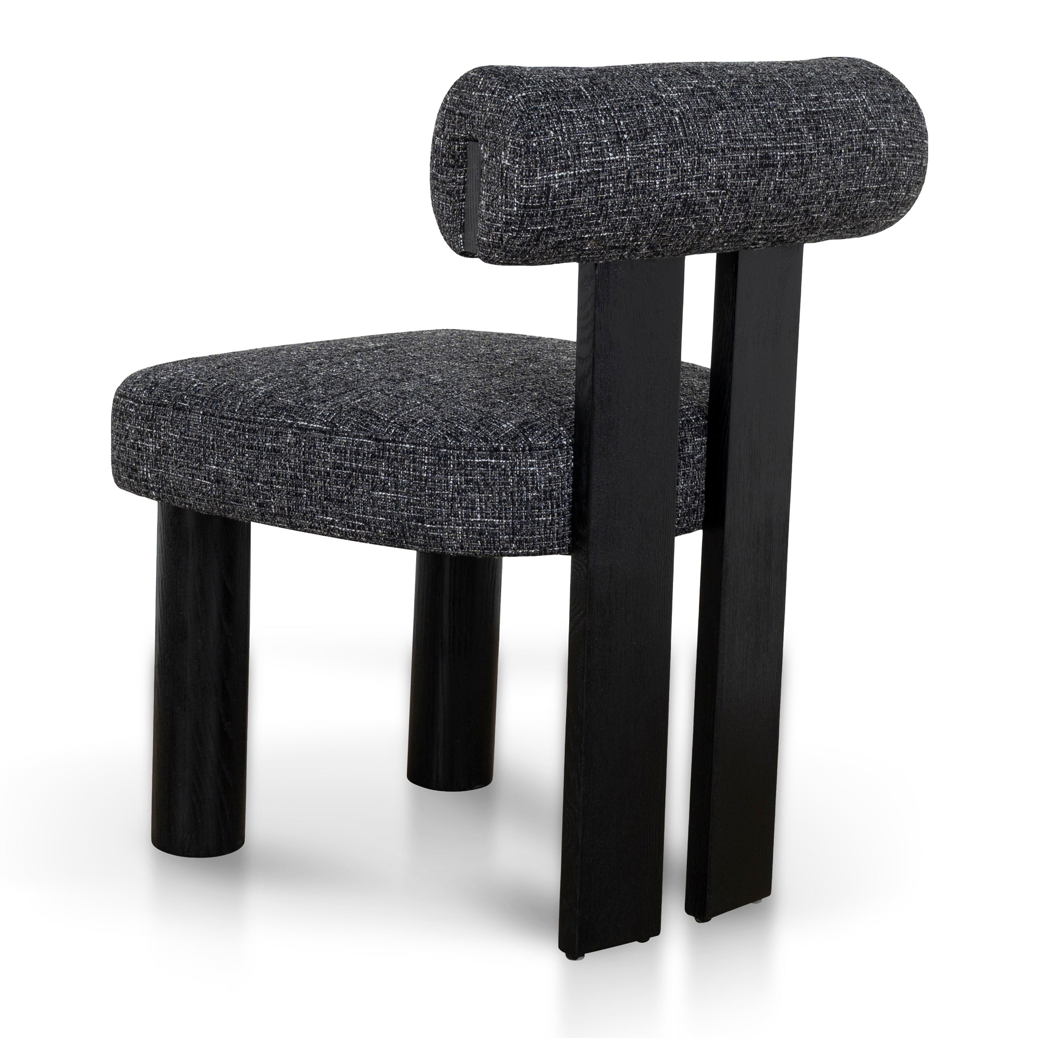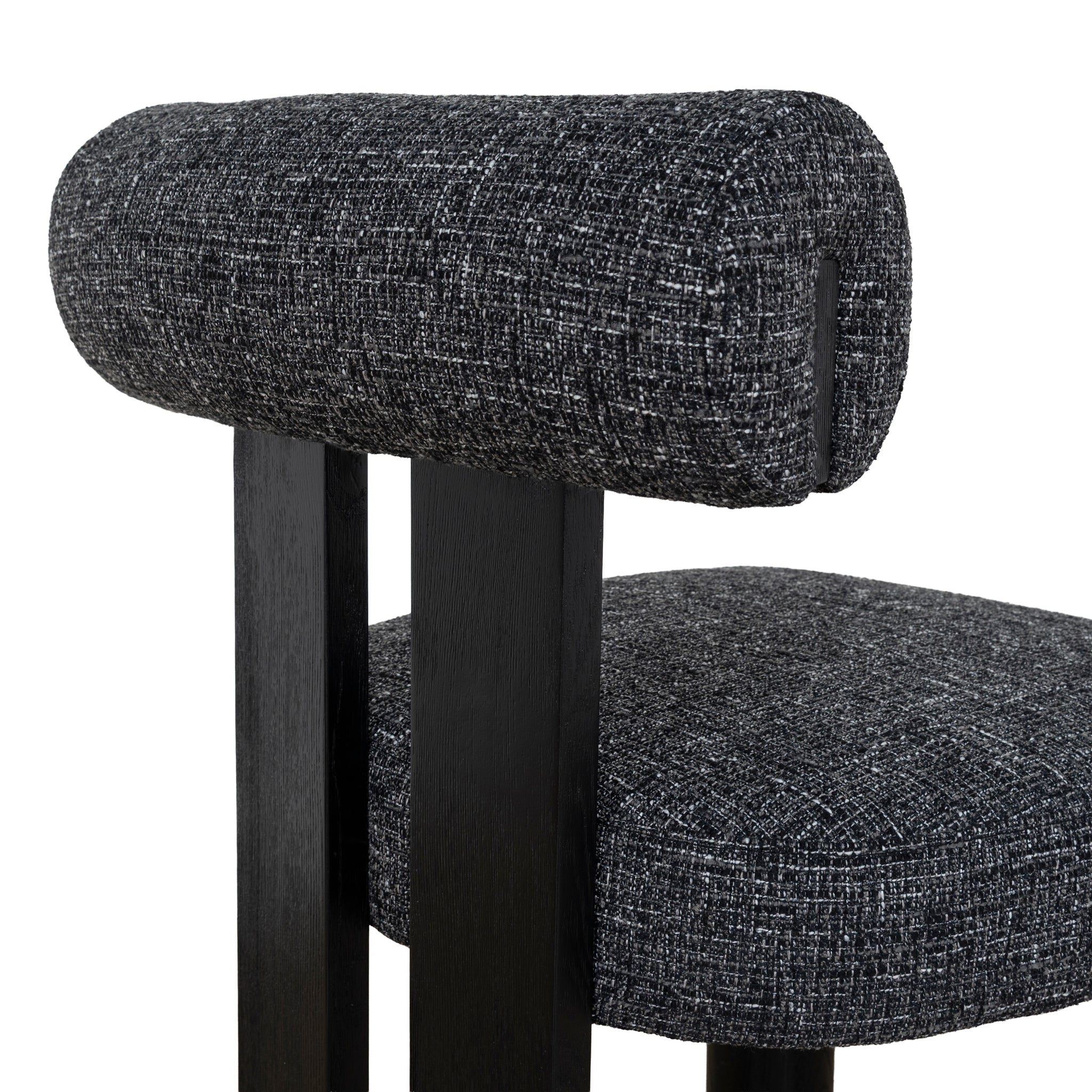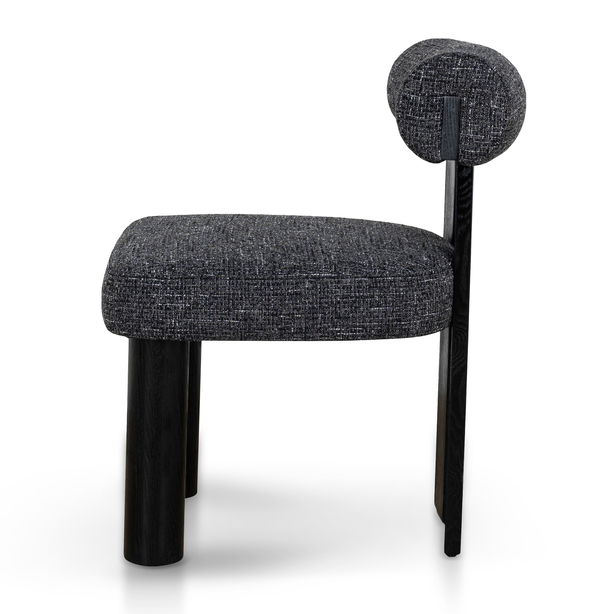 The Black Dining Chair - Field Charcoal (Set of 2) brings refined elegance to the dining room.Field charcoal polyester upholstery Plywood frame construction Spring suspension Ash wood legs Foam filling Soft-to-medium seat firmness Thickly padded seat Curved cylindrical backrest Weight Capacity: 150 kg Product comes fully assembled52cm (W) x 62cm (D) x 79cm (H) Seat: 52cm (W) x 44cm (D) x 49cm (H) Leg Height: 33.5cmPackaging Note: 2 Chairs in 1 Box Box 1/1: 129cmx67cmx56cm, 27kg, 0.4840cbm