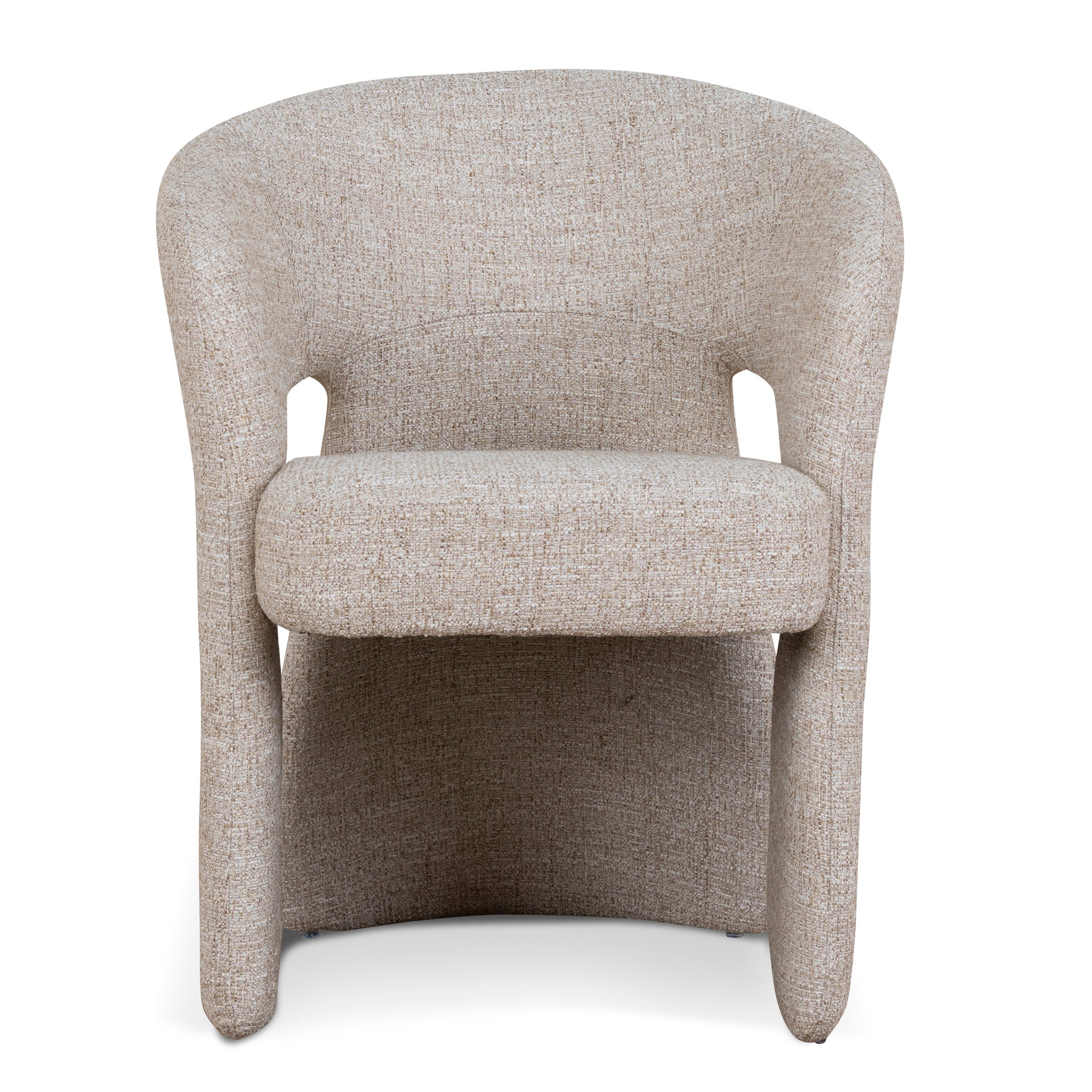 Upgrade your dining area today with Fabric Dining Chair - Pale Beige and experience a new level of refined living.Pale beige polyester upholstery Metal frame and legs Foam filling Soft-medium seat firmness Unique curved silhouette with flowing lines Ergonomic curved backrest Ideal for accent seating spaces Weight Capacity: 150 kg Product comes fully assembled66.5cm (W) x 60.5cm (D) x 82cm (H) Seat: 45cm (W) x 44.5cm (D) x 49.5cm (H)Box 1/1: 62.5cmx68.5cmx85cm, 14kg, 0.3639cbm