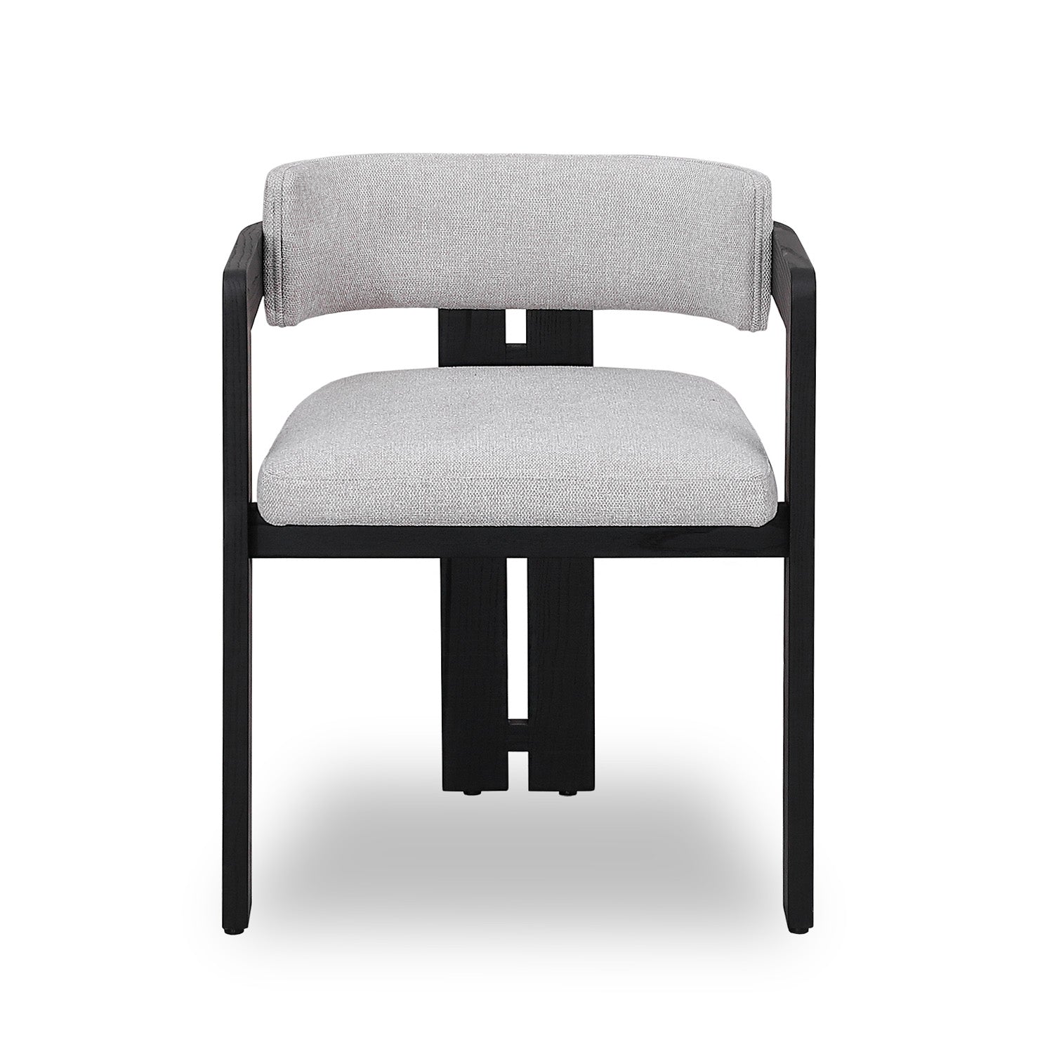 Upgrade your dining room with the elegant and contemporary Set of 2 Black Dining ChairsDurable white ash wood 94% Polyester, 6% Nylon upholstery Barrel back tripod frame in black finish Sharp angles with curved frame Sturdy flat front legs Interconnected rear legs Weight capacity: 130 kg Product comes fully assembled55cm (W) x 52cm (D) x 76cm (H) Seat Height: 47cm Arm Height: 64cmPackaging Note: 2 x Chairs in 1 x Box Box 1/1: 59.5cmx58.9cmx98.5cm, 22kg, 0.3452cbm