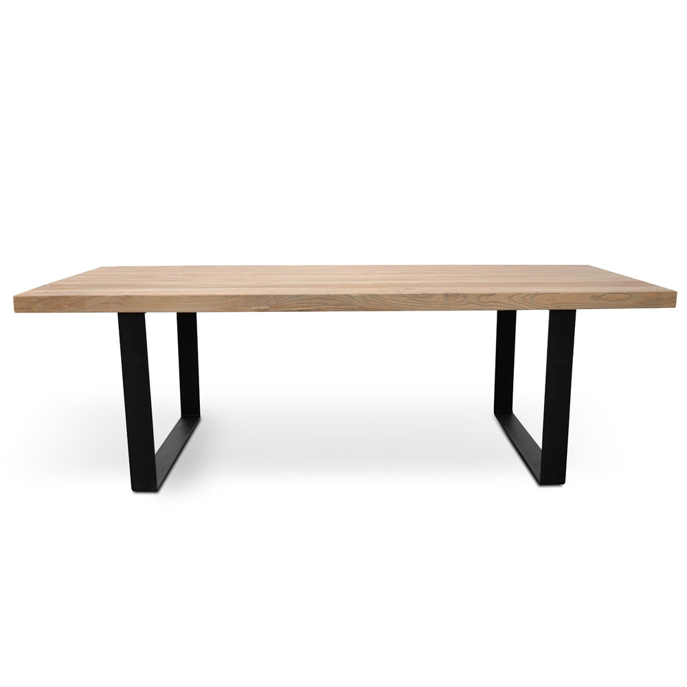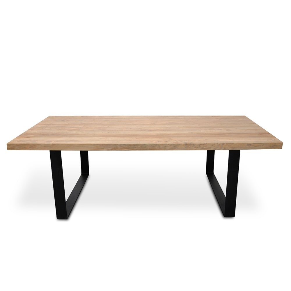 Bring a piece of history into your home in a new form by acquiring our modern industrial Dalton table. This item is made from recycled solid timber and makes for an ideal purchase for homeowners who value the workmanship behind this unique type of furniture.Reclaimed elm table topBlack steel legsSeats 6-8 peopleProduct comes flat packed and requires a two-person assembly Note: This range uses reclaimed elm timber. Each handmade piece features unique characteristics like cracks, splits, and imperfections. Variations in colour, texture, and pattern are natural and should be appreciated. Differences between shipments are expected.240cm (W) x 100cm (D) x 75cm (H) Distance between the legs: 160cm Tabletop thickness: 6cmBox 1/2: 105cmx242cmx6cm, 48kg, 0.1525cbm Box 2/2: 22cmx72cmx80cm, 30kg, 0.1267cbm