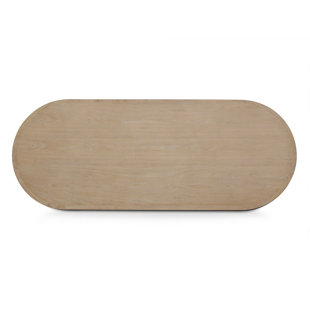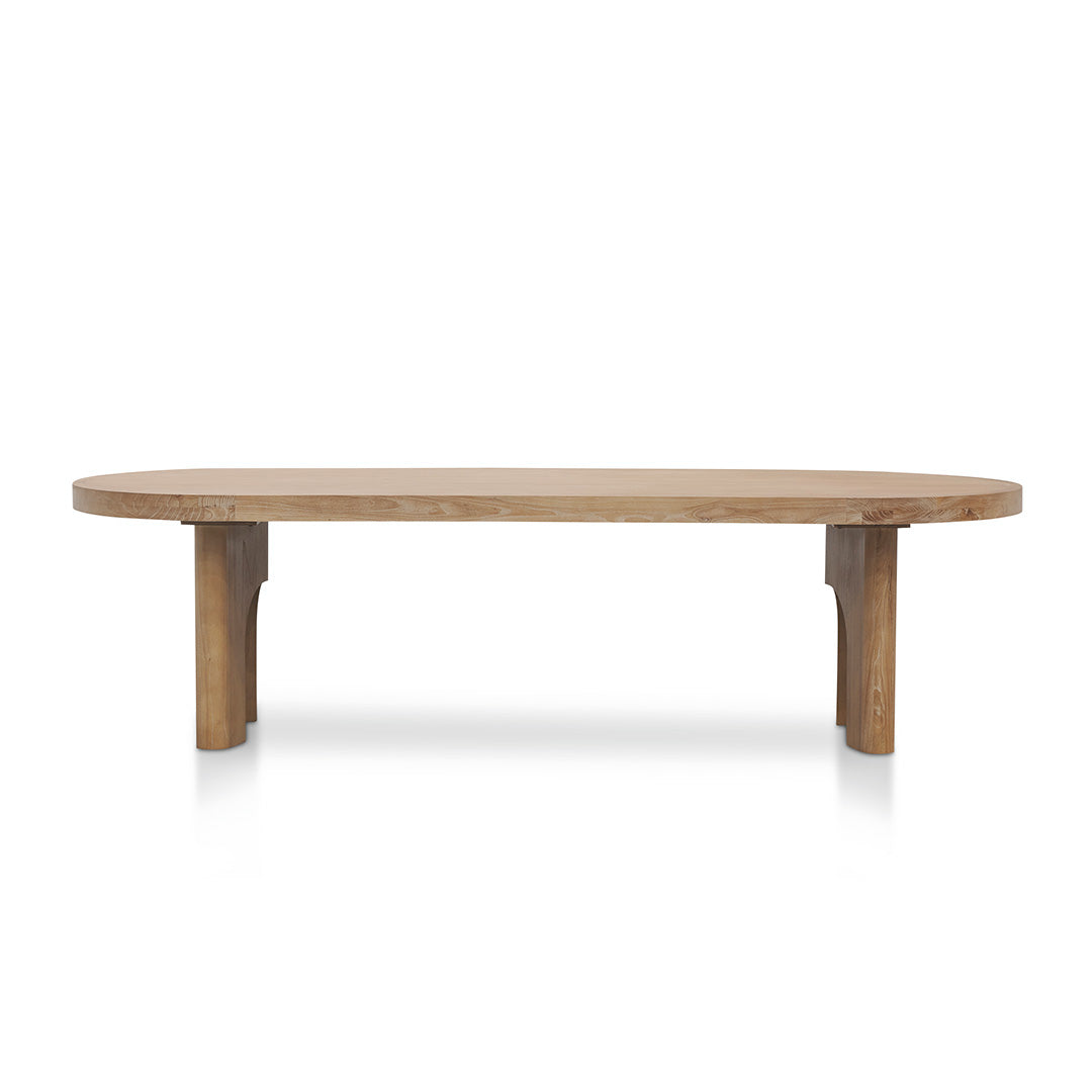 Gather in refined elegance around the 2.8m Oval Dining Table, featuring a sleek Natural finish that exudes sophistication and invites memorable dining experiences.Solid elm wood and veneer tabletop Elm veneer legs Striking sculptural design Arched panel legs Natural tone Visible wood grain patterns Softly rounded corners Weight Capacity: 100 kg Two-person assembly required280cm (W) x 110cm (D) x 76cm (H) Distance between legs: 174cm Table hangout: 38.7cmBox 1/2: 288cmx118cmx14cm, 51kg, 0.475cbm Box 2/2: 82cmx76cmx49cm, 28kg, 0.301cbm
