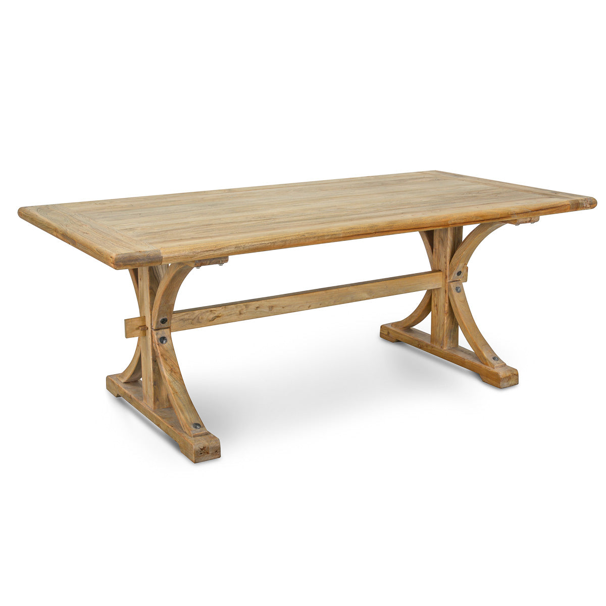 Bring a piece of history into your home in a new form by acquiring our modern industrial Marcus table. This item is made from recycled solid timber and makes for an ideal purchase for homeowners who value the workmanship behind this unique type of furniture.Recycled elm timber Natural oak colour Seats 6-8 people Crossed-leg design with supporting beam All reclaimed products are inspected & images are sent prior to dispatch Two-man assembly required due to weight of table Note: The timber used in this range is recycled elm timber. Each handmade piece will naturally have distinctive characteristics such as cracks, splits, and imperfections due to the nature of the wood. Any variations in colour, texture, and pattern are not faults but should be appreciated.200cm (W) x 100cm (D) x 75cm (H)Box 1/2: 7cmx202cmx106cm, 47.5kg, 0.1499cbm Box 2/2: 72cmx95cmx26cm, 26.5kg, 0.1778cbm