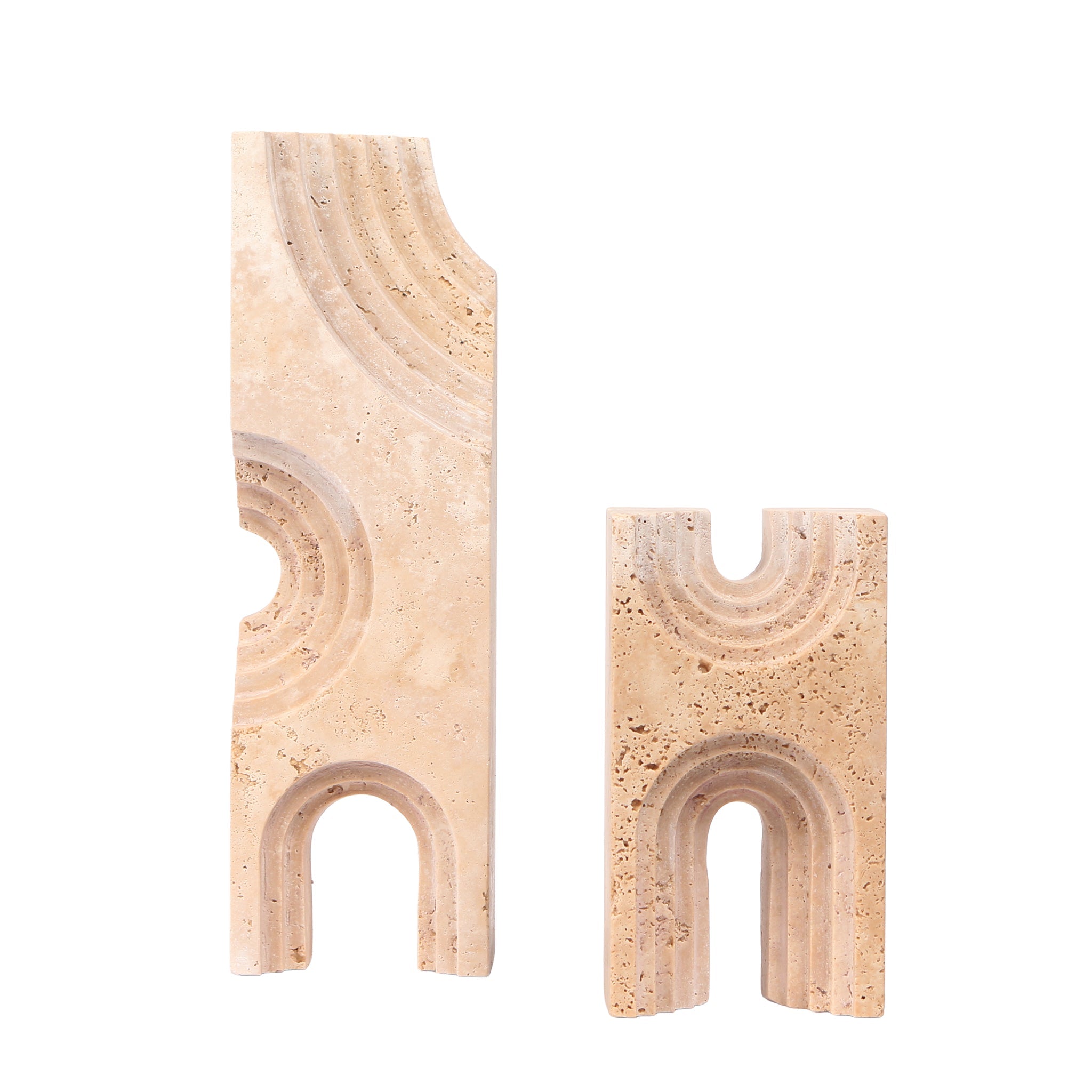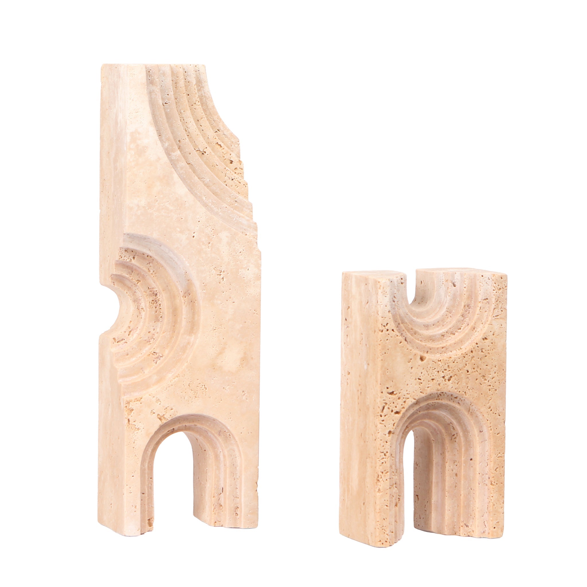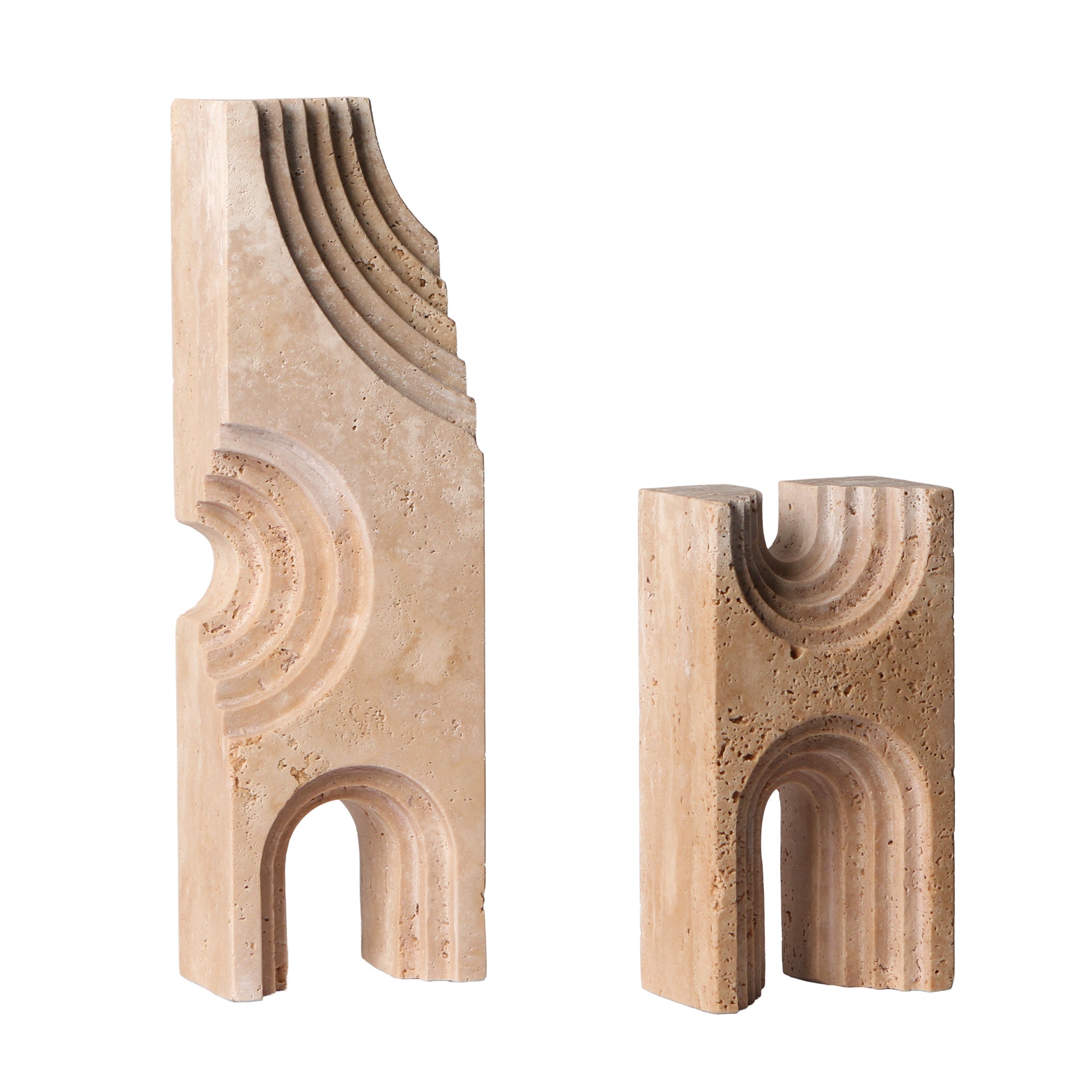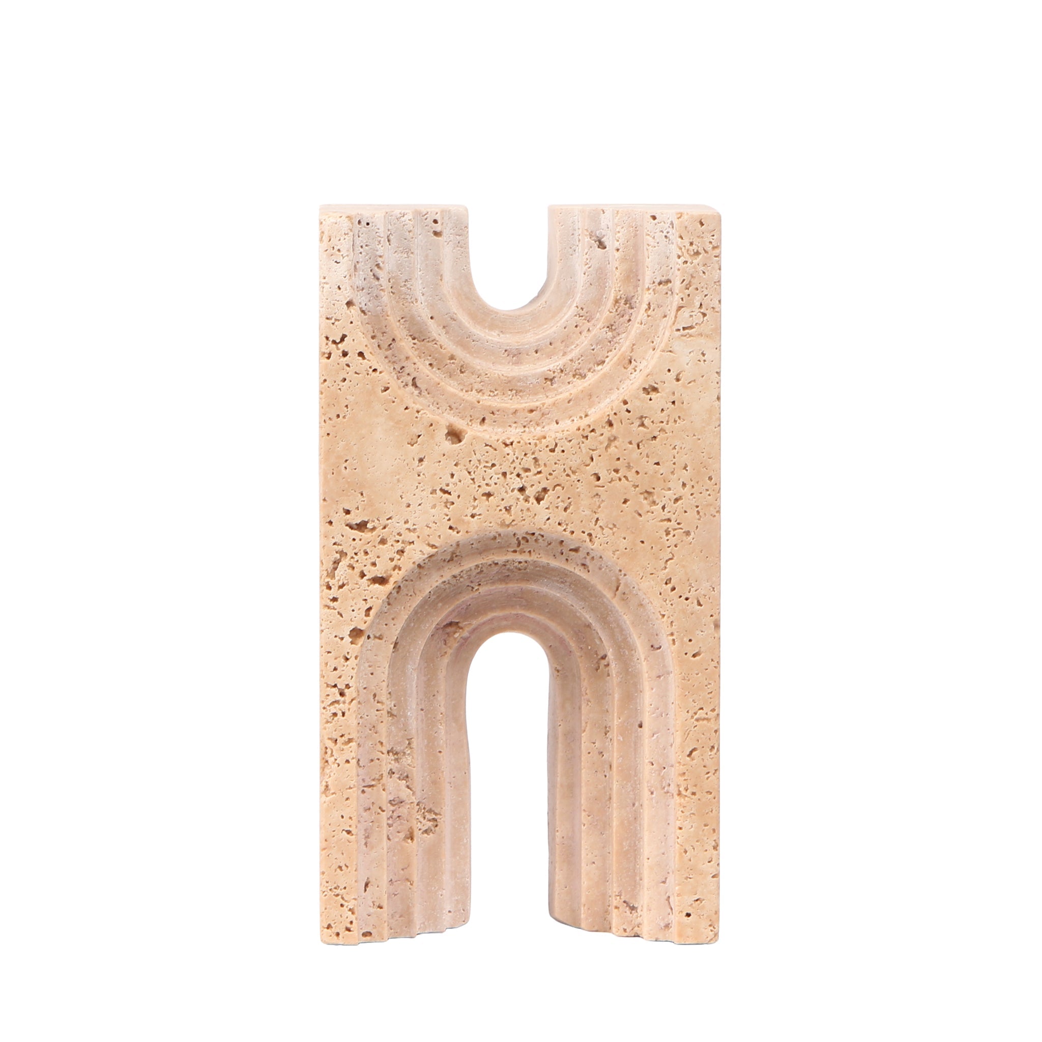 The Carved Marble Sculpture is more than just decor it’s a piece of art that quietly commands attention.Travertine with natural pits and unique veining Rectangular form with carved arch motifs on both sides Layered ridges add depth, texture, and architectural interest Warm beige tone highlights the stone’s organic elegance Solid and weighty for stable display Perfect as a standalone piece or paired with other stone sculptures Product comes fully assembled Note: Our marble and travertine decor pieces are natural stone that each has its own unique imperfections and characteristics. Any variations in colour, texture, polish, and pattern are not a fault and should be appreciated. Please note that polished marble and travertine are porous, so contact with liquids or hot beverages may cause the marble to mark. Make sure to wipe away any contact with food or drink immediately using water or a mild cleaner.12cm (W) x 7cm (D) x 22cm (H)Box 1/1: 31cmx21cmx16.5cm, 3kg, 0.0107cbm