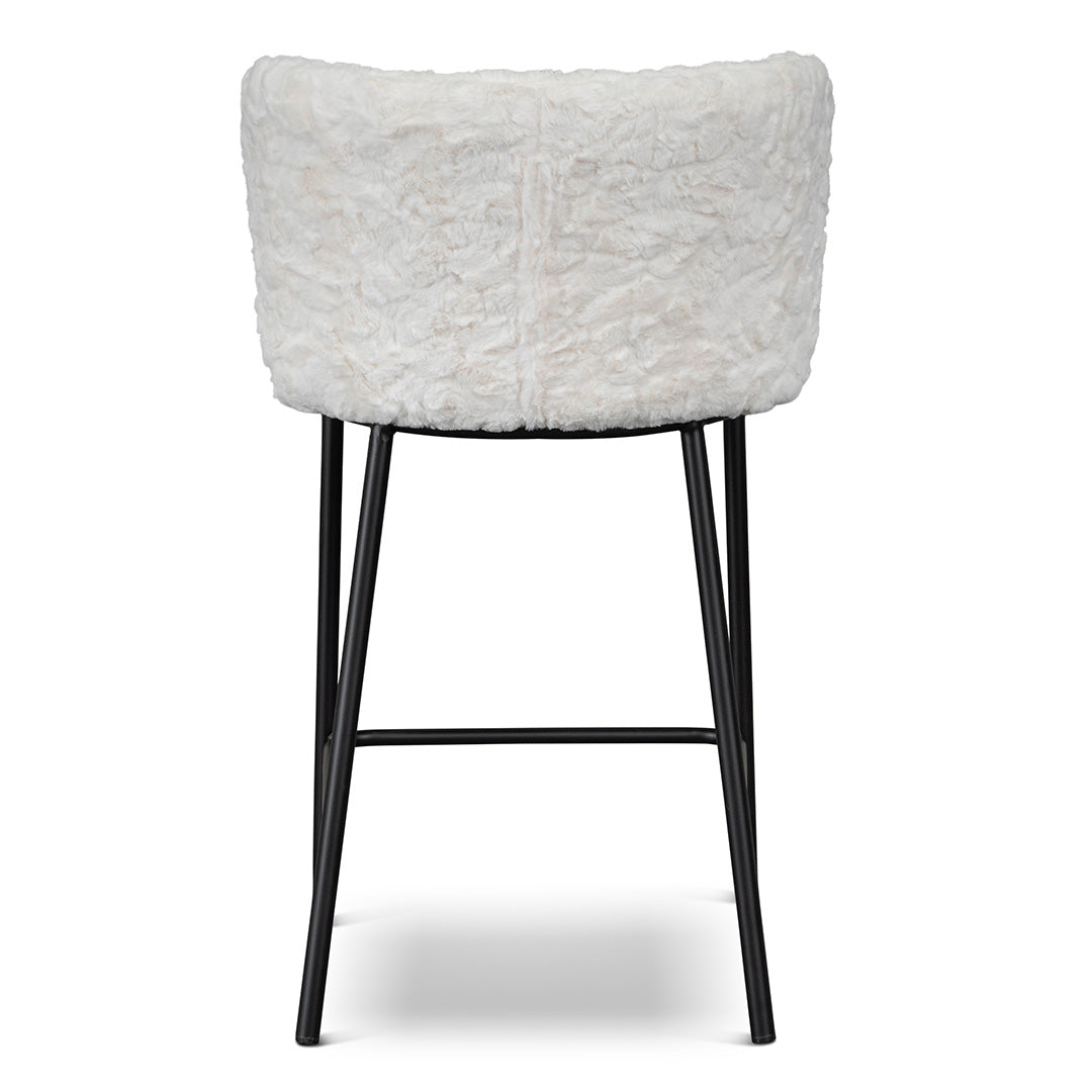 65cm Fabric Bar Stool - Cloud Fur (Set of 2) with functional backrest is stunning looking with its fashionable style and highly practical with its modern day's priority - ergonomic design.Upholstered in Faux Fur Metal Frame, a round top, Solid base with a thin stand Foam and fabric filled top Picturesque White Rabbit Color Medium seat firmness Weight capacity upto 120kg The product requires minor assembly52.5cm (W) x 52cm (D) x 87.5cm (H) Seat dimension: 46cm (W) x 42cm (D) x 65cm (H) Leg Height: 60cm Foot rest: 20cmPackaging Note: 2 Chairs in 1 Box Box 1/1: 82.5cmx53cmx72cm, 10kg, 0.3148cbm