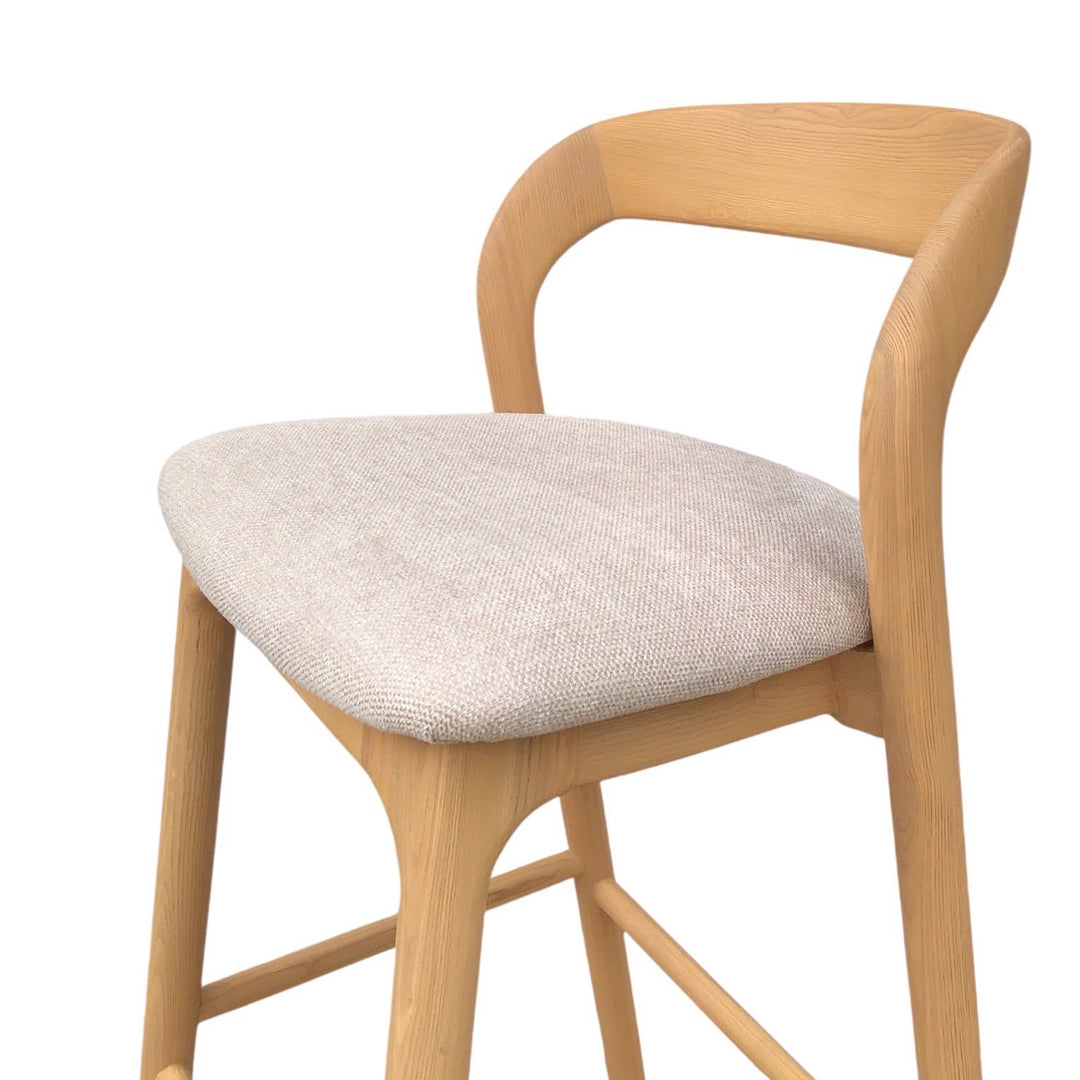 Elevate your interior with the 65cm Natural Bar Stool - Naxos Beige, a refined statement of modern simplicity and elegance.Naxos beige polyester upholstery Solid ash wood frame in natural finish Finished with NC coating Tapered ash wood legs Foam filling Soft-medium seat firmness Open back design Weight capacity: 150 kg Product comes fully assembled46cm (W) x 49cm (D) x 88cm (H) Seat: 44cm (W) x 39cm (D) x 65cm (H) Leg Height: 62cmBox 1/1: 52cmx48cmx90cm, 7.5kg, 0.2246cbm