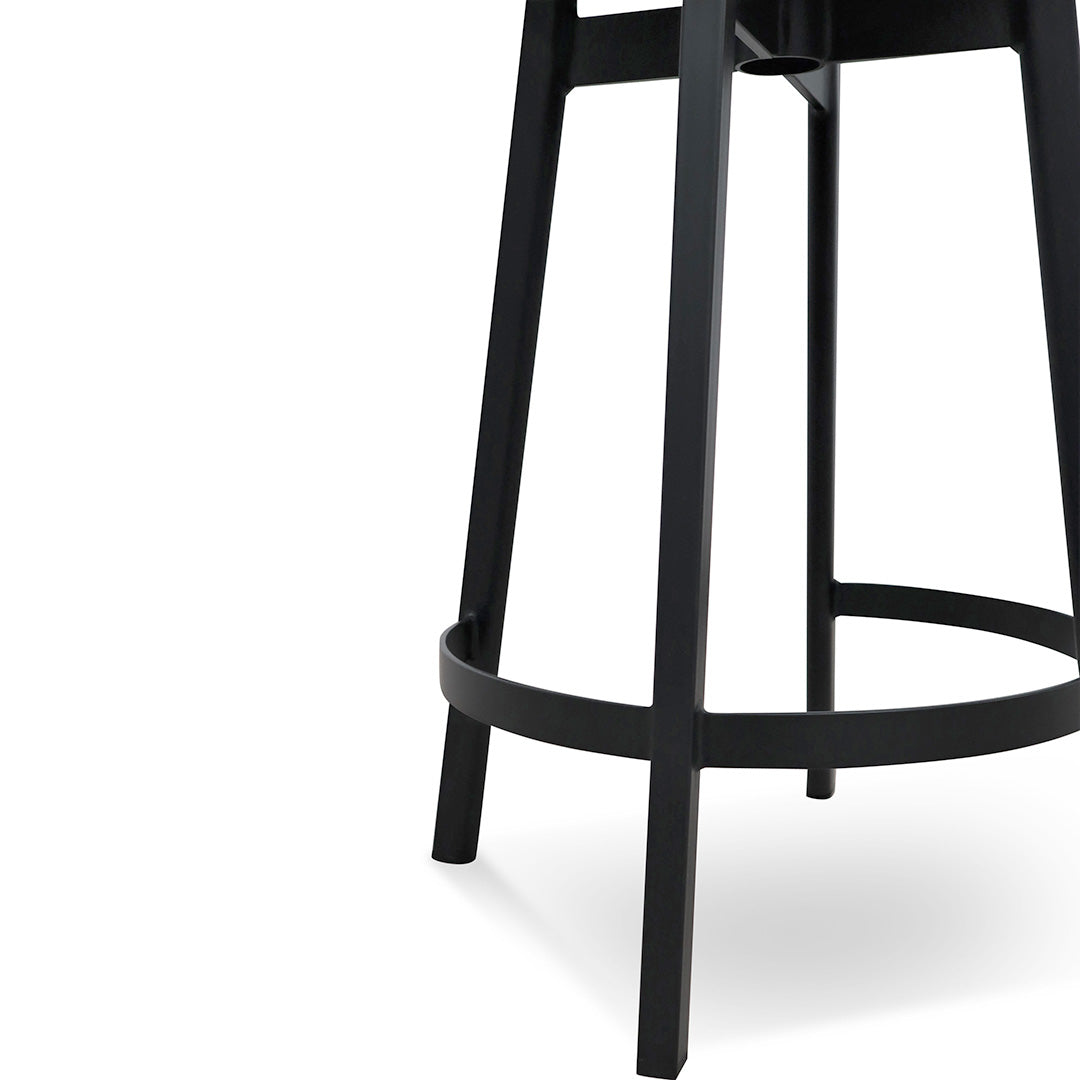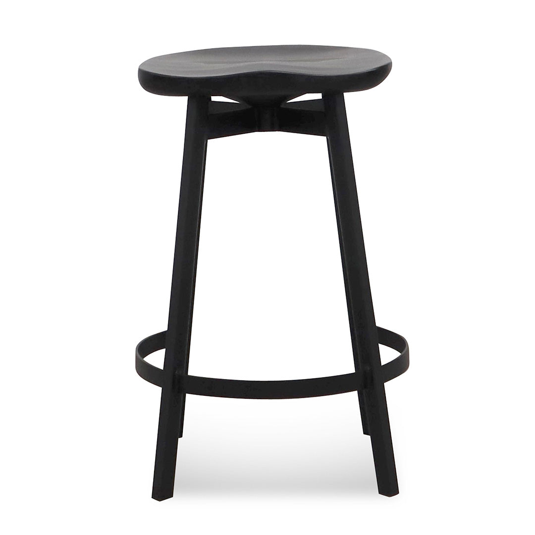 Enjoy a more casual dining ambience with 65cm Bar Stool - Black contemporary character.Steel frame and legs in a matte black finish Solid ash wood seat in a matte black finish Subtle curved seat to comfort all body types Additional foot rest for support Foot protectors included Can support up to 200kg Product comes fully assembled43cm (W) x 41.5cm (D) x 65cm (H)Box 1/1: 69cmx46cmx43.5cm, 10kg, 0.1381cbm