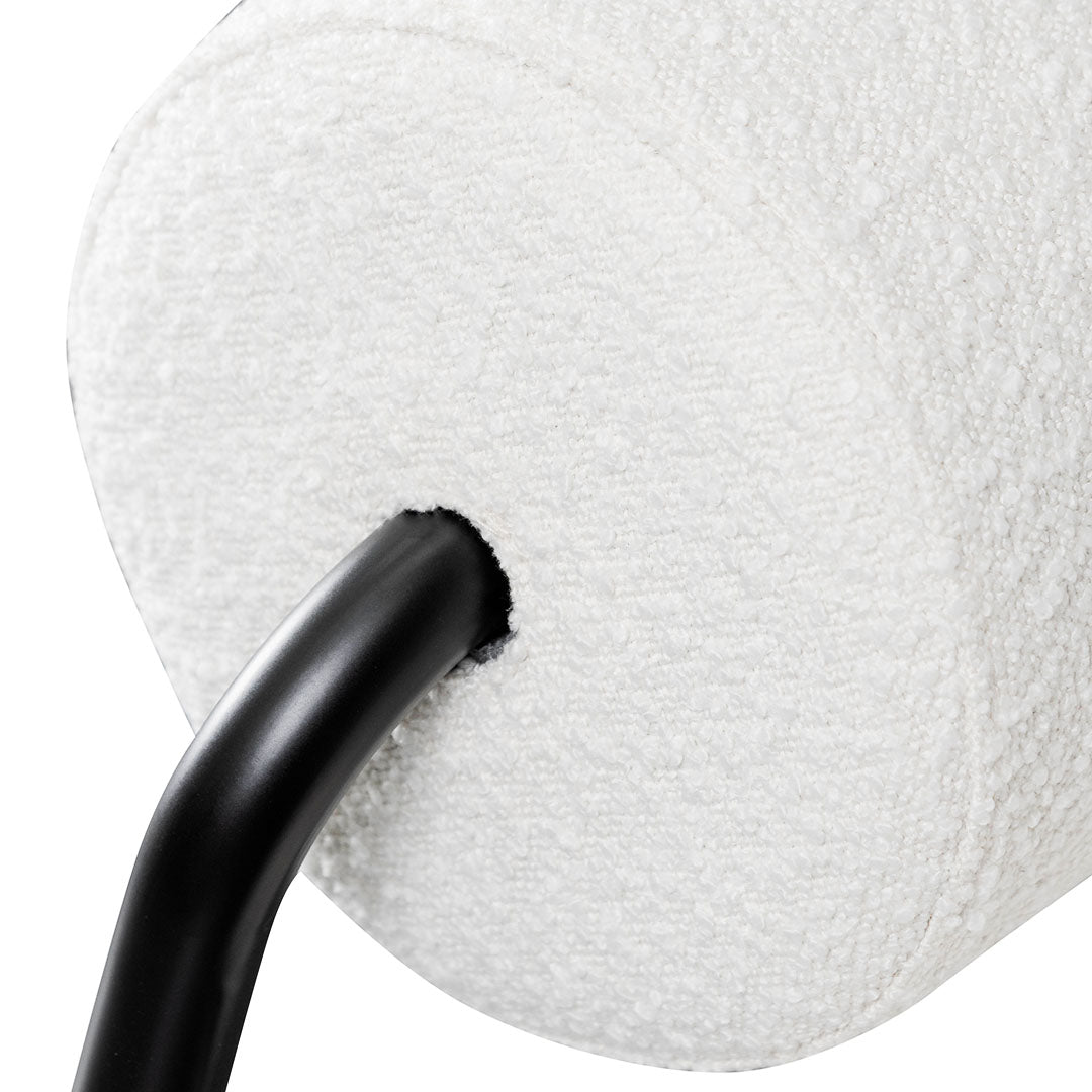 Elevate the atmosphere of your home with the touch of sophistication that’s brought by Lounge Chair - Ivory White Boucle.95% polyester, 5% acrylic fabric Combination of timber & foam Modern minimalistic design in an urban style Metal frame with round padded backrest Soft-medium seat firmness 130kg weight limit Not suggested for commercial use Fully assembled83cm (W) x 81.7cm (D) x 70.2cm (H) Seat: 66cm (W) x 61cm (D) x 42cm (H)Box 1/1: 85cmx91cmx81cm, 15.5kg, 0.6265cbm