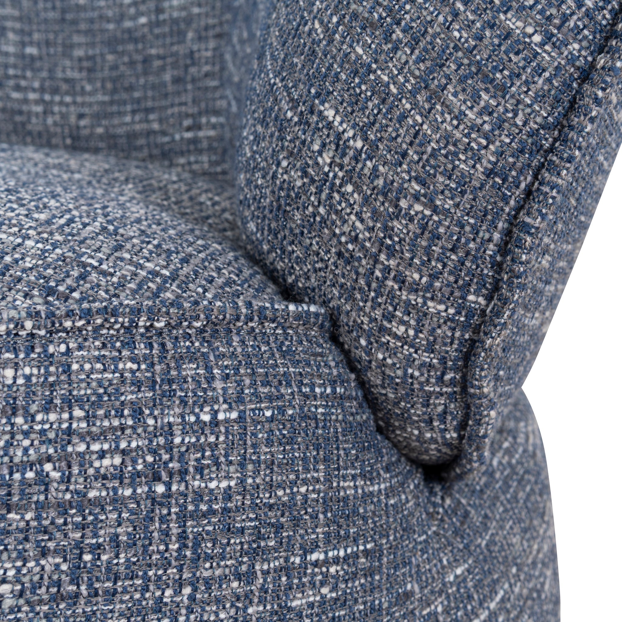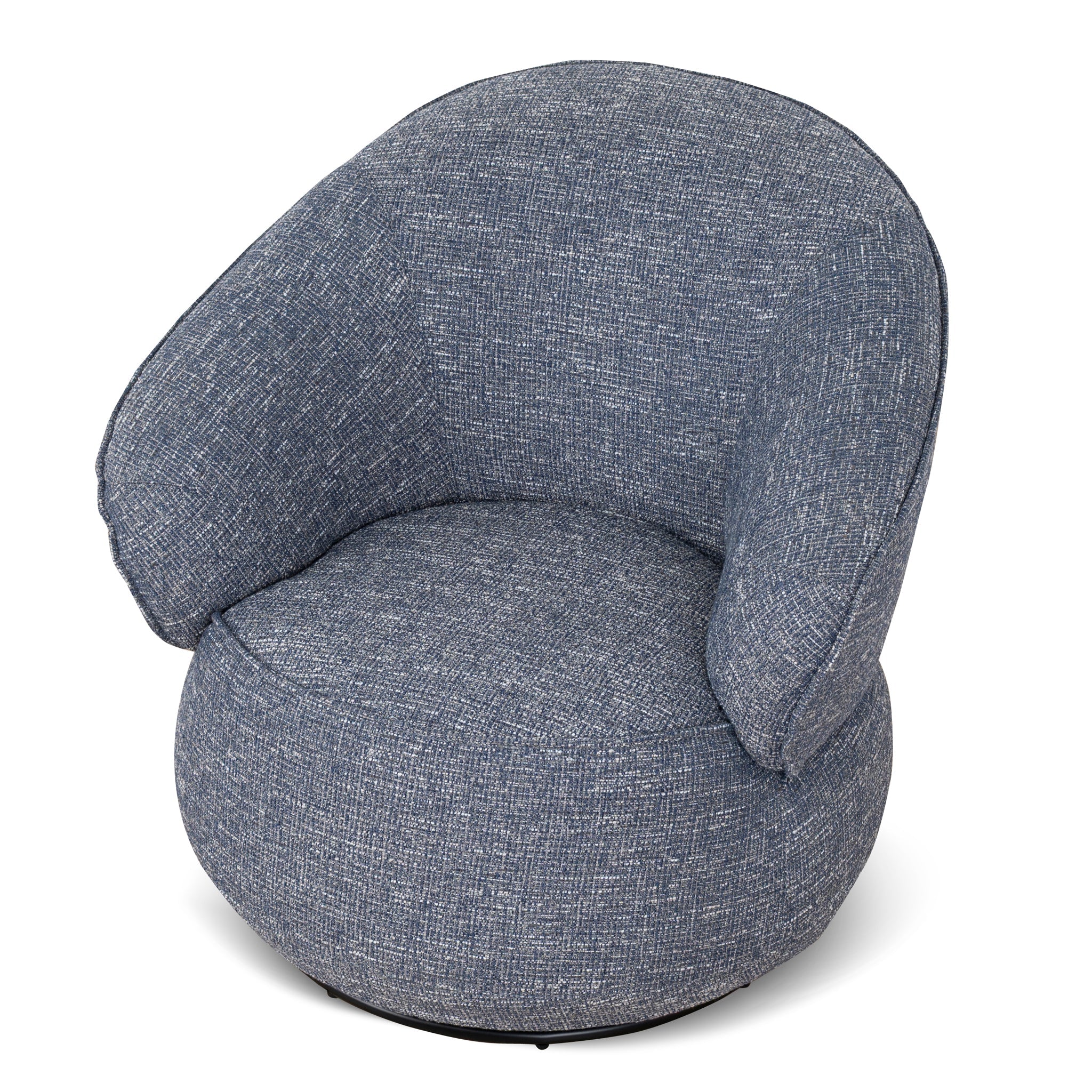 The Swivel Armchair - Prussian Blue brings a bold yet graceful presence to any refined interior.Prussian blue polyester upholstery Sturdy pine wood frame construction Web and spring suspension Durable metal steel turntable Foam filling Soft-to-medium seat firmness Sculpted backrest with gentle curves Wide, supportive seat Weight Capacity: 300 kg Product comes fully assembled79cm (W) x 84cm (D) x 79cm (H) Seat: 52cm (W) x 84cm (D) x 43cm (H) Arm Height: 62cm Leg Height: 6cmBox 1/1: 81cmx86cmx81cm, 33kg, 0.5642cbm