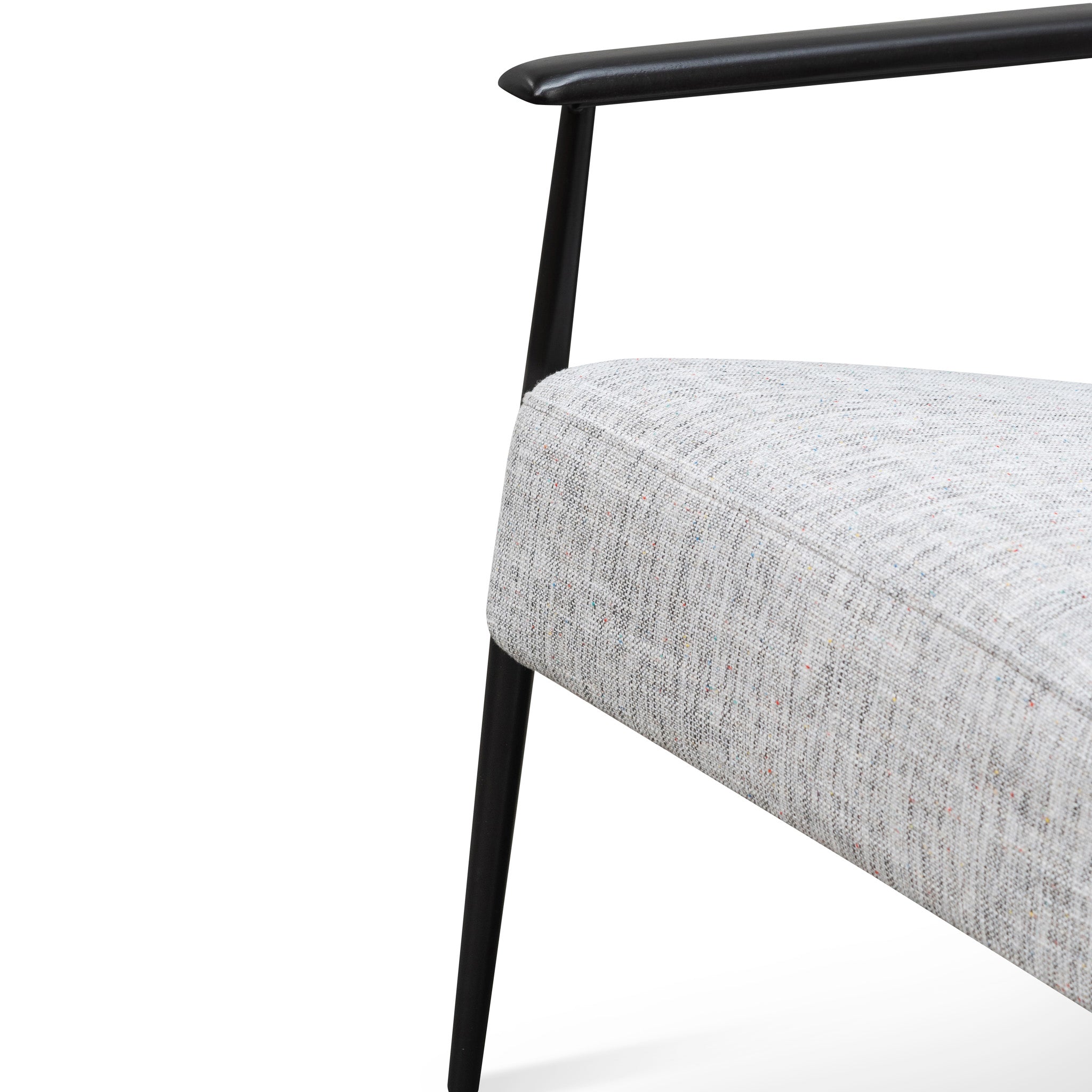 Instill your lounging style with the industrial appeal and minimal design of the Fabric Armchair - Light Spec Grey - Black Legs.Light spec grey fabric upholsteryRaised arm support from wood constructionPowder black metal legs and frameAngled position with flared rear legsSingle horizontal stitch detailMinor assembly required69cm (W) x 80cm (D) x 73.8cm (H) Seat Height: 42.7cmBox 1/1: 62cmx86cmx74cm, 20.6kg, 0.3946cbm
