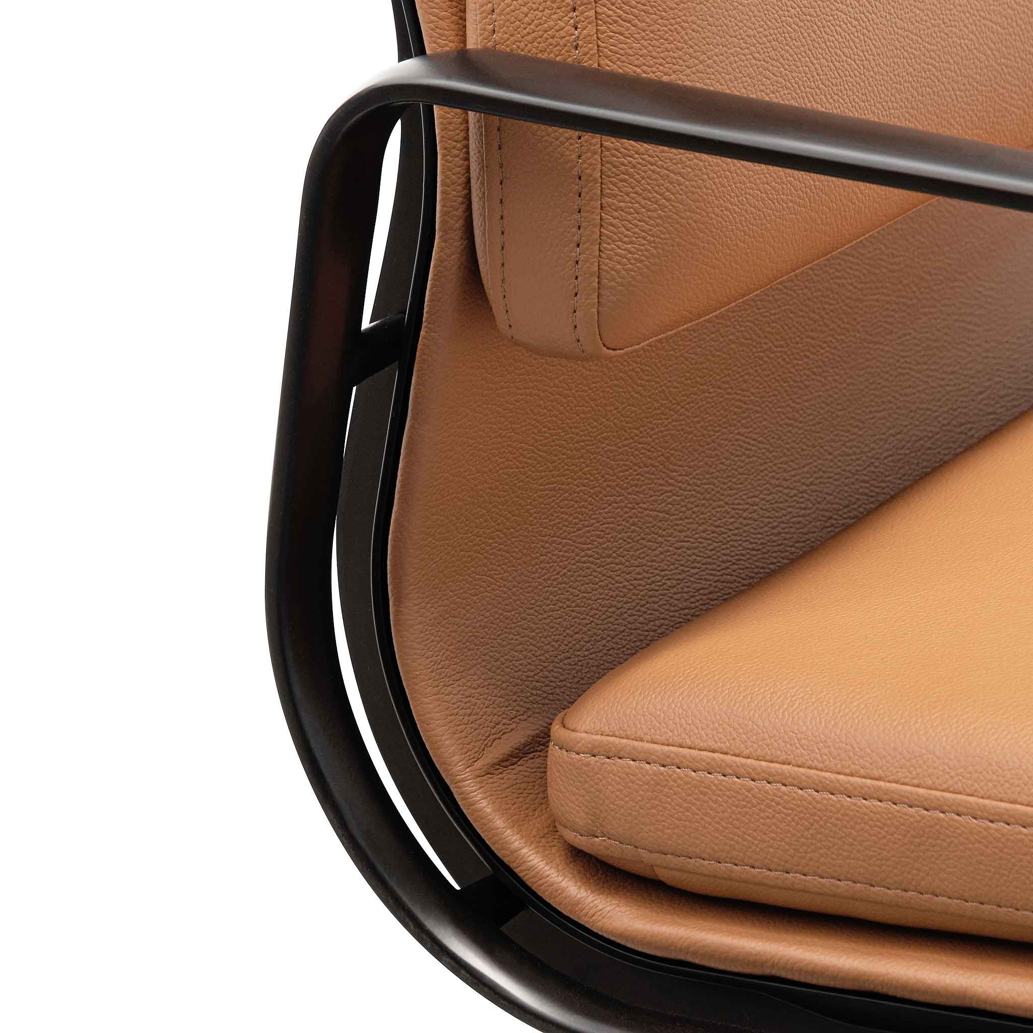Create a style statement in your modern-driven office corner with the classic looks of Ashton Low Back Office Chair - Saddle Tan in Black Frame.Seat is upholstered in PU leather with a saddle tan finish 2-inch thick seat cushions upholstered in premium top-grain Italian leather Polished die-cast chrome aluminum frame with a set of removable chromed castors Five star frame, arms, and base with a mirror-like finish 360-degree swivel and back tension tilt control Removable armrests to allow chair to slide under desk Tilting system with locking mechanism One touch gas lift height adjustment Constructed of lightweight heavy-duty aluminum 1-year manufacturers warranty against defects Weight Capacity: 120 kg This product is supplied flat-packed and requires assembly by two people Note: This product is a thoughtful replica of Charles and Ray Eames' iconic design and is not manufactured or affiliated with the original designer or distributor.59cm (W) x 60cm (D) x 91-99cm (H) Seat: 53cm (W) x 41cm (D) x 48-56cm (H) Armrest: 33cm (D) 63.5cm - 71.5cm (H) Backrest height from Seat: 43cm (H)Box 1/1: 60cmx77cmx38cm, 16kg, 0.1756cbm