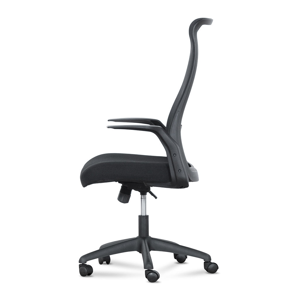 Complete your office space with the ergonomic design of Mesh Office Chair - Black.Back rest in a breathable black mesh Waterfall seat upholstered in a black fabric Polypropylene construction in matte black Nylon base with 5 star castor wheels Fixed armrest, tilting mechanism and height adjustable gas lift 360 degree swivel and ratchet back Product is flat packed and requires two-person assembly61.5cm (W) x 62.5cm (D) x 110cm - 117.5cm (H) Seat Dimensions: 50.5cm (w) x 45.5cm (D) x 43cm - 50.5cm (H) Arm Height: 70cmBox 1/1: 76cmx22cmx52cm, 11.72kg, 0.0869cbm