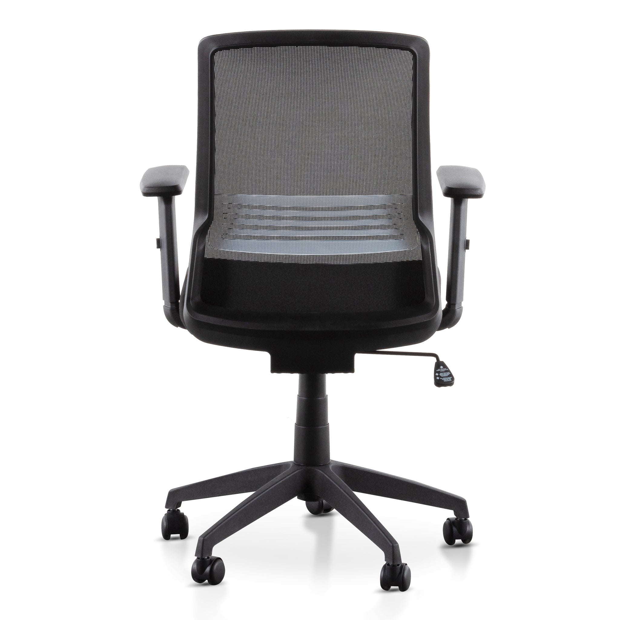 Welcome premium office support into the workspace with the sleek design of Mesh Office Chair - Full Black.Ratchet back in breathable mesh upholstery Moulded and contoured frame and seat in polypropylene construction Waterfall seat rest in fabric upholstery with high-density foam insertHeavy duty nylon castor wheels with powder black finishTilting mechanism with one point lock Tension and arm adjustment included360 degree swivel with adjustable gas-lift seat heightProduct is flat packed and requires two-man assembly64cm (W) x 54cm (D) x 97-104.5cm (H) Seat Dimension: 49cm (W) x 47.5cm (D) x 45/52.5cm (H) Arm Seat Height: 17 - 26cmBox 1/1: 65cmx58.5cmx28cm, 14.6kg, 0.1065cbm