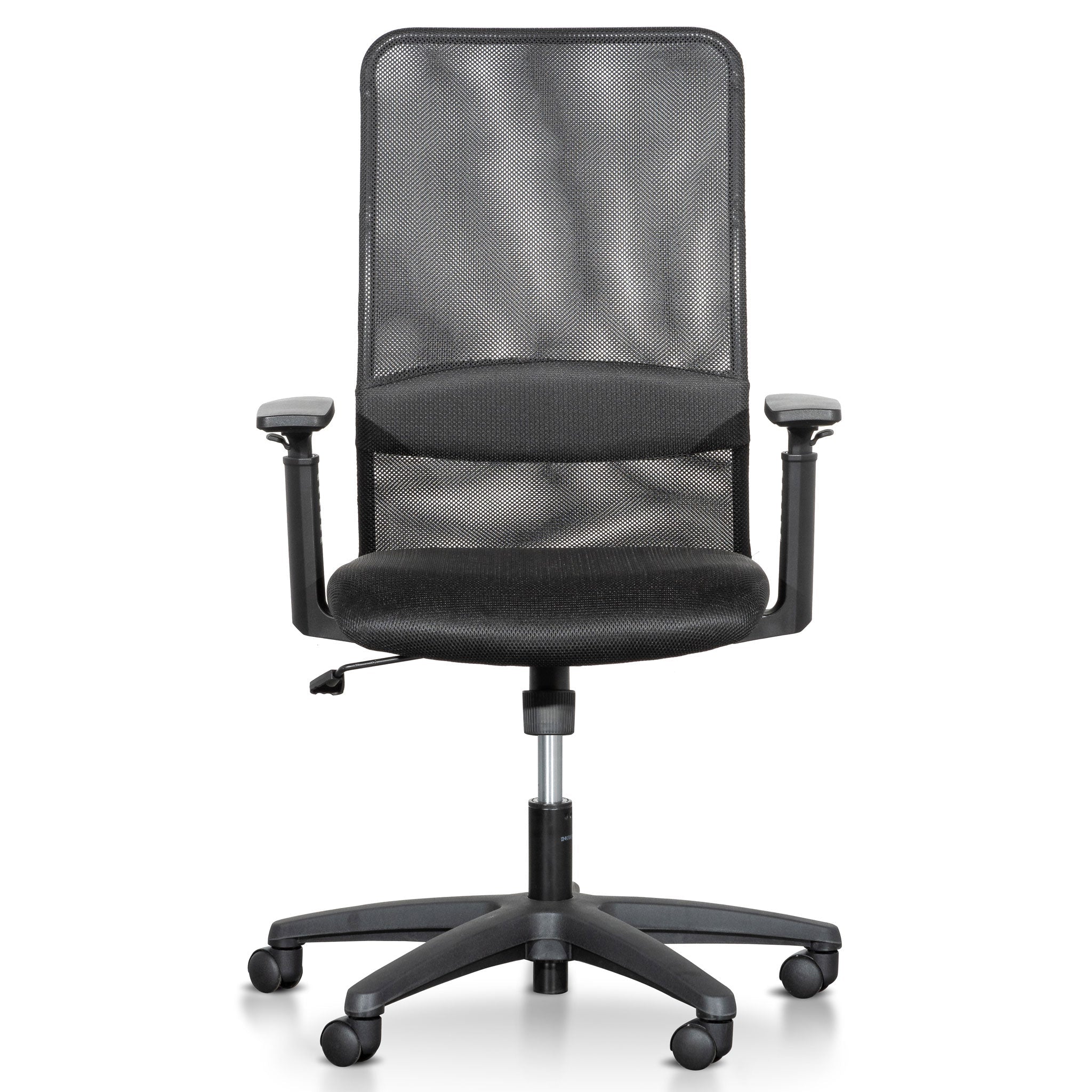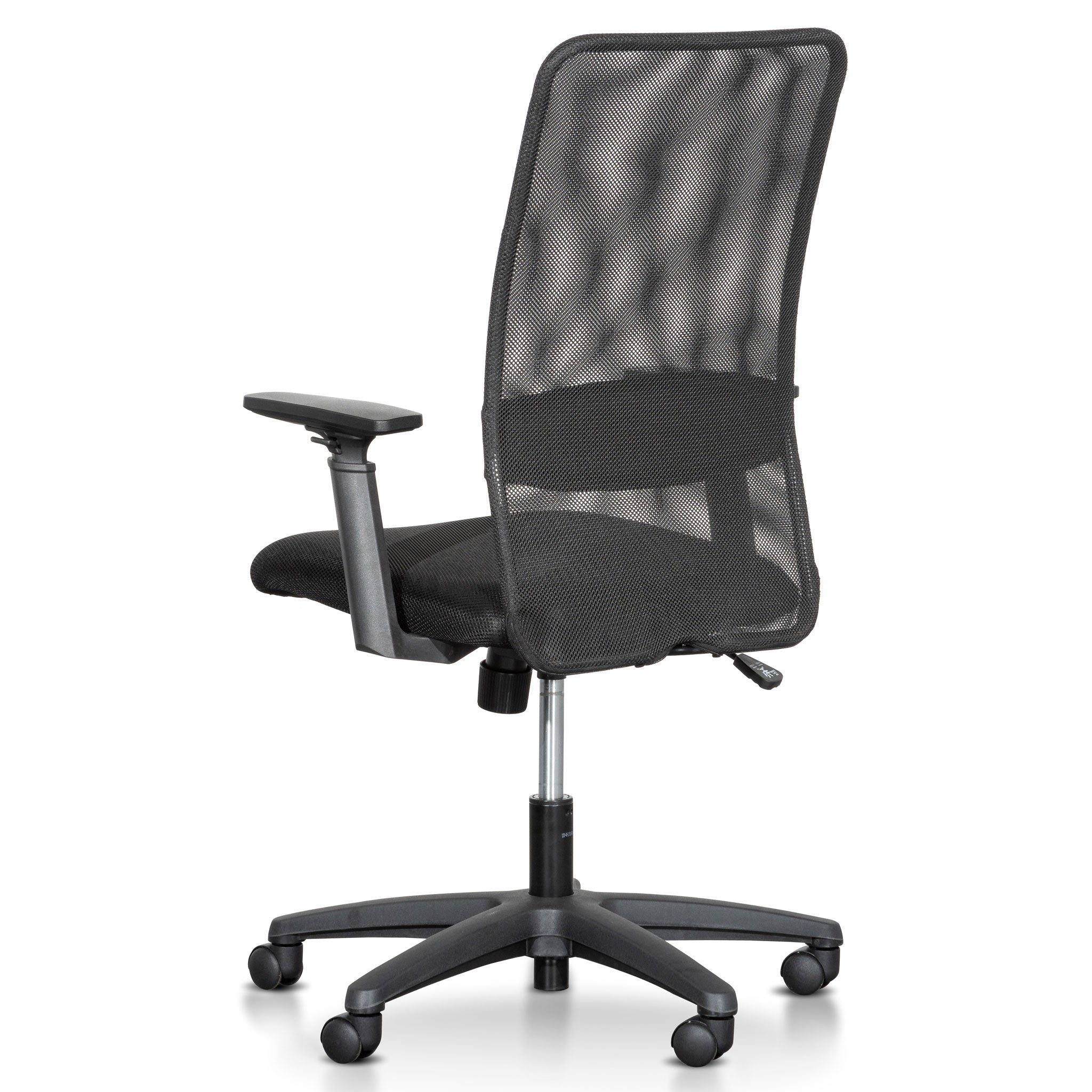 Elevate your work performance with the professional exterior and seamless functioning of Mesh Office Chair - Black.Breathable mesh back with added supportMoulded and contoured polypropylene frame and detailingWaterfall seat in engineered wood with premium foam insertChrome steel base with heavy duty nylon castor wheels in powder black finishTall and elongated back for extended back and neck support360 degree swivel with adjustable gas-lift seat heightProduct is flat packed and requires two-man assembly3 year warranty70cm (W) x 70cm (D) x 99.5 - 110.5cm (H)Box 1/1: 10.8cmx70cmx70cm, 13.8kg, 0.0529cbm