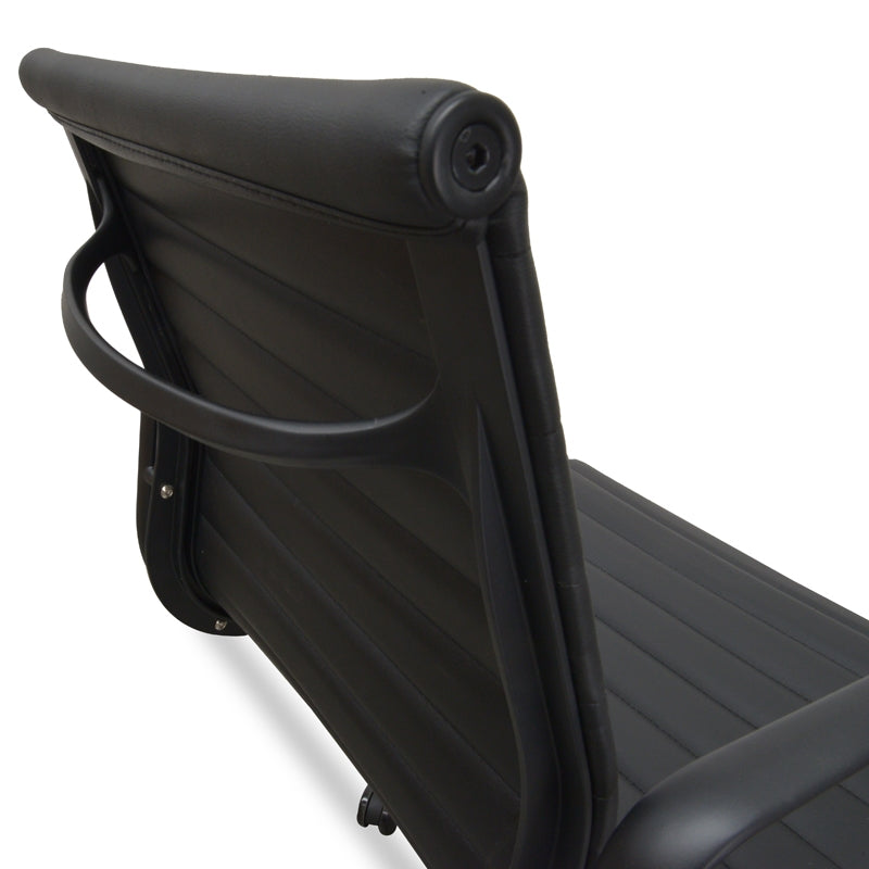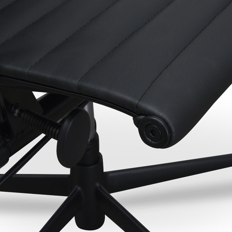 Inspired by the original designed by Charles and Ray Eames, the slim and handsome Leather Office Chair offers you all-day comfort thanks to its faithful reproduction of quality and design. The office chair’s sleek all-black design will stylishly suit any modern office or workspace with no hassle, so you can focus on the bigger projects.Upholstered in PU leatherFive star leg base, frame, and arms in a black finish for a versatile and sleek look360-degree swivel with suspension baseOne touch gas lift height adjustmentA set of removable castersRemovable armrest to allow chair to slide under deskTilting system with locking mechanismSimple assembly required1 year manufacturer's warranty against defects Experience the perfect balance of comfort and space with a wide office chair. These roomy options provide extra support and freedom of movement. Note: This product is a thoughtful replica of Charles and Ray Eames' iconic design and is not manufactured or affiliated with the original designer or distributor.64cm (W) x 64cm (D) x 93-98cm (H) , Seat Height: 42-49cm, Arms Height: 64-72cmBox 1/1: 38cmx60cmx78cm, 15kg, 0.1778cbm