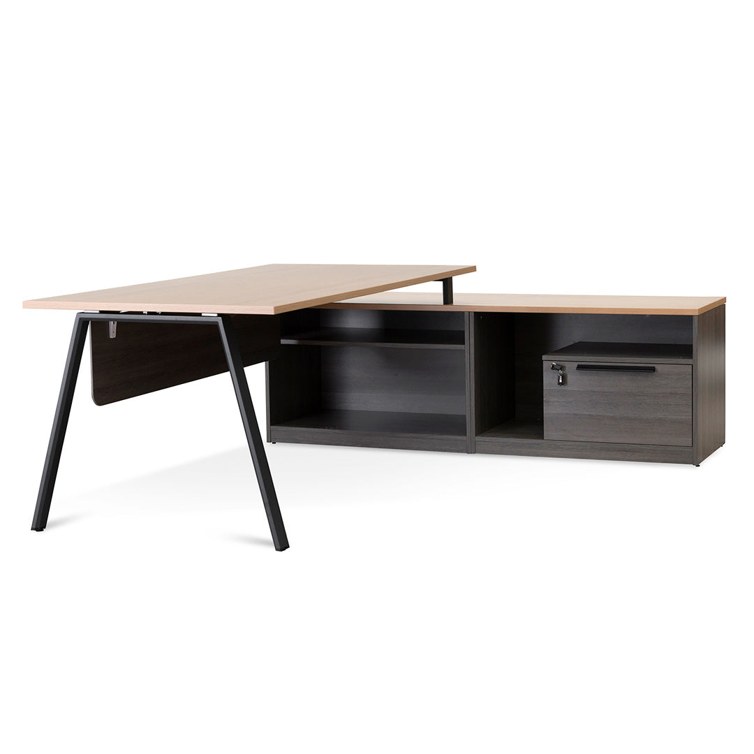 Enhance your professional workspace with the elegant 1.8m Right Return Office Desk in Black - Natural Top.E0 melamine practical board Natural table top and return top Matte black Steel legs Removable black modesty panel 1x drawer compartment 1x double shelved compartment 150kg weight limit Suitable for commercial use Product comes flat pack and requires two person assembly220cm (W) x 180cm (D) x 75cm (H) Return: 180cm (W) x 55cm (D) x 59cm (H) Table Top: 220cm (W) x 90cm (D)Box 1/10: 188cmx98cmx5.5cm, 15kg, 0.1013cbm Box 2/10: 188cmx63cmx5.5cm, 7kg, 0.0651cbm Box 3/10: 170.6cmx6.5cmx6.5cm, 3kg, 0.0072cbm Box 4/10: 23cmx23cmx12cm, 2kg, 0.0063cbm Box 5/10: 98cmx63cmx63.2cm, 36.1kg, 0.3902cbm Box 6/10: 98cmx63cmx63.2cm, 23.3kg, 0.3902cbm Box 7/10: 23cmx23cmx12cm, 2kg, 0.0063cbm Box 8/10: 148cmx38cmx4cm, 2kg, 0.0225cbm Box 9/10: 93.5cmx75.5cmx8.5cm, 4kg, 0.06cbm Box 10/10: 73.5cmx16.5cmx8.5cm, 2kg, 0.0103cbm
