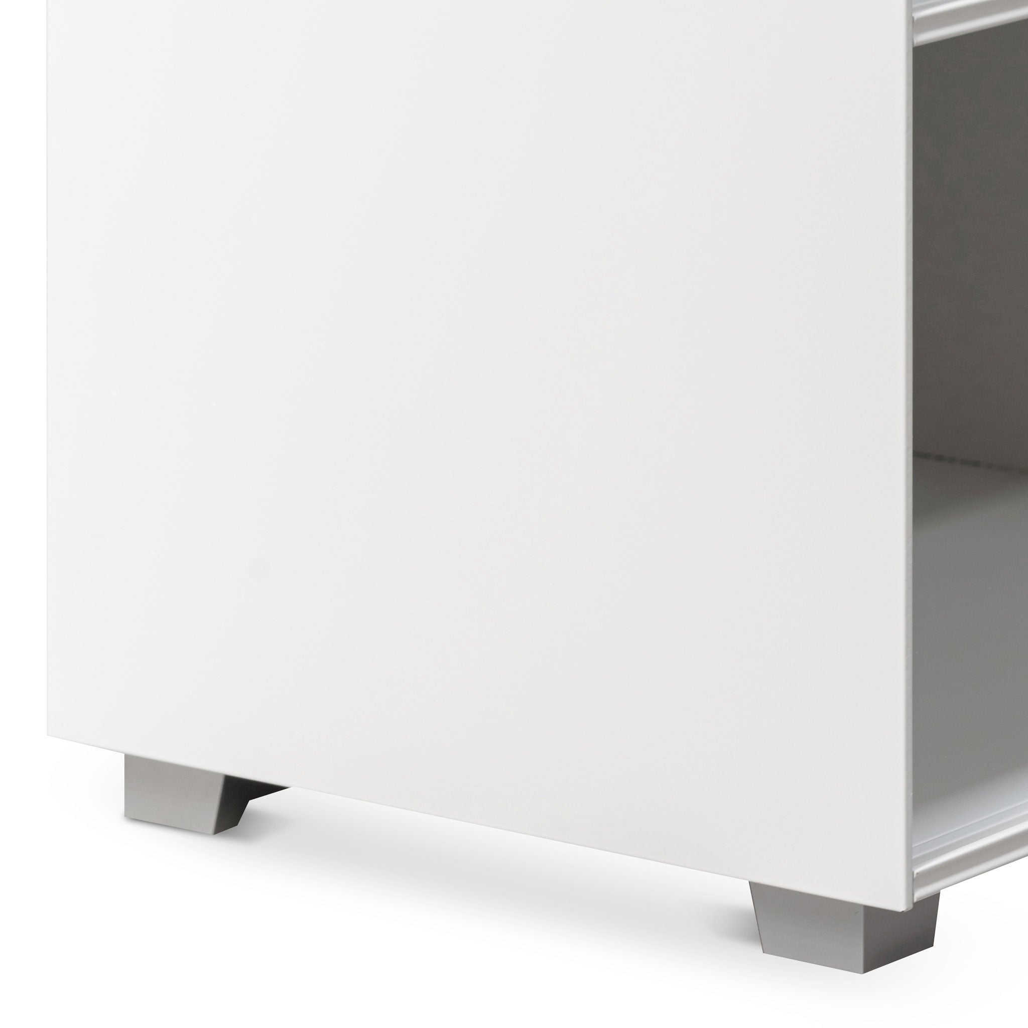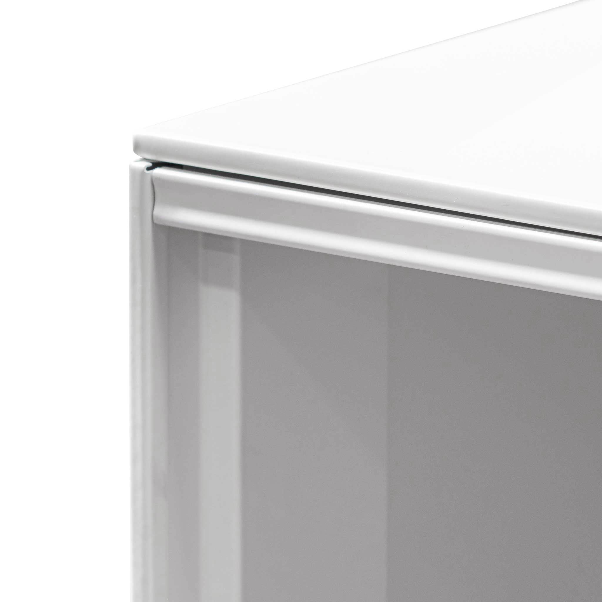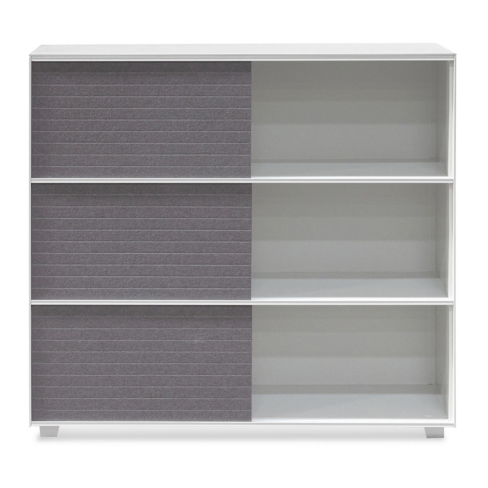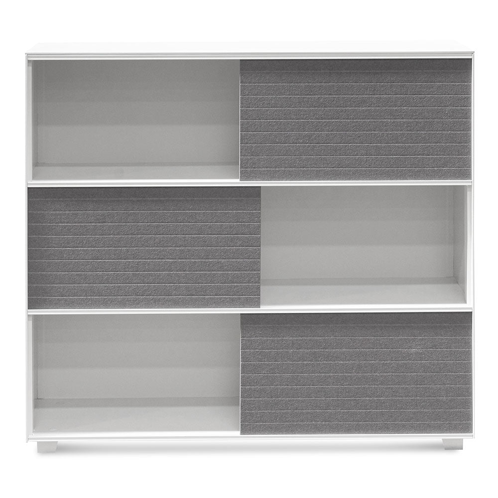 Revel in the functional and highly versatile design of Inter-layered White Storage Cabinet - Grey Doors and allow its clean and vibrant form to imbue your space with charm and style.Frame and detailing in a durable metal constructionComplete powder white finish for a complementary lookAdjustable panels in a grey soft-to-touch felt build Felt panels include horizontal stitch detailing for added interestMinimalist profile consisting of clean and linear bodyCompact yet generous in size, offering ample space to store and displayProduct is fully assembled.120cm (W) x 45cm (D) x 109cm (H)Box 1/1: 115.5cmx128cmx54.5cm, 42kg, 0.8057cbm