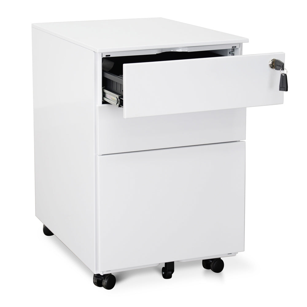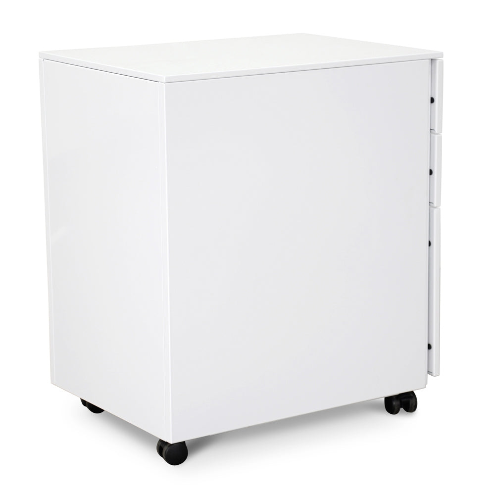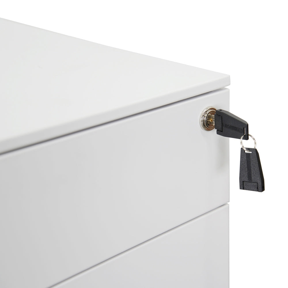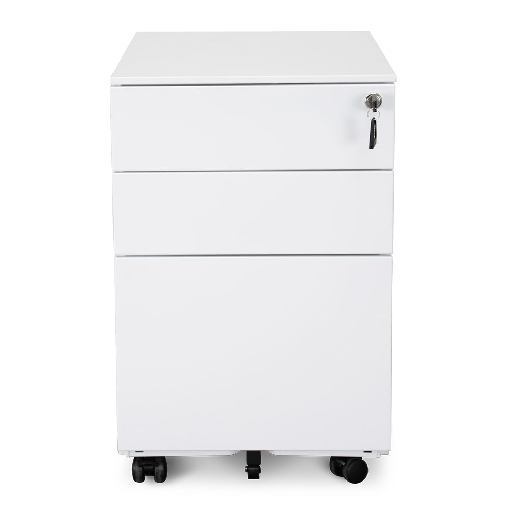 Mobile Pedestal - White is the perfect office storage solution for the workplace or home office, keeping your productivity at a high.Metal body in a white powder coated finish Lockable drawers Five caster wheels 2 x drawers and 1 x filing cabinet Pen tray included Also available in black and walnut Fully assembled Commercial grade Note: 5- years manufacturer's warranty against defects39cm (W) x 52cm (D) x 60cm (H)Box 1/1: 69cmx48cmx61cm, 20.5kg, 0.2020cbm