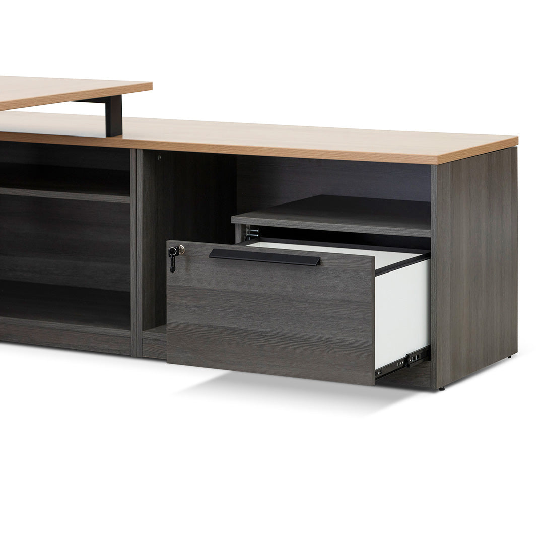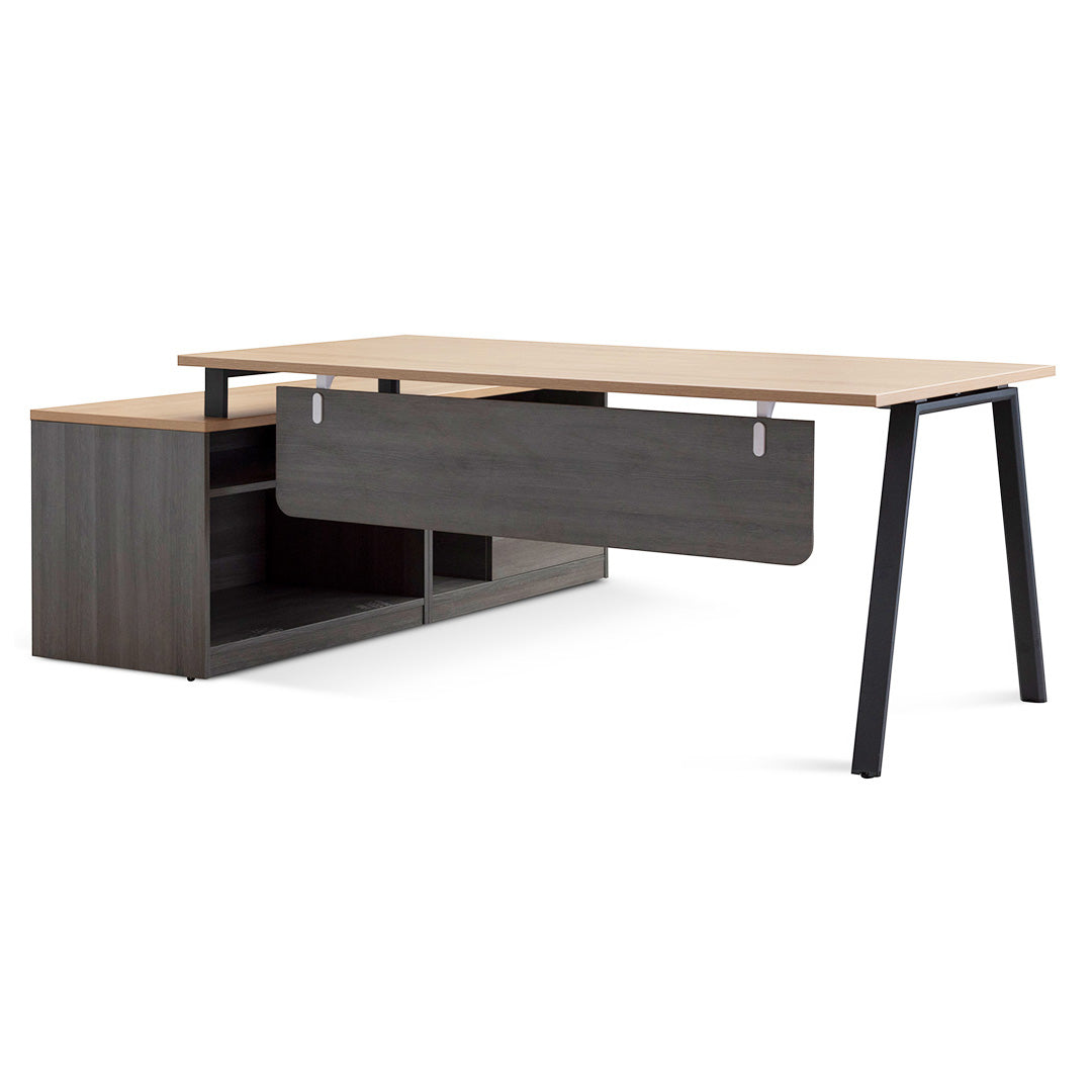 Enhance your professional workspace with the elegant 1.8m Right Return Office Desk in Black - Natural Top.E0 melamine practical board Natural table top and return top Matte black Steel legs Removable black modesty panel 1x drawer compartment 1x double shelved compartment 150kg weight limit Suitable for commercial use Product comes flat pack and requires two person assembly220cm (W) x 180cm (D) x 75cm (H) Return: 180cm (W) x 55cm (D) x 59cm (H) Table Top: 220cm (W) x 90cm (D)Box 1/10: 188cmx98cmx5.5cm, 15kg, 0.1013cbm Box 2/10: 188cmx63cmx5.5cm, 7kg, 0.0651cbm Box 3/10: 170.6cmx6.5cmx6.5cm, 3kg, 0.0072cbm Box 4/10: 23cmx23cmx12cm, 2kg, 0.0063cbm Box 5/10: 98cmx63cmx63.2cm, 36.1kg, 0.3902cbm Box 6/10: 98cmx63cmx63.2cm, 23.3kg, 0.3902cbm Box 7/10: 23cmx23cmx12cm, 2kg, 0.0063cbm Box 8/10: 148cmx38cmx4cm, 2kg, 0.0225cbm Box 9/10: 93.5cmx75.5cmx8.5cm, 4kg, 0.06cbm Box 10/10: 73.5cmx16.5cmx8.5cm, 2kg, 0.0103cbm