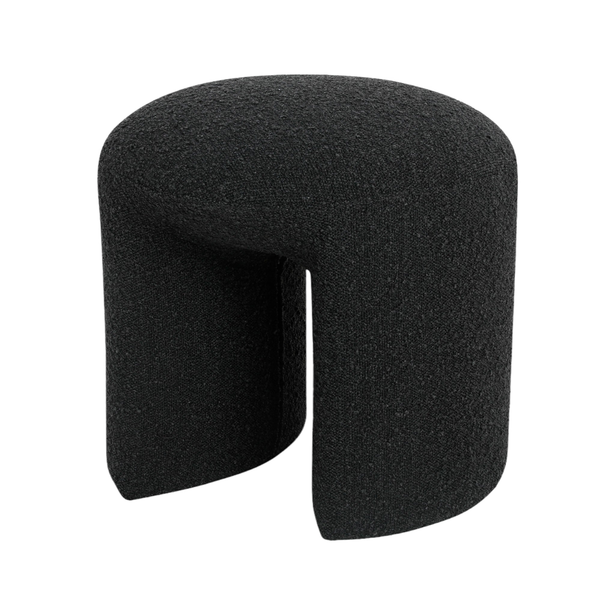 Discover the epitome of comfort and style with the Round Ottoman, ensconced in a sumptuous charcoal boucle fabric that invites you to unwind in its plush embrace.Fabric blend of 85% polyester & 15% acrylic Upholstered in charcoal boucle Pine wood timber frame Flipped U-shaped design with a round seat 2x thick plastic side legs with floor protectors Foam filling with retained firmness Suitable for commercial use 100kg weight capacity Product is fully assembled45cm (W) x 45cm (D) x 43cm (H)Box 1/1: 47cmx47cmx45cm, 9kg, 0.0994cbm