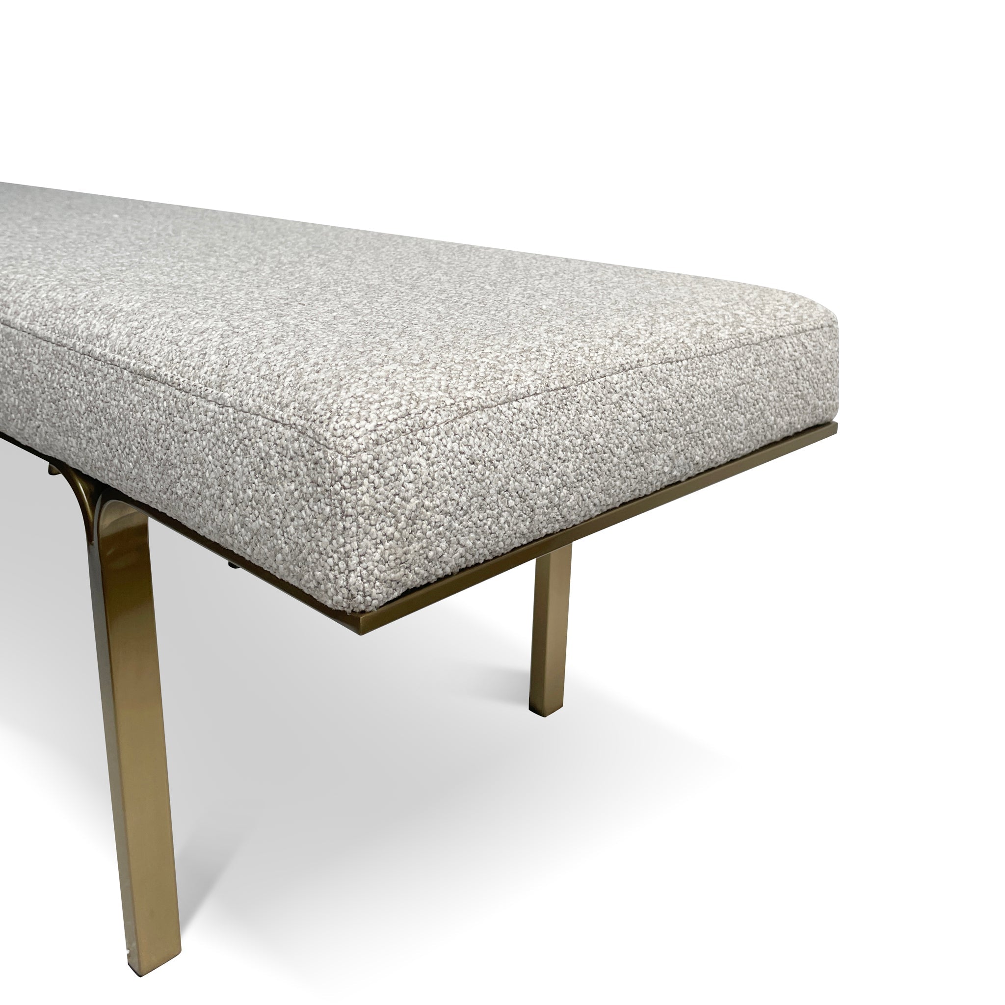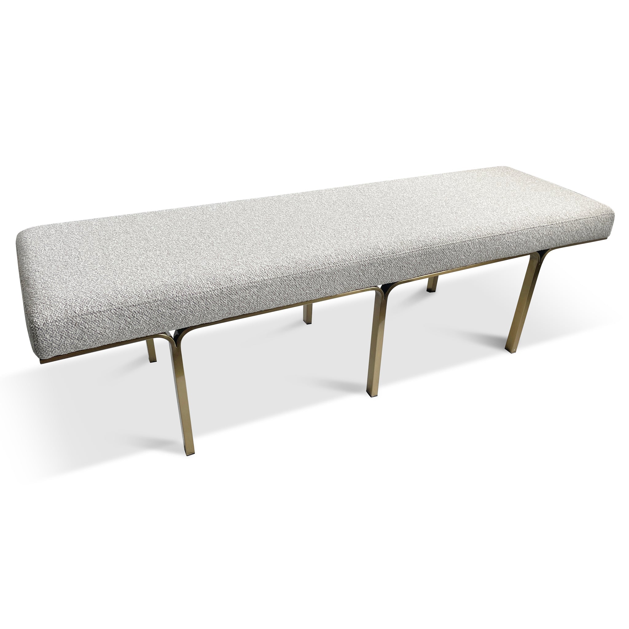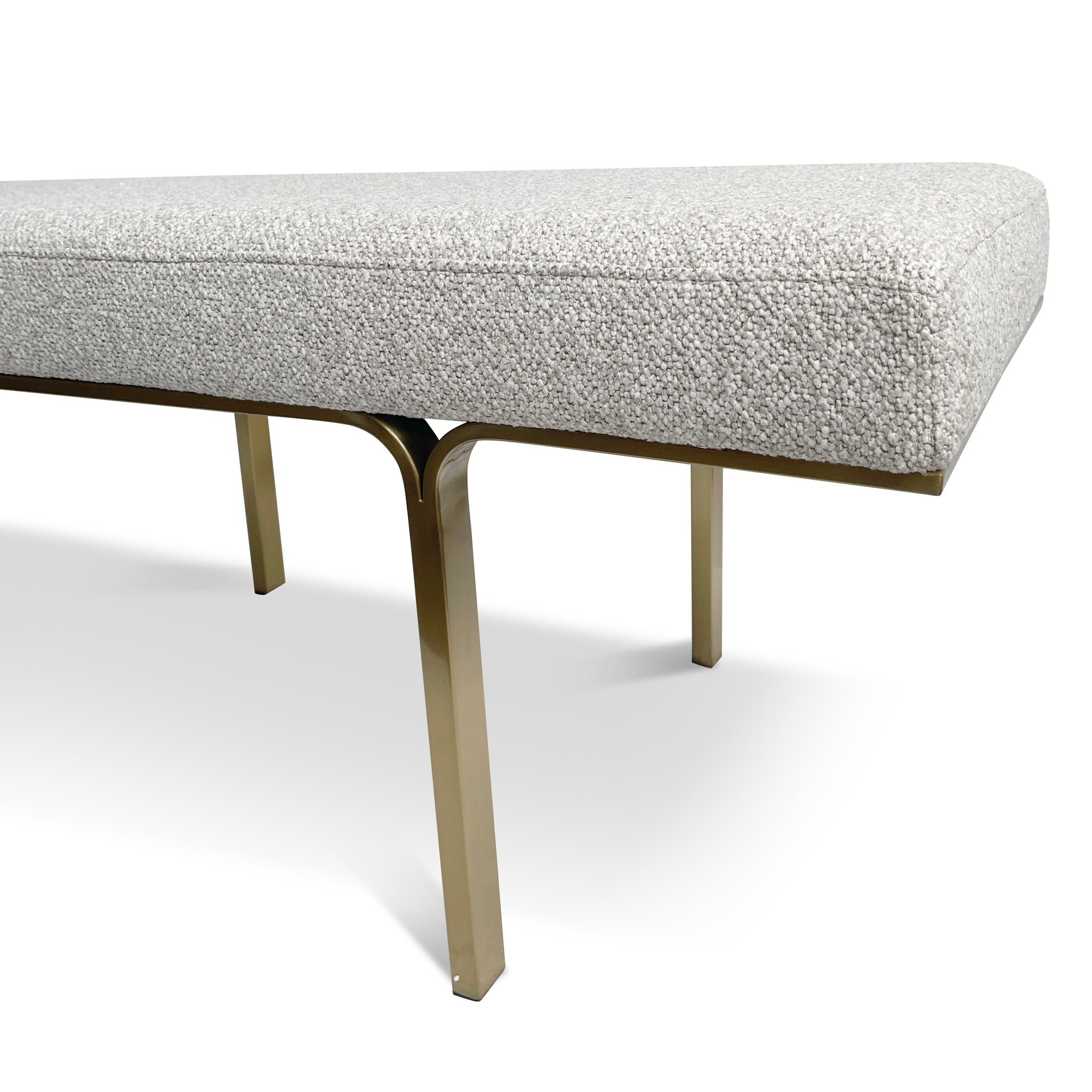 Crafted from stainless steel and upholstered in premium polyester fabric, 1.5m Brushed Gold Ottoman ensures durability and a sophisticated look.Polyester fabric upholstery Stainless steel frame Clay grey upholstery Brushed gold Soft-medium seat firmness Rectangular shape with Y-shaped legs Seat filled with 100% foam Weight capacity: 250kg Fully assembled150cm (W) x 45cm (D) x 45cm (H)Box 1/1: 154cmx49cmx48cm, 13kg, 0.3622cbm