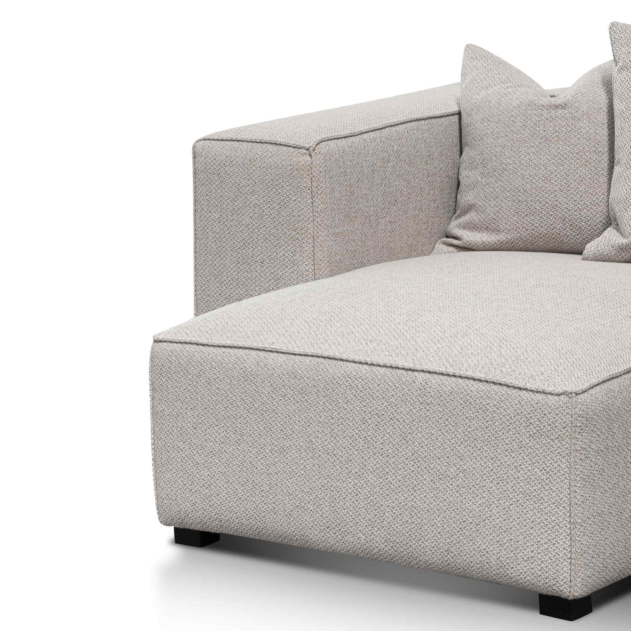 Create a nuanced lounge space that promotes a luxe look and modernist comfort with 3 Seater Left Chaise Sofa - Sterling Sand.Upholstered in 100% polyester sterling sand fabricFrame in a durable pine wood constructionSeat and backrest in high-density foam and premium duck feather fillingIncludes spring suspension for lasting structural supportWood bun feet in a solid birch wood build with a powder black finishL-shaped modular design made up of clean and minimalist linesInverted seaming along edges to accentuate sleek silhouetteThick cushioned body, left-sided chaise and backrest offer comfortWide and generous seat with a medium-soft feelIncludes 4x matching scatter cushions3-year warrantyMinor two-person assembly300cm (W) x 146cm (D) x 72cm (H) Chaise : 149cm (W) x 107cm (D) x 68cm (H) Sofa : 185cm (W) x 92cm (D) x 68cm (H) Seat Height: 42cm Arm Height from Floor: 72cmBox 1/2: 73cmx187cmx102cm, 55kg, 1.3924cbm Box 2/2: 73cmx115cmx157cm, 46kg, 1.318cbm