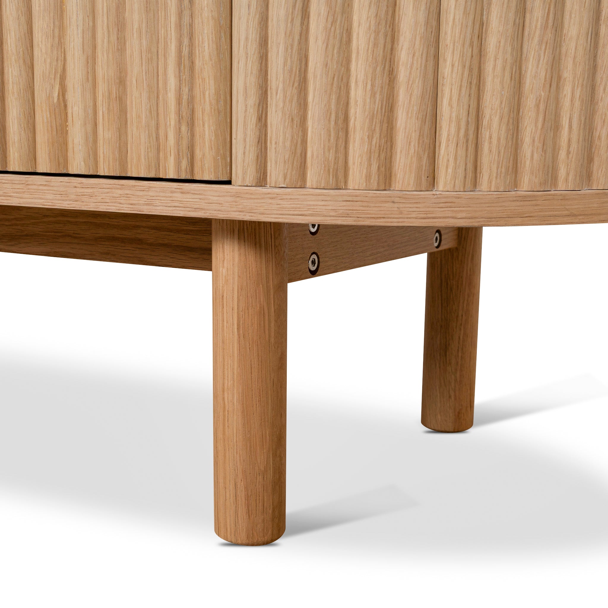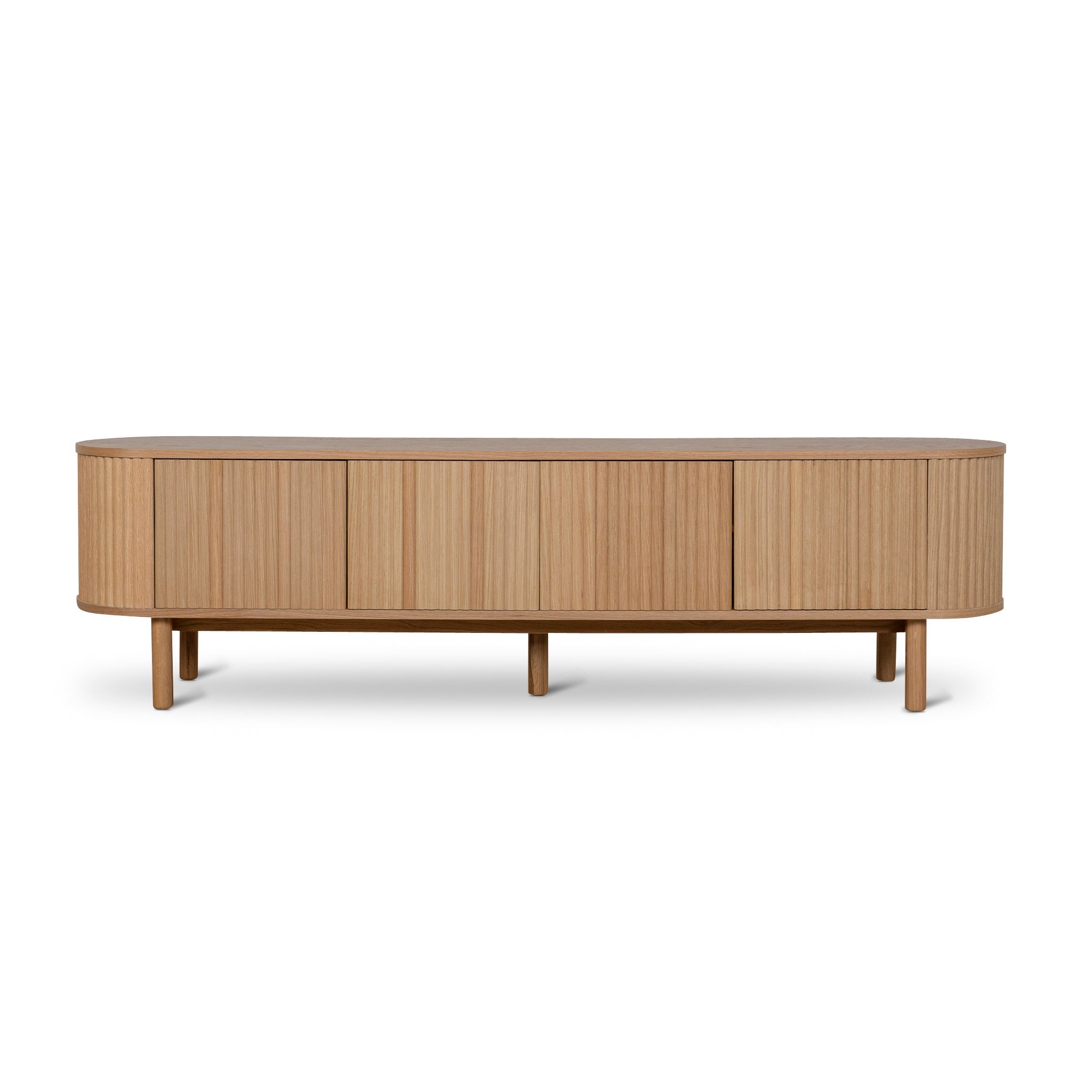 In the realm of interior design, a piece like the 2m TV Entertainment Unit stands out as a sleek and sophisticated essential.MDF construction in a natural veneer finishSolid oak wood legsNatural finish with NC coating4 x push-to-open doors2 x adjustable shelves4 x cable management holesWeight Capacity: 100 kgProduct comes flat packed and requires two-person assembly and a screwdriver200cm (W) x 40cm (D) x 55cm (H) Internal shelf: Top: 79cm (W) x 34cm (D) x 14.2cm (H) Bottom: 79cm (W) x 34cm (D) x 15.7cm (H)Box 1/2: 210.5cmx51cmx13.5cm, 47.8kg, 0.1449cbm Box 2/2: 50cmx47.5cmx36.5cm, 12kg, 0.0867cbm