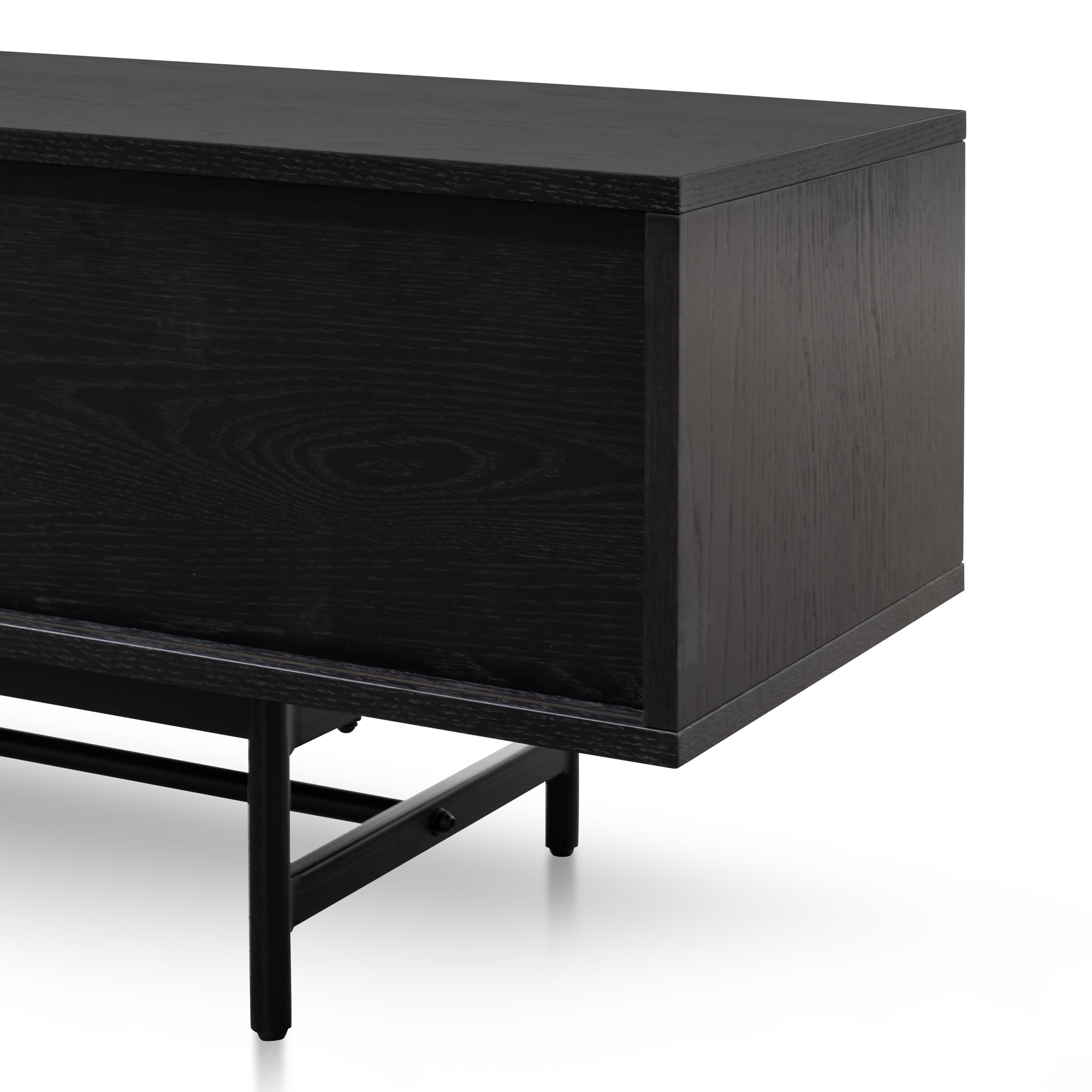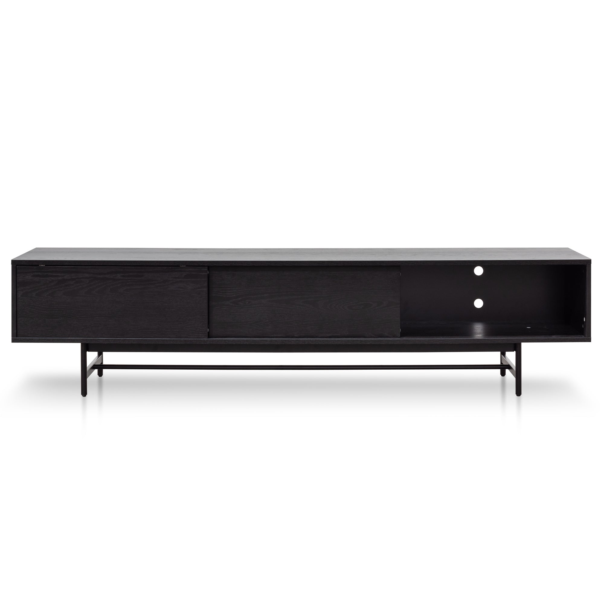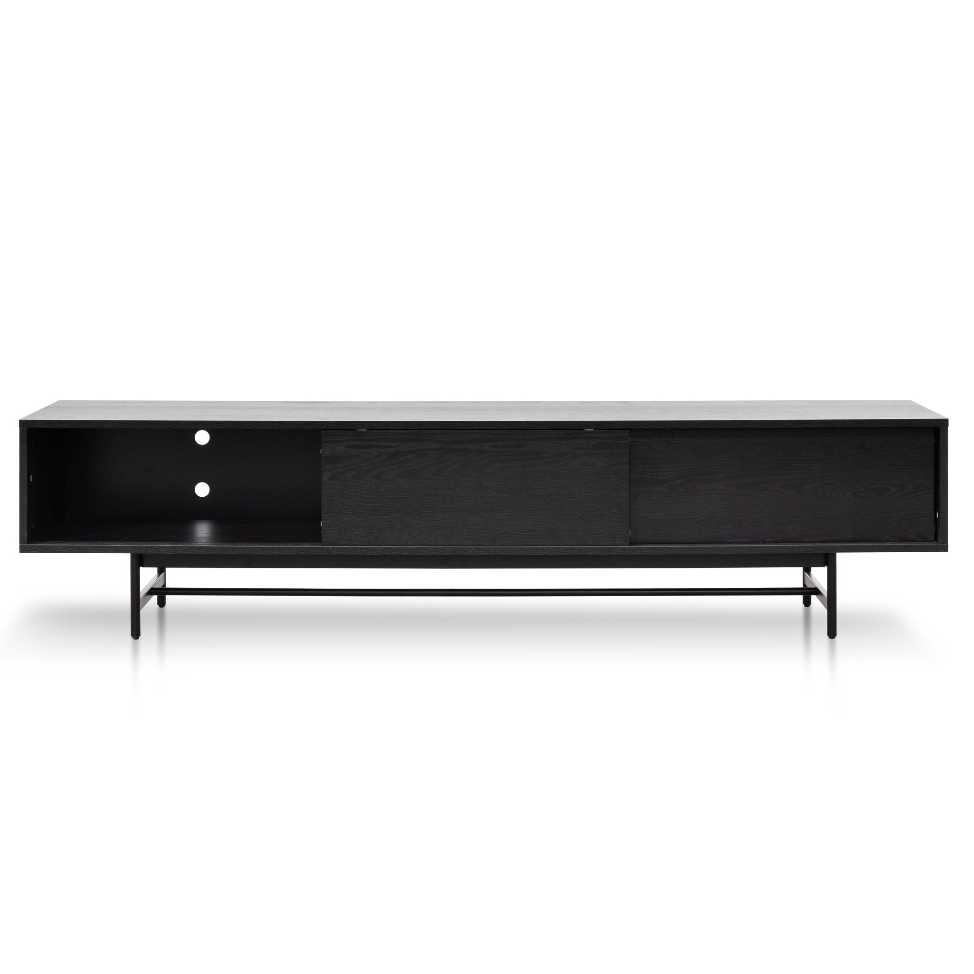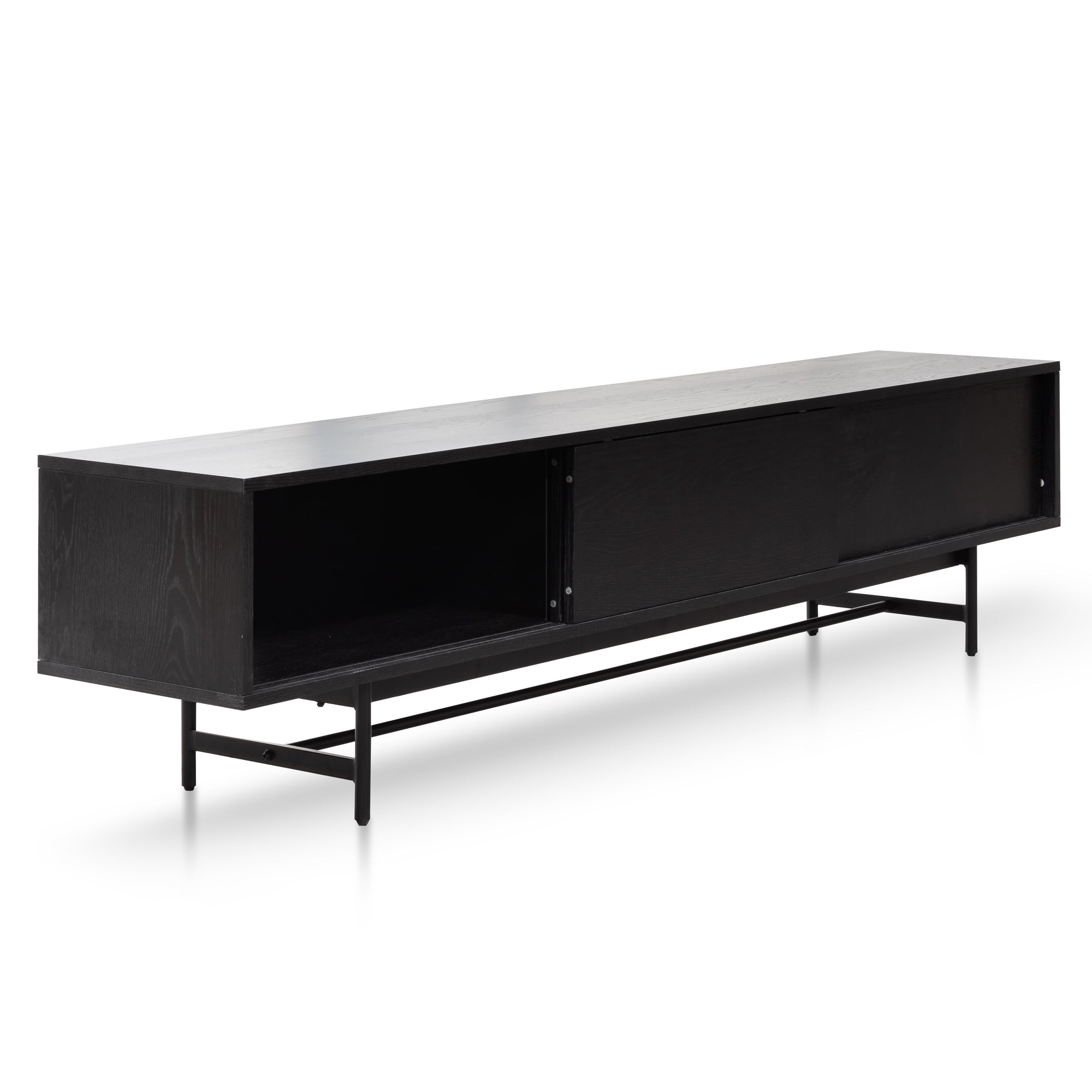 Enjoy easy styling and a flair for design with the 2.1m Wooden Entertainment TV Unit - Full Black.18mm MDF construction with a black oak veneer finishBlack powder coated metal legsThree sliding doors6 x cable management holesProduct comes flat packed and requires two-person assembly and a screwdriver210cm (W) x 40cm (D) x 50cm (H) Compartments: 67.5cm (W) x 33.5cm (D) x 26cm (H) Height Without Legs: 30.5cm Leg Height: 20cmBox 1/1: 17cmx169cmx49cm, 49.85kg, 0.1408cbm