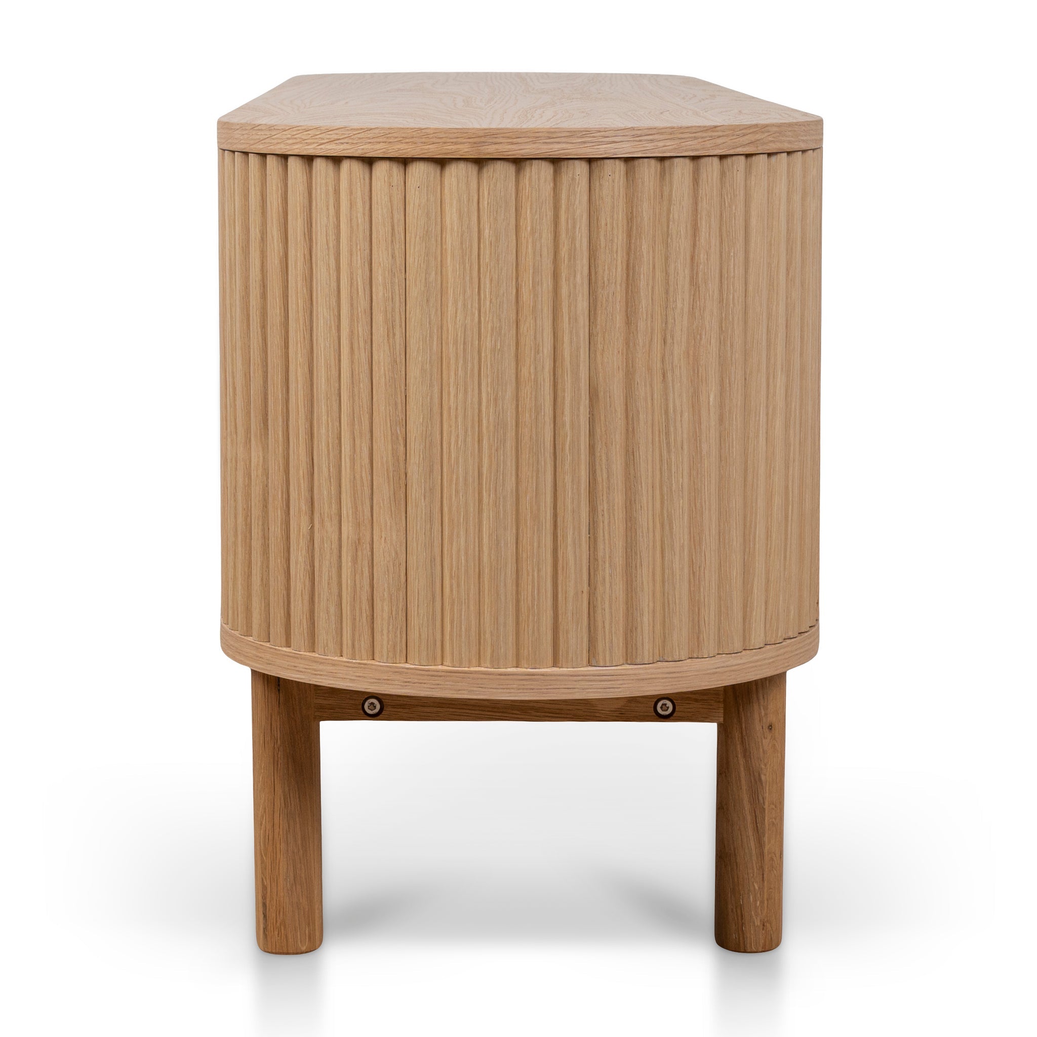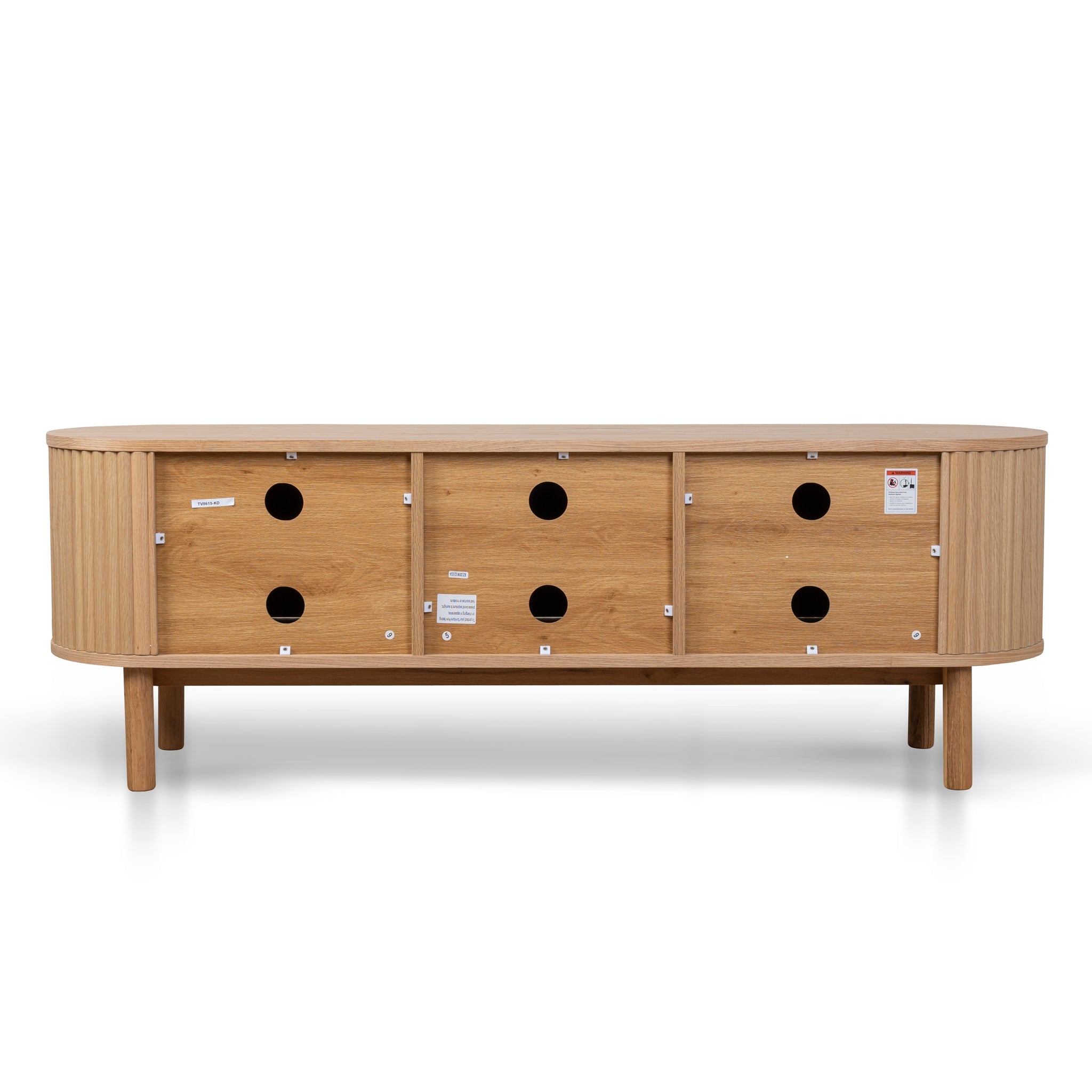 The 1.6m TV Entertainment Unit in Natural is a must-have for any home that values style, functionality, and quality.MDF construction in a oak veneer finishSolid oak wood legsNatural finish with NC coating3 x push-to-open doors3 x adjustable shelves6 x cable management holesWeight Capacity: 100 kgProduct comes flat packed and requires two-person assembly and a screwdriver160cm (W) x 40cm (D) x 55cm (H) Internal shelves: Left and Right top: 39.1cm (W) x 34cm (D) x 14.2cm (H) Left and Right bottom: 39.1cm (W) x 34cm (D) x 15.7cm (H) Middle top: 38.1cm (W) x 34cm (D) x 14.2cm (H) Middle bottom: 38.1cm (W) x 34cm (D) x 15.7cm (H)Box 1/2: 171cmx53cmx14cm, 39.2kg, 0.1269cbm Box 2/2: 49cmx49cmx37cm, 12kg, 0.0888cbm
