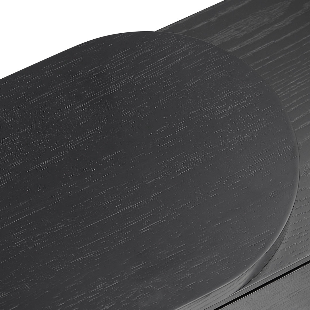 Introducing the Extendable TV Entertainment Unit - Full Black Oak – the ultimate solution to elevate your living room.Engineered wood with black oak veneer Expandable unit Oval top with curved edges Natural wood textures Ample storage and display space 3x soft-close drawers with pull-open mechanism 3x cable management holes Weight Capacity: 80 kg Minor Assembly Required200 - 340cm (W) x 39.5cm (D) x 43cm (H)Box 1/3: 206.6cmx46.1cmx15.3cm, 60kg, 0.1457cbm Box 2/3: 45.4cmx39.1cmx25.9cm, 6.3kg, 0.0460cbm Box 3/3: 187.9cmx47.3cmx45.5cm, 48kg, 0.4044cbm