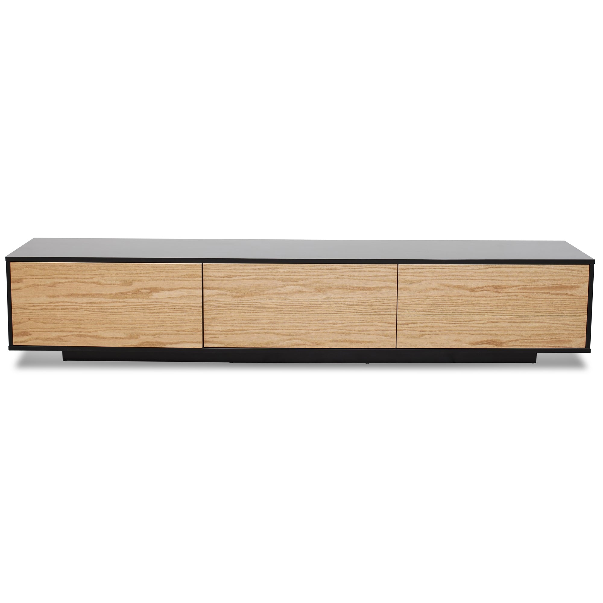 TV Unit – Black with Natural Drawers embodies a functional and modern design to uplift your living room decor with its bold simplicity.Features 2x side drawers and 1x middle cupboard with flip-down door Strong black matte MDF body Natural wood veneer drawers 1x appliance hole for easy cable management Product comes fully assembled230cm (W) x 45cm (D) x 44cm (H) Side Drawers: 75cm (W) x 33.4cm (D) x 35cm (H)Box 1/1: 48cmx234cmx49cm, 80kg, 0.5504cbm