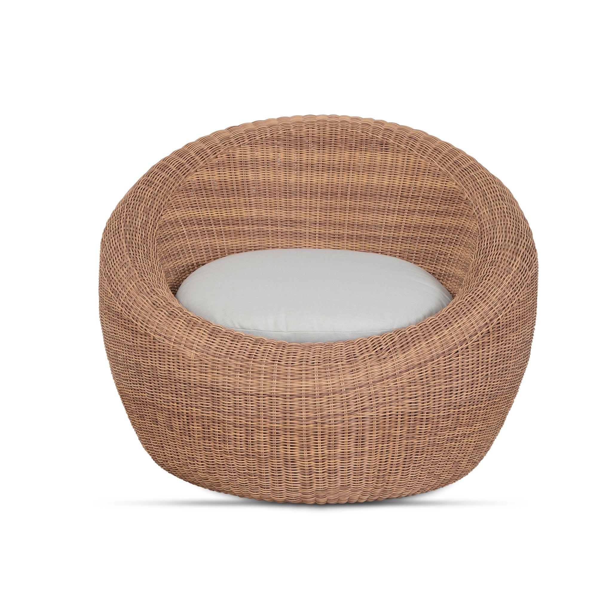 Unwind in luxury with the Natural Outdoor Lounge Chair in Royal Sand.Royal sand polyester upholstery Aluminum frame and legs Foam and fiber polyester filling Protective inner cover Soft-medium seat firmness Perfect for small spaces or as an accent chair Cocoon-like structure Woven rattan with a textured finish Weight Capacity: 120 kg Product comes fully assembled96cm (W) x 89cm (D) x 73.5cm (H) Seat: 55cm (W) x 49cm (D) x 30cm (H)Box 1/1: 90cmx97cmx77cm, 22kg, 0.6722cbm
