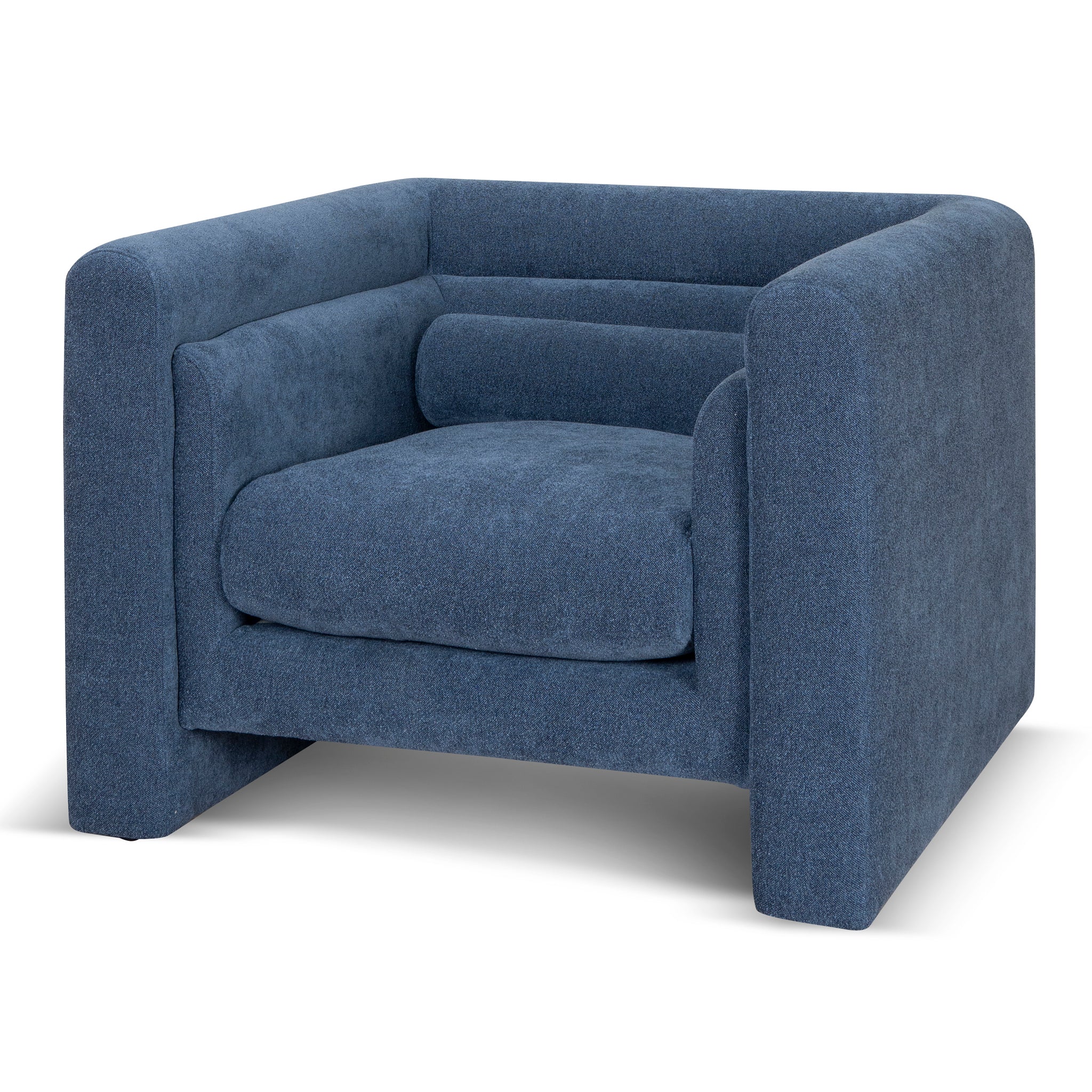 Immerse in unparalleled relaxation with the Fabric Armchair - Navy Blue.Navy blue polyester upholstery Timber frame Web suspension with zigzag springs Foam filling Wooden legs Soft seat firmness Geometric design for a modern touch Chic and comfortable aesthetic Weight Capacity: 150 kg Product comes fully assembled98cm (W) x 95cm (D) x 69cm (H) Seat: 56cm (W) x 66cm (D) x 42cm (H) Arm Height: 69cmBox 1/1: 103cmx100cmx73cm, 45kg, 0.7519cbm