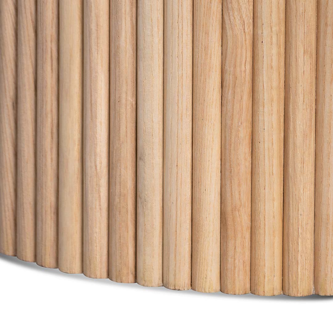 1.3m Marble Top Oval Coffee Table – Natural is a luxurious and stunning centerpiece for any living room.White marble top with rounded edgesEngineered wood baseVertical solid wood stripsProduct comes flat pack and requires two person assembly Note: Melbourne pick-up and delivery only Note: Our marble table tops are a natural stone that each have their own unique imperfections and characteristics. Any variations in colour, texture, polish and pattern are not a fault and should be appreciated. Please note that polished marble is porous, so contact with liquids or hot beverages may cause the marble to mark. Make sure to wipe away any spills immediately using water or a mild cleaner. We recommend the use of placemats and coasters to further protect the integrity of the marble. Differences between shipments are to be expected. Our standard 12-month warranty does not apply to marble and natural stone products.130cm (W) x 60cm (D) x 37cm (H)Box 1/1: 136cmx66cmx8.5cm, 40kg, 0.0763cbm Box 2/2: 84cmx45cmx40.5cm, 15kg, 0.1531cbm