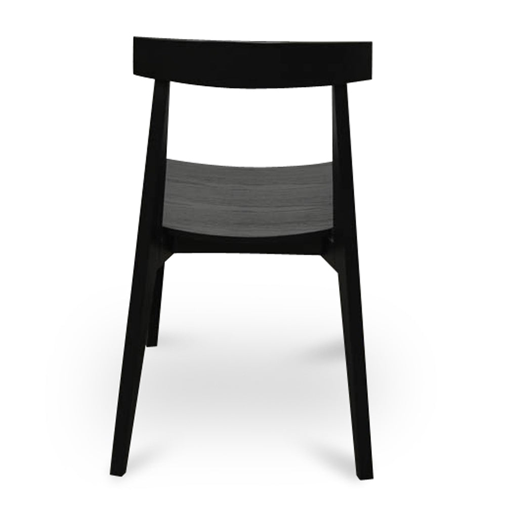 Dine in style with the timeless Dining Chair - All Black, giving your dining space a modern update, whilst ensuring comfort for the ultimate dining experience.Solid rubber wood frame and legs Eucalyptus plywood with ash veneer seat and backrest Black finish emphasizes wood grain Ergonomically curved backrest Tapered legs with floor protectors Product is fully assembled Note : Each piece will have its own unique imperfections and markings due to the nature of the material.44cm (W) x 42cm (D) x 78cm (H) Seat Height: 45cmPackaging Note: 2 x Dining Chairs per box Box 1/1: 96cmx72cmx52cm, 16kg, 0.3594cbm