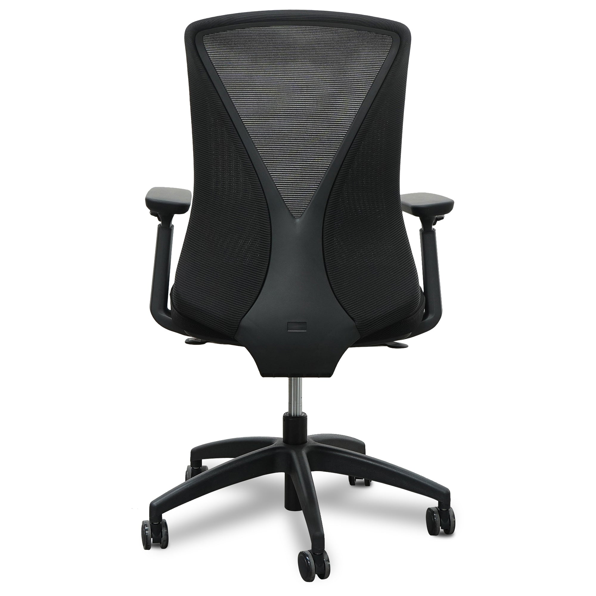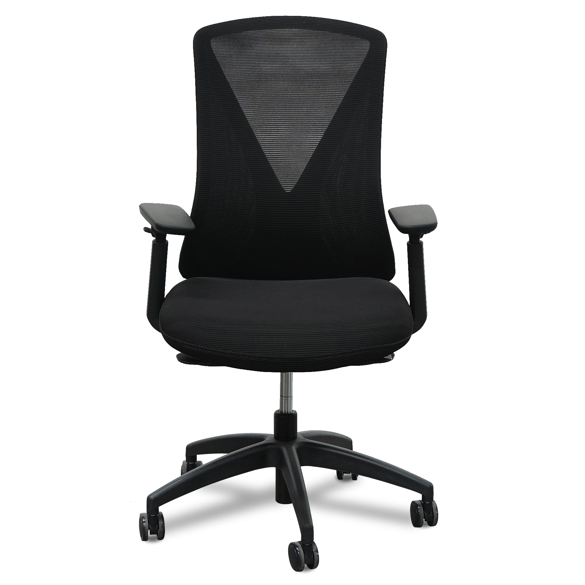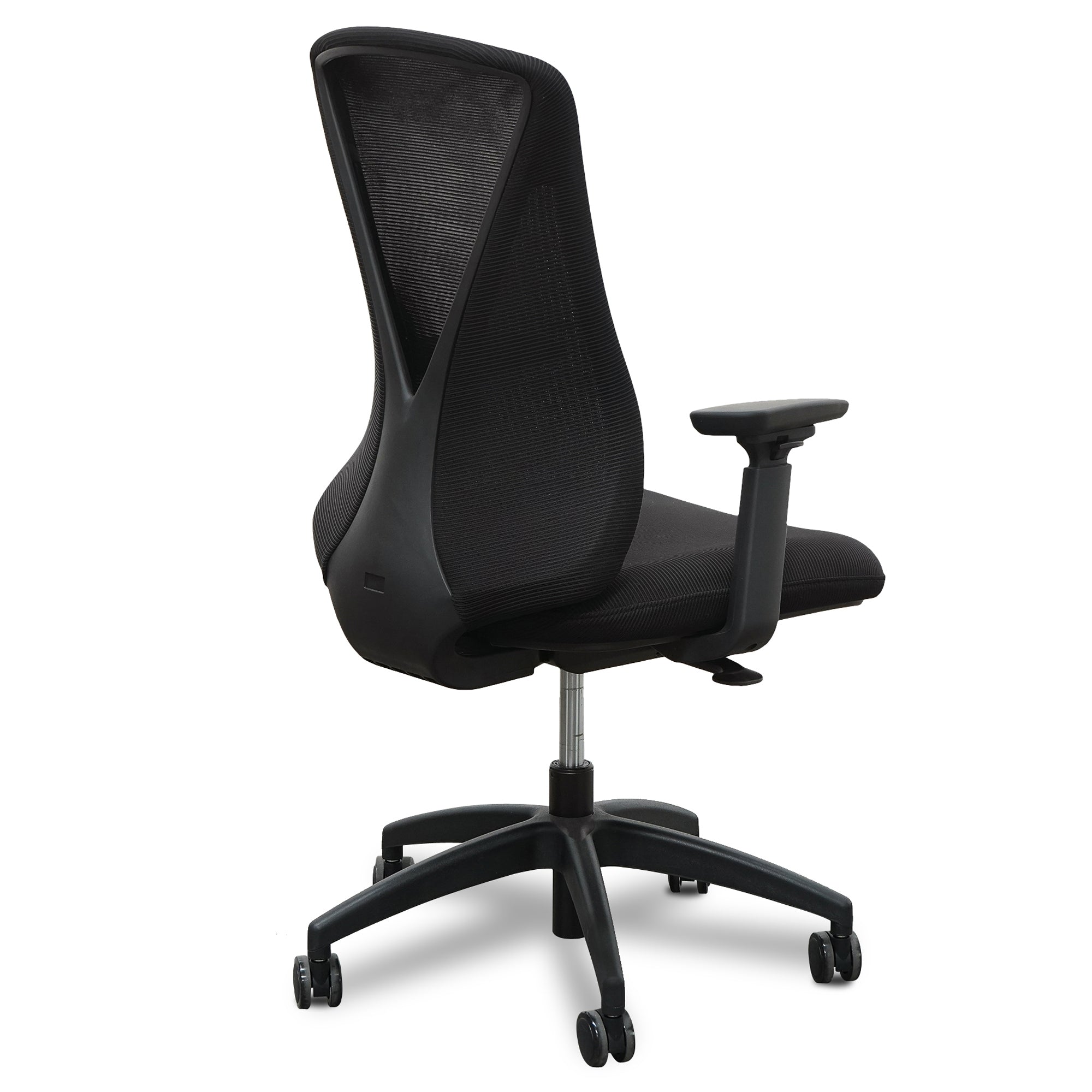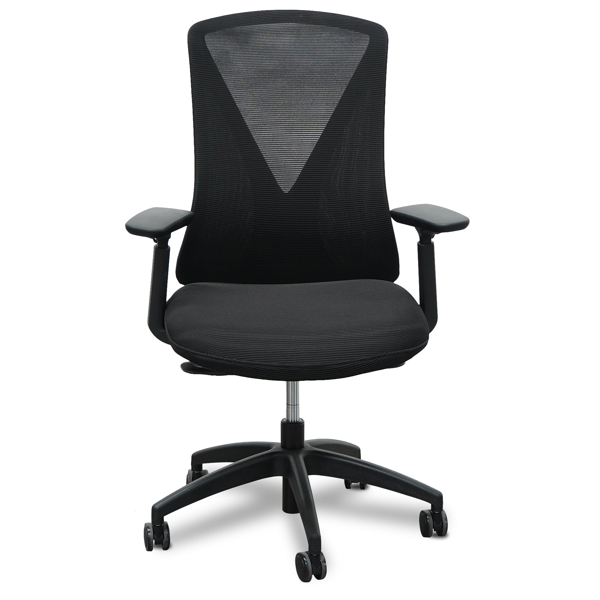 Update your desk chair to the Office Chair - Black, sleek modern design to complement any professional workspace.Breathable black mesh backrest Cushioned seat upholstered in black fabric Ergonomic designed backrest 360 degree rotate Adjustable seat and armrest height settings 5-star double wheel castor base 5- years manufacturer's warranty against defects65.5cm (W) x 60.5cm (D) x 100cm (H)
