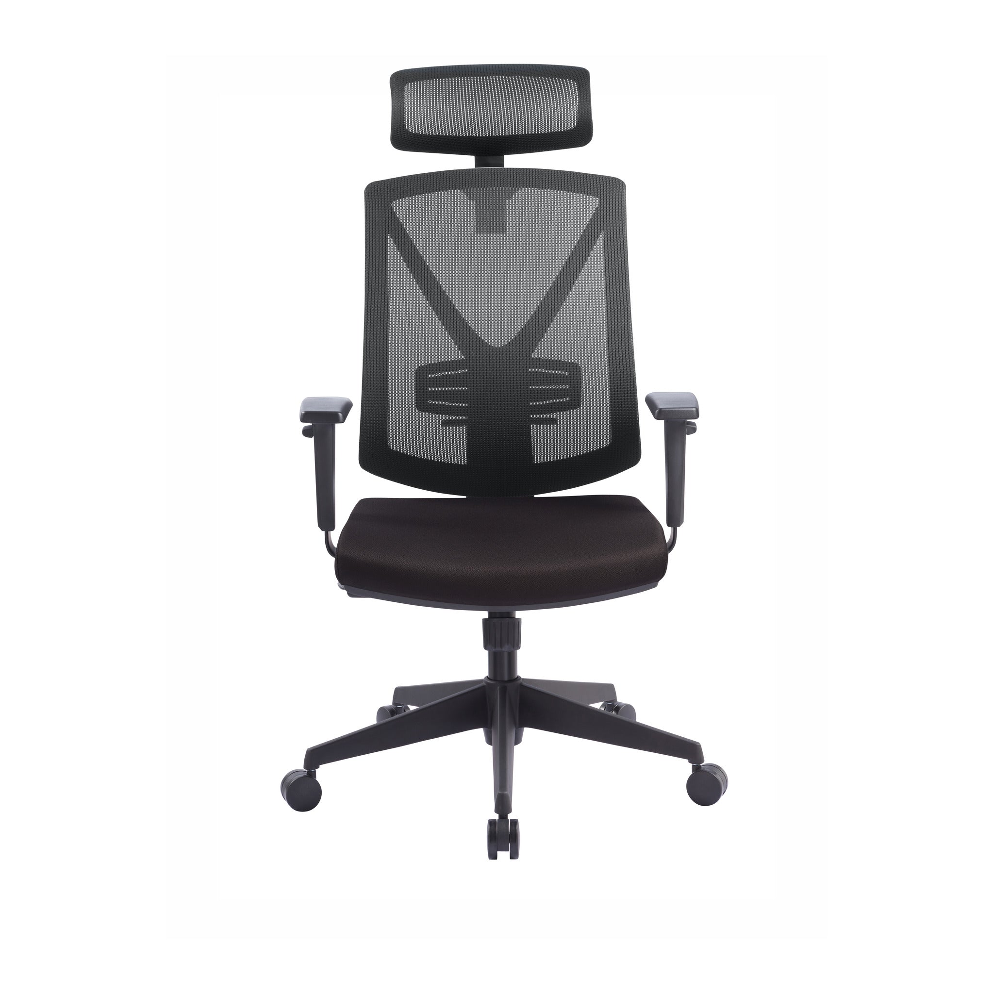 Mesh Ergonomic Office Chair – Black appeals that its ergonomic functionality is going to make working ‘a piece of cake’.640mm Black Nylon Base Mesh back and fabric seat Height Adjustable Lumbar and Headrest Simple Synchro Mechanism (one locking position) 50R PA Black Castors and Flipped Arms 120kg weight limit Product comes flat pack and requires two person assembly67cm (W) x 69cm (D) x 114.5cm - 124cm (H) Seat: 46cm (W) x 46cm (D) x 43.5cm - 53cm (H) Armrest: 18cm - 25cm (H)Box 1/1: 73cmx33cmx65cm, 19.45kg, 0.1566cbm