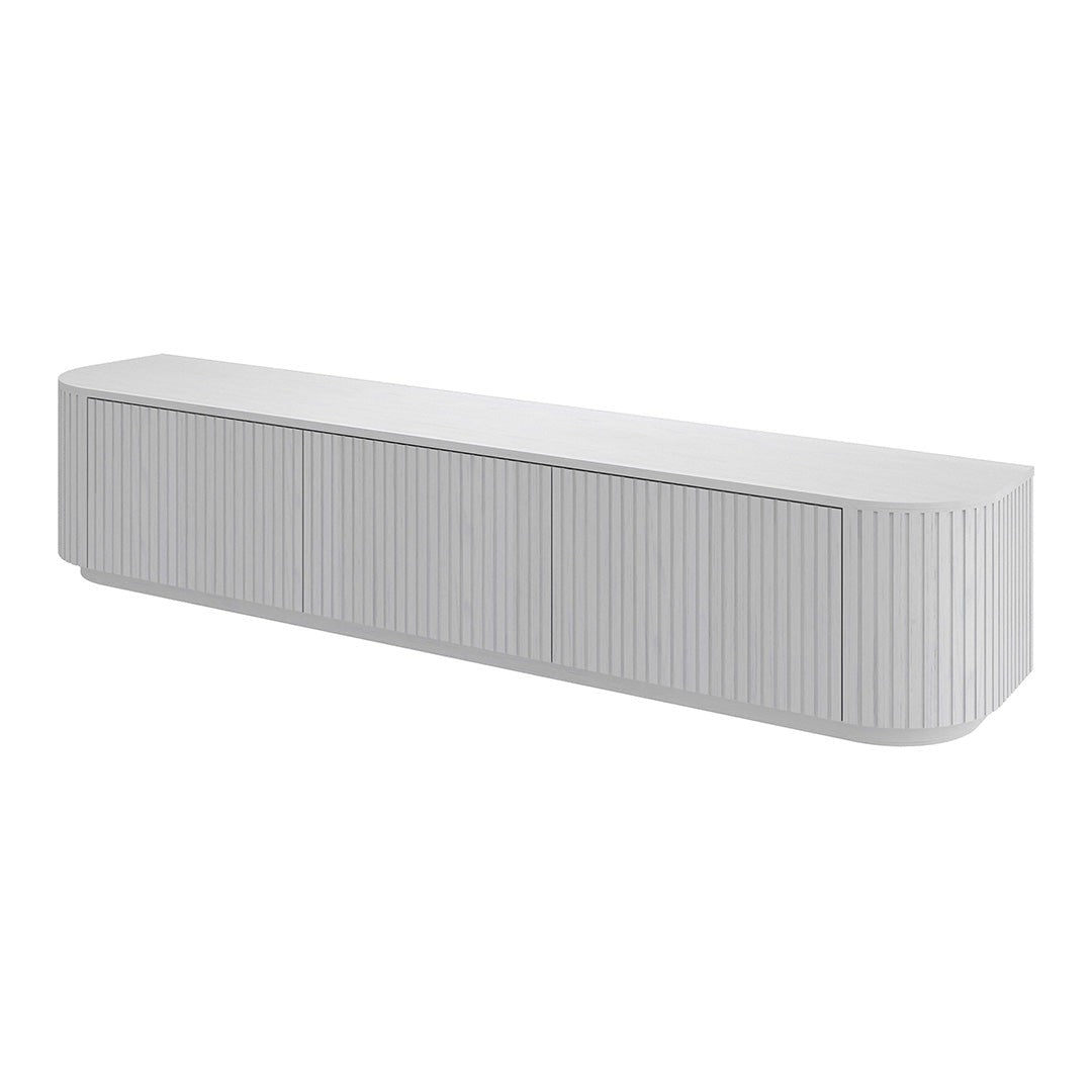 Meet the 2.4m TV Entertainment Unit in Full White Oak – a modern focal point ready to revolutionize your living roomEngineered wood with veneers Features white oak finish Soft-close drawers 3x drawers and 3x cable holes Oval top with curved edges Weight capacity: 80 kg Product comes fully assembled240cm (W) x 48cm (D) x 45cm (H)Box 1/1: 246.8cmx54.8cmx51.3cm, 82.5kg, 0.6938cbm