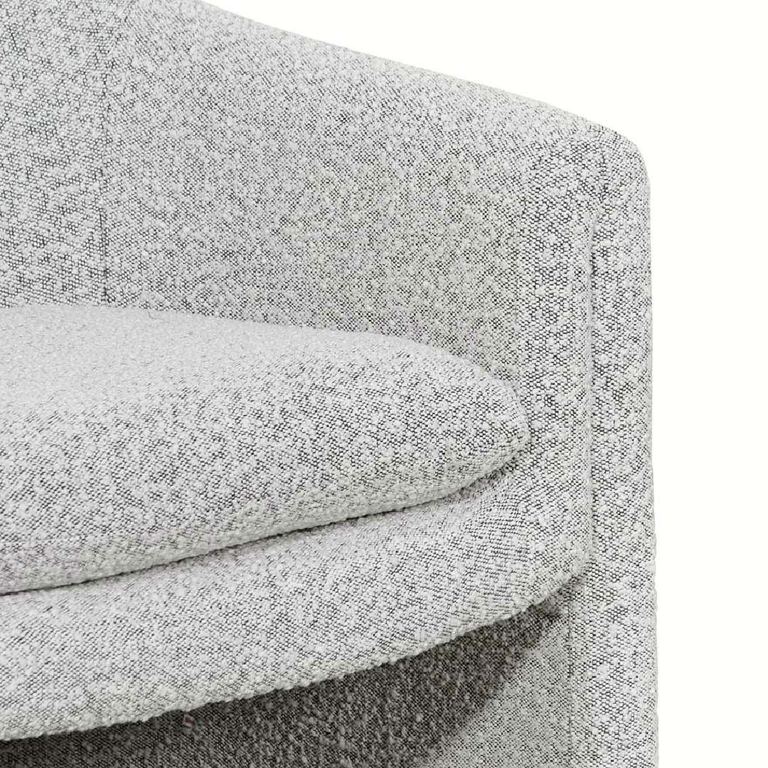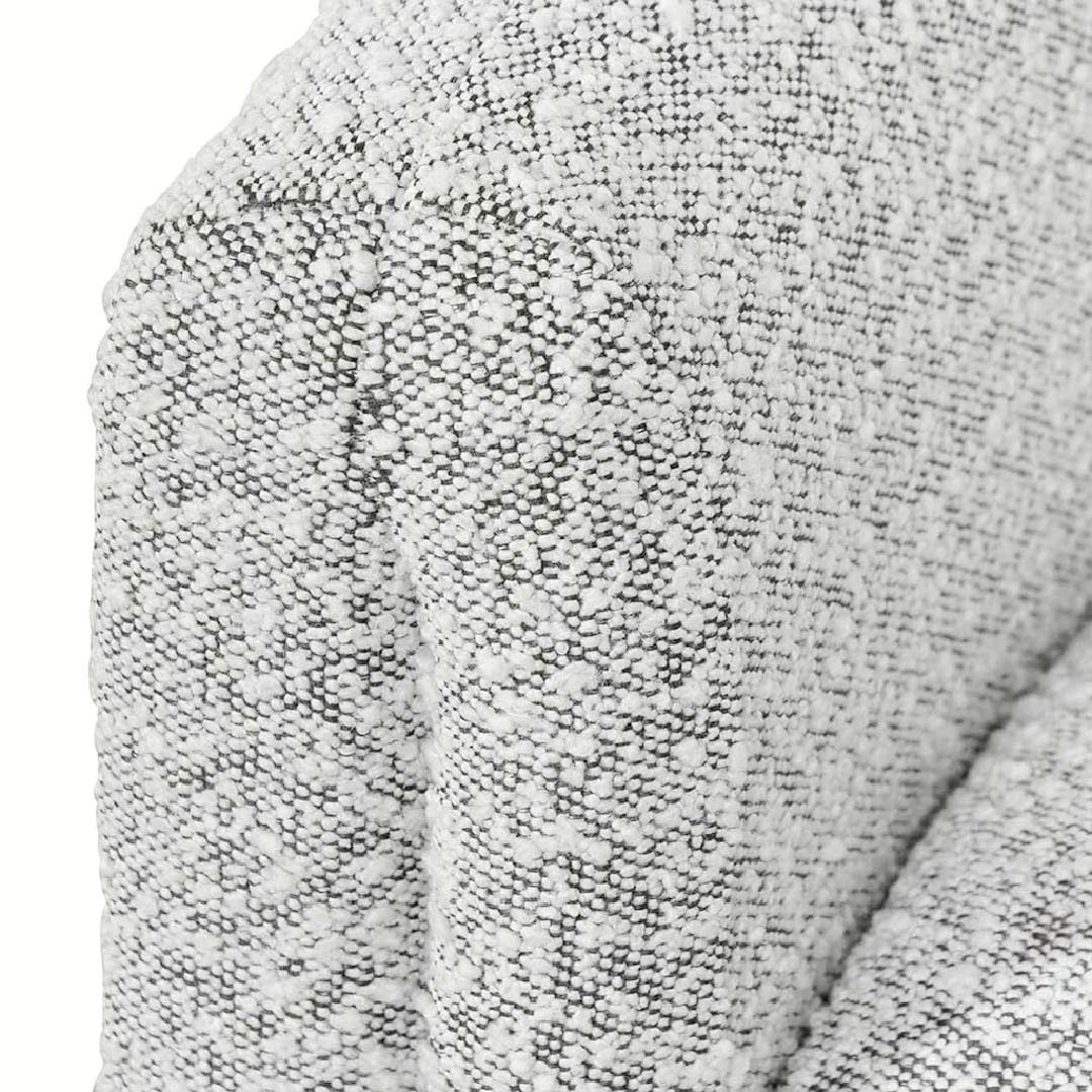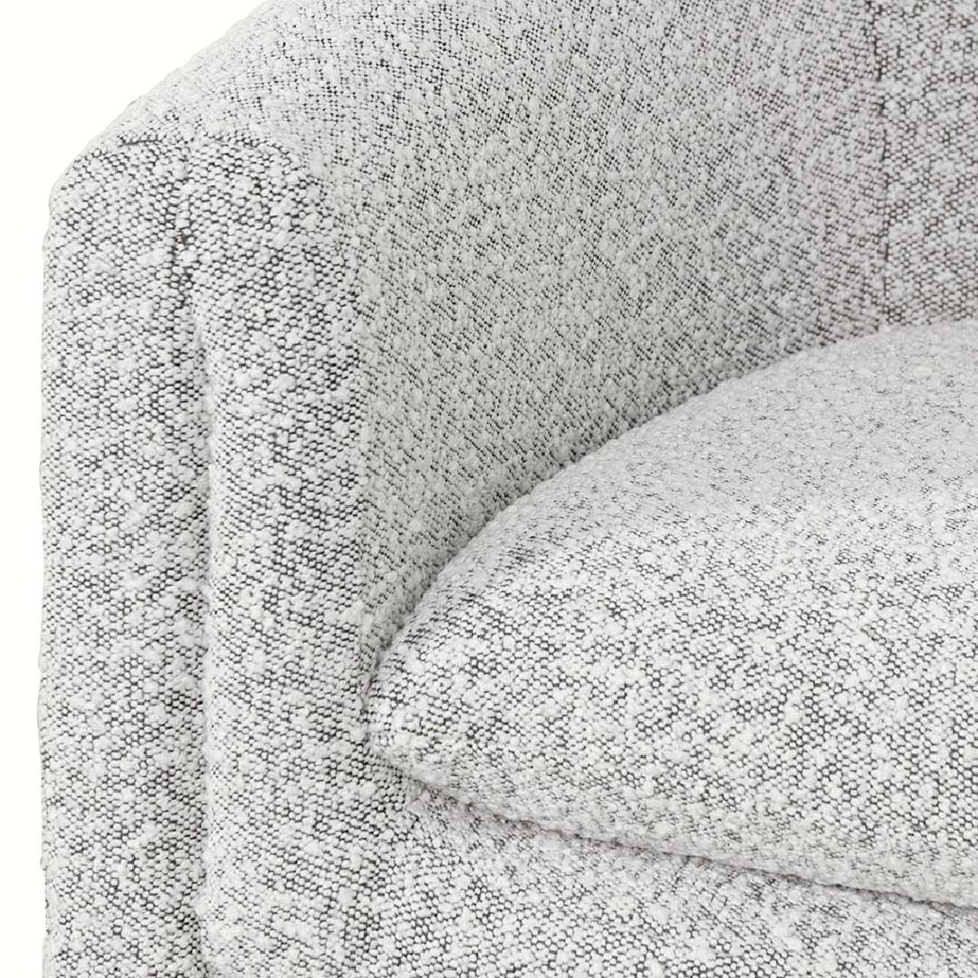 Complement your modernist space the the monochrome charm of Armchair - Charcoal White Boucle.Upholstered in a Charcoal white boucle fabric Fabric consists of a 54% polyester and 46% acrylic blend Frame in a pine wood construction Legs in a polypropylene build with a cut-out design Seat and backrest with a foam insert Web suspension with medium seating firmness Tub chair silhouette and curved backrest Product comes fully assembled Melbourne pick-up and delivery only82cm (W) x 78cm (D) x 76cm (H) Seat Dimensions: 54cm (W) x 58cm (D) x 47cm (H) Leg Height: 2cmBox 1/1: 84cmx80cmx78cm, 32kg, 0.5242cbm