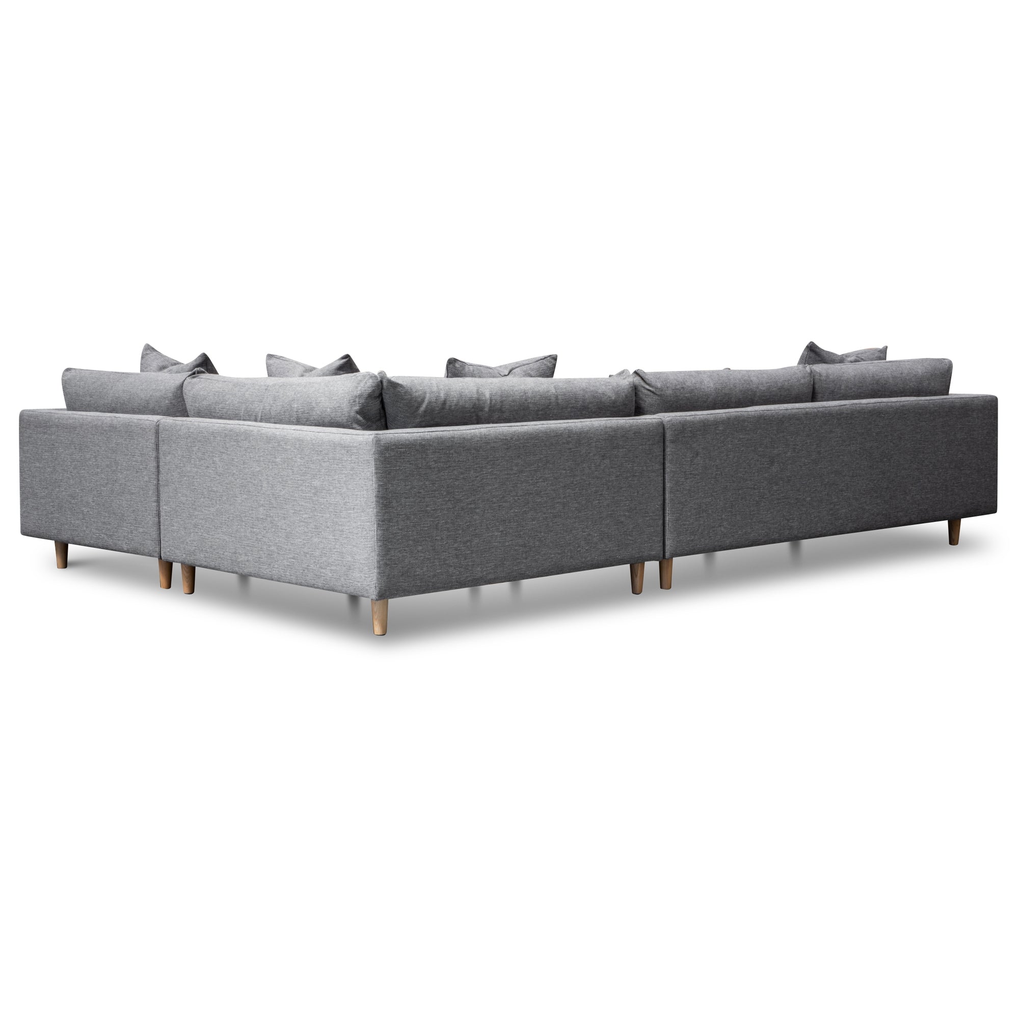 Modular Sofa - Graphite Grey will make your living room the place to be with its large design that’s perfect for family get togethers or movie marathons with your friends.Upholstered in a durable graphite grey fabric Plush cushions with a foam, fibre and premium duck feather filling Tapered legs in an oak wood construction and natural finish L-shaped modular design made up of clean and minimalist lines Features 5x single-sided scatter cushions Feet protectors included to avoid slipping and product damage Seats 4-5 people Product requires two-person assembly and a cordless drill338cm (W) x 240cm (D) x 68cm (H) Arm: 102cm (W) x 63cm (H) Seat: 90cm (D) x 43cm (H) Leg Height: 12cmBox 1/3: 134cmx134cmx56cm, 35kg, 1.0055cbm Box 2/3: 111cmx107cmx56cm, 40kg, 0.6651cbm Box 3/3: 209cmx107cmx56cm, 60kg, 1.2523cbm